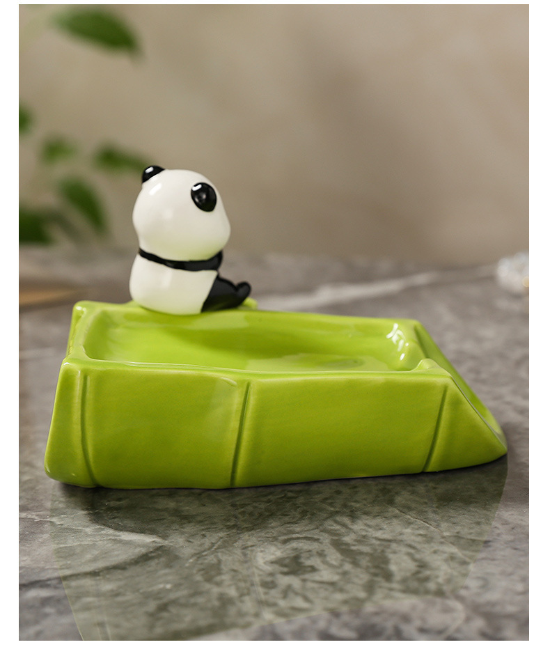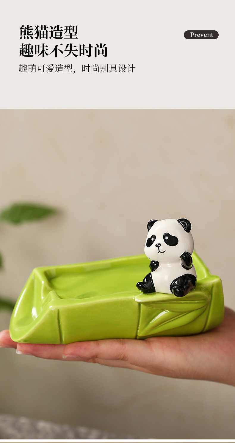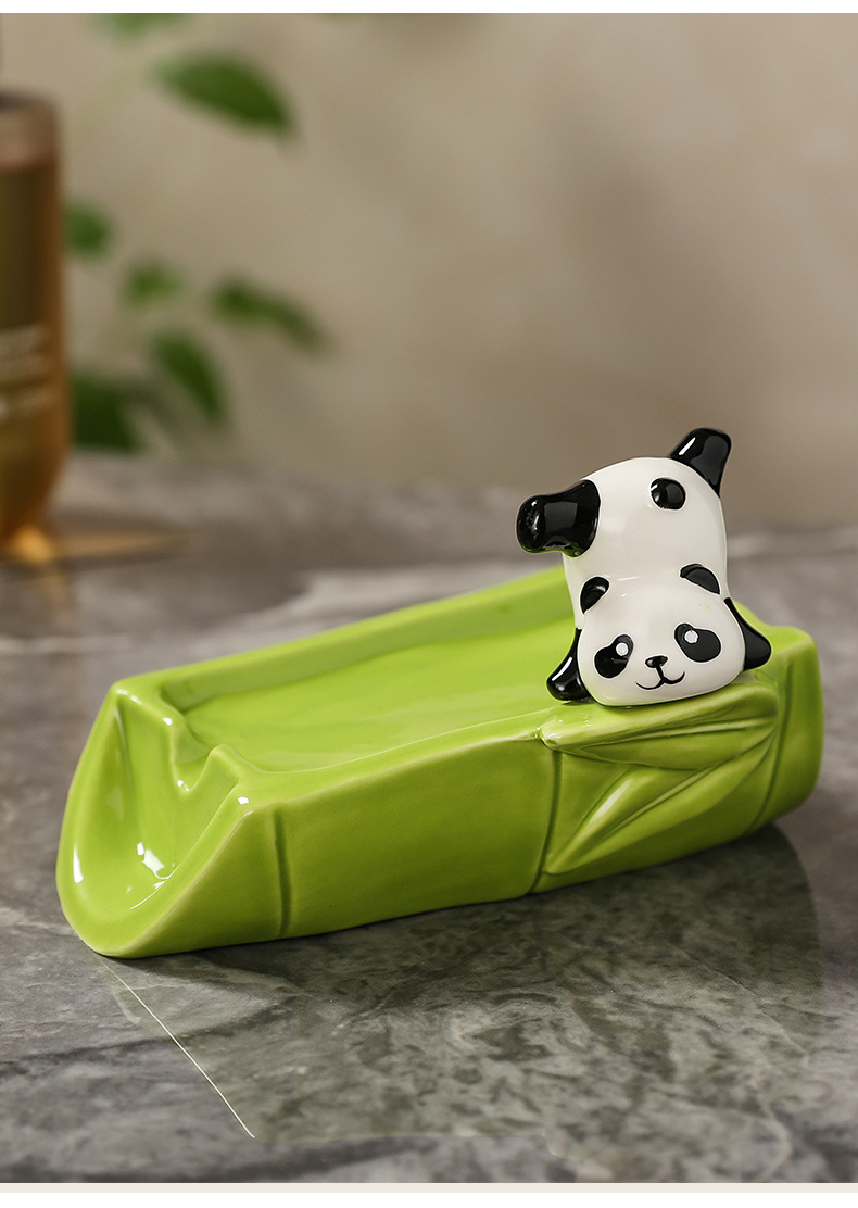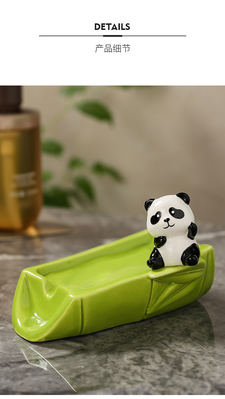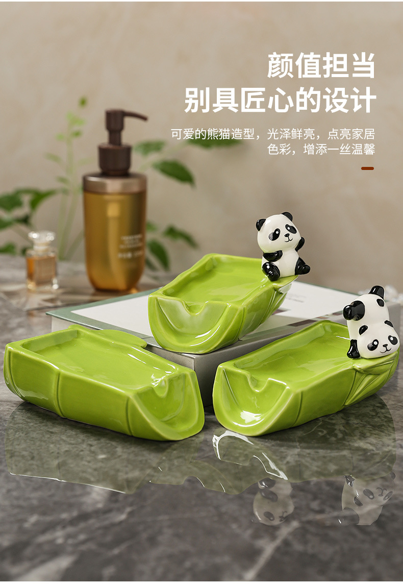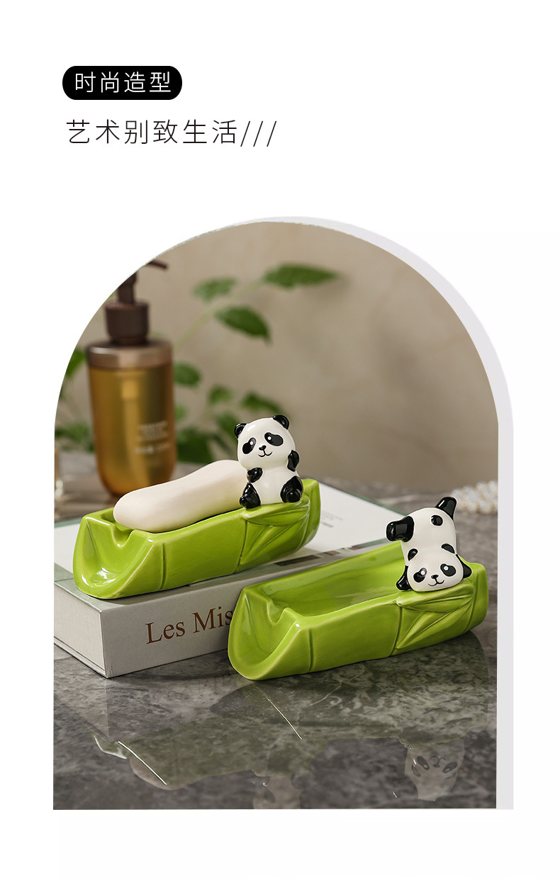 陶瓷摆件香皂盒浴室工艺品创意装饰新款家用网红可爱竹节熊猫皂碟