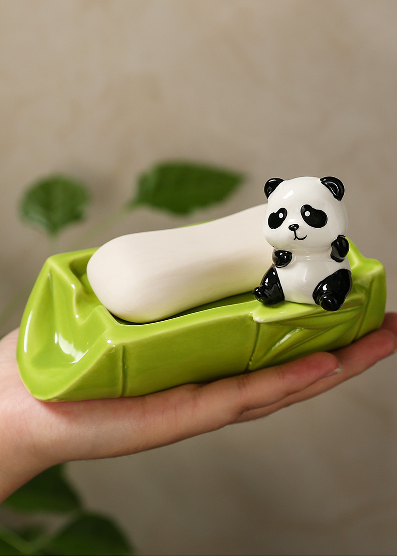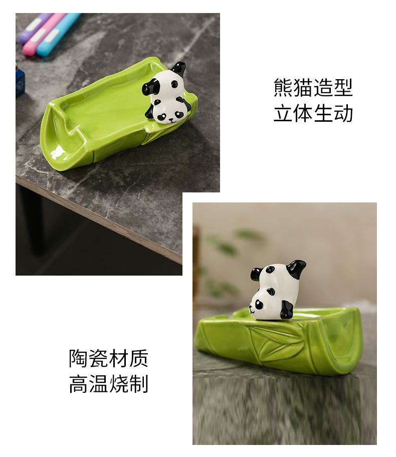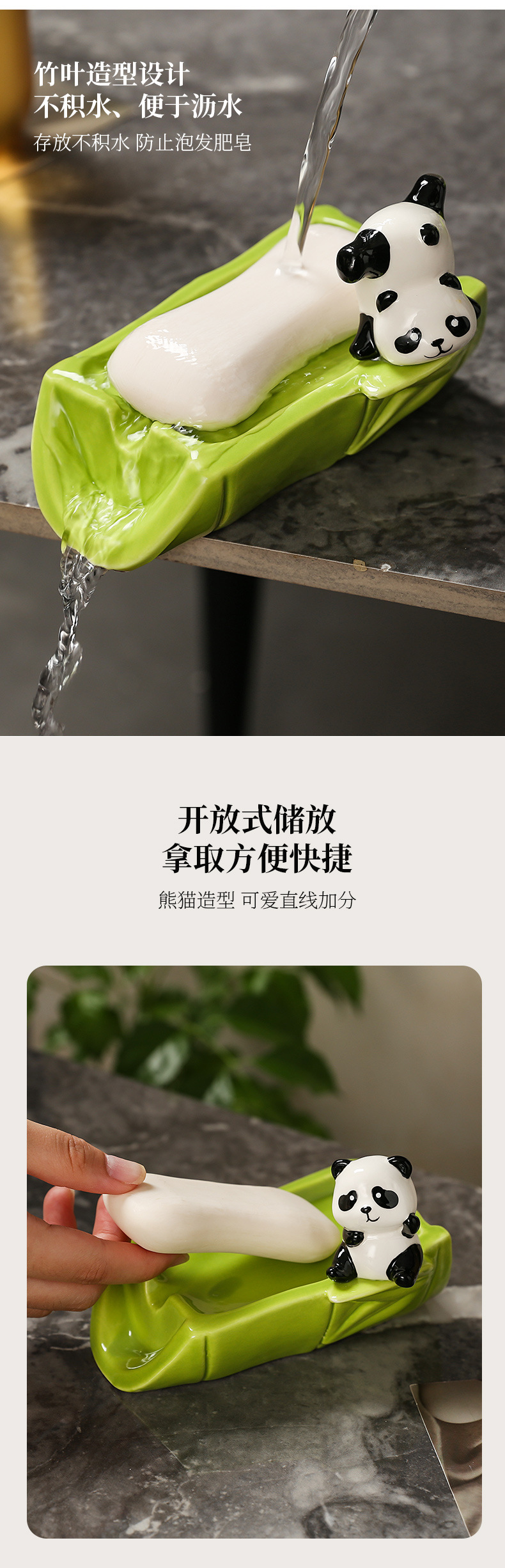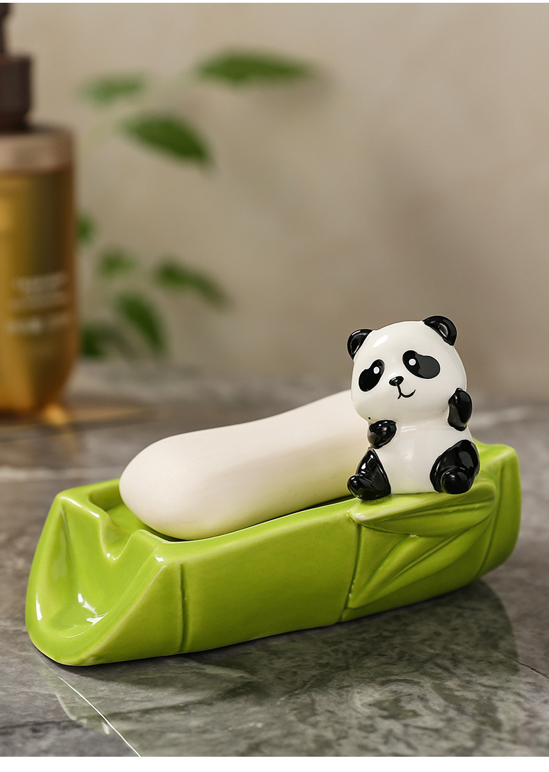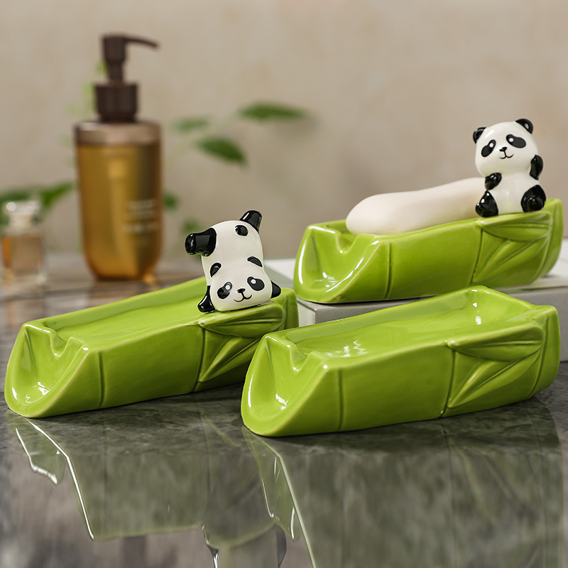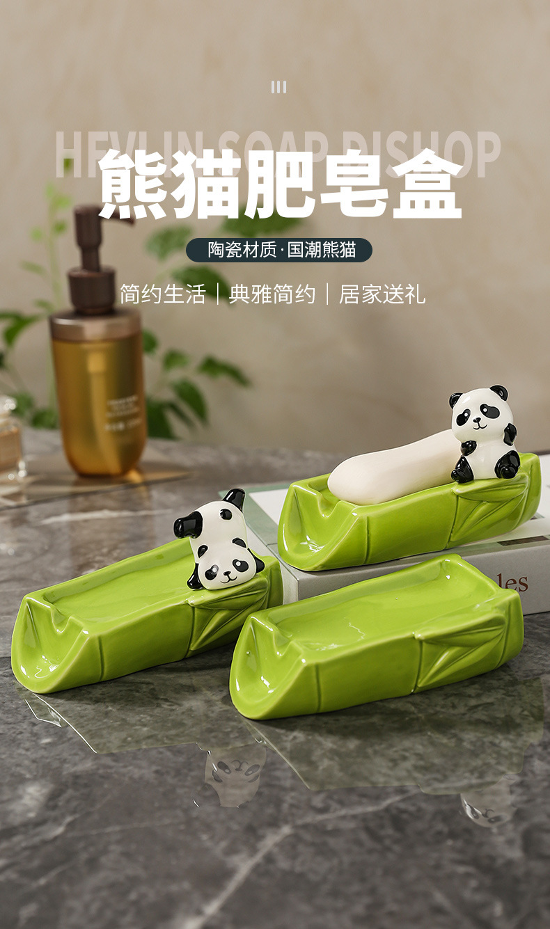 陶瓷摆件香皂盒浴室工艺品创意装饰新款家用网红可爱竹节熊猫皂碟