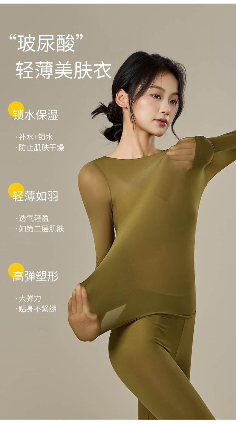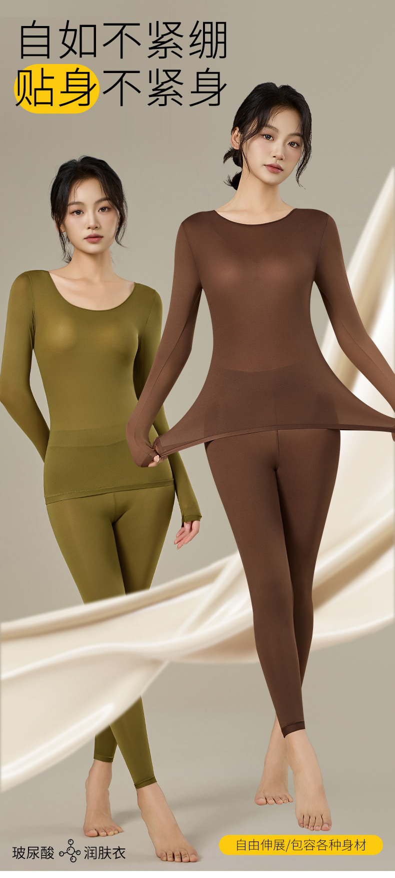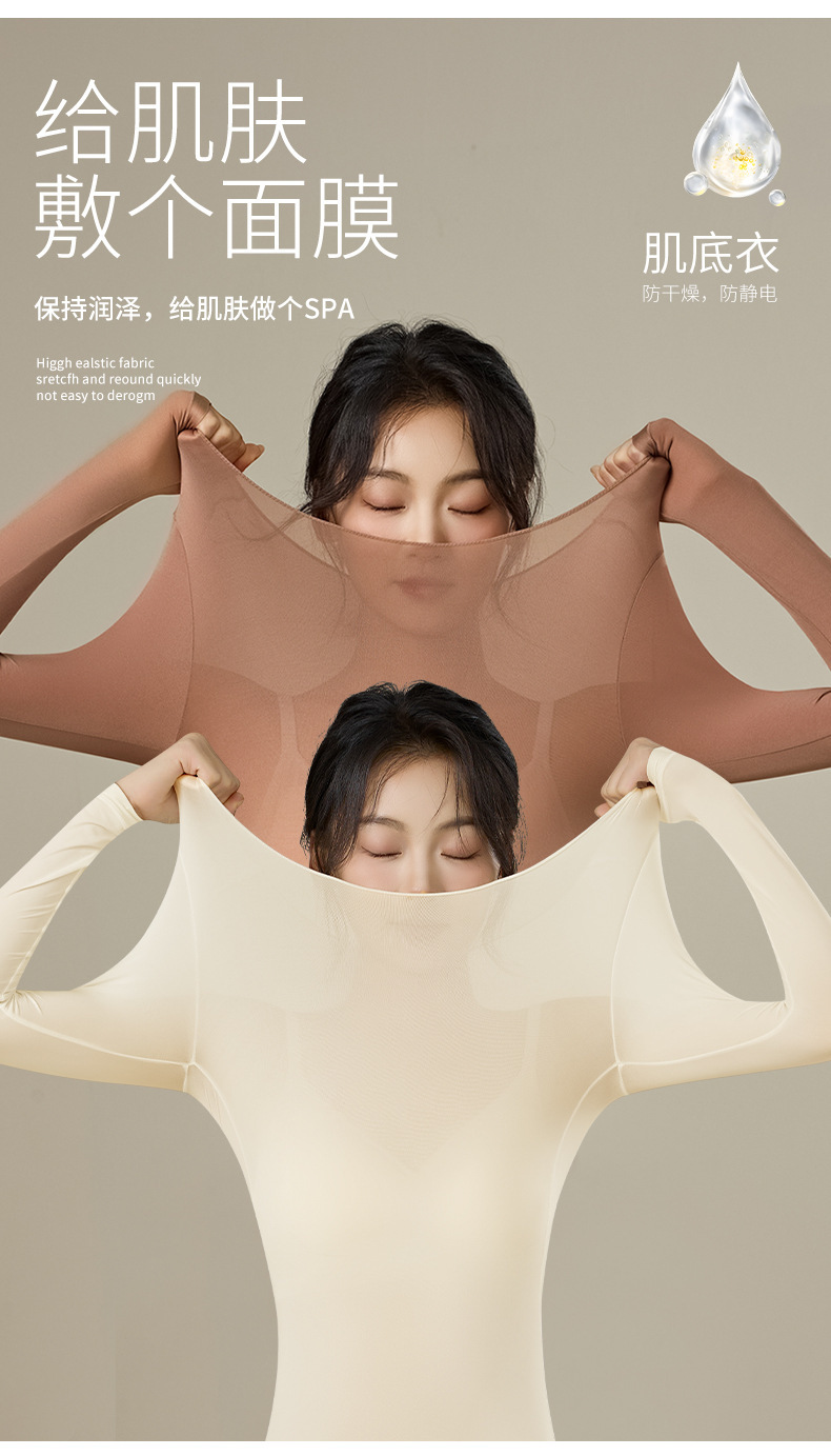 히알루론산 보습 따뜻한 긴팔 바지 열 피부 뷰티 마스크 가을 옷 긴 존스 높은 탄성베이스 따뜻한 세트 여성
