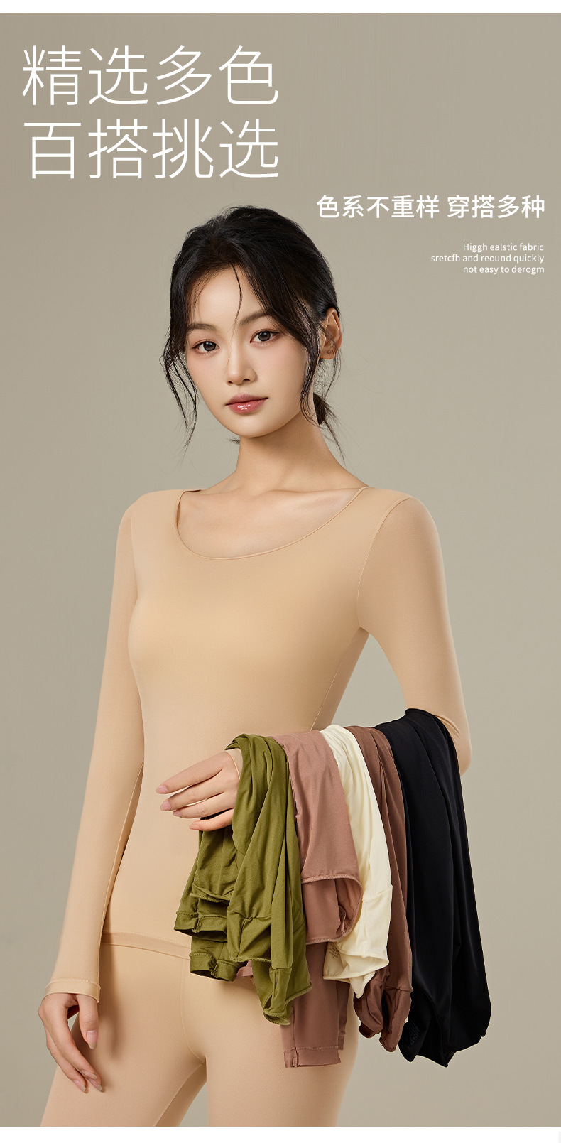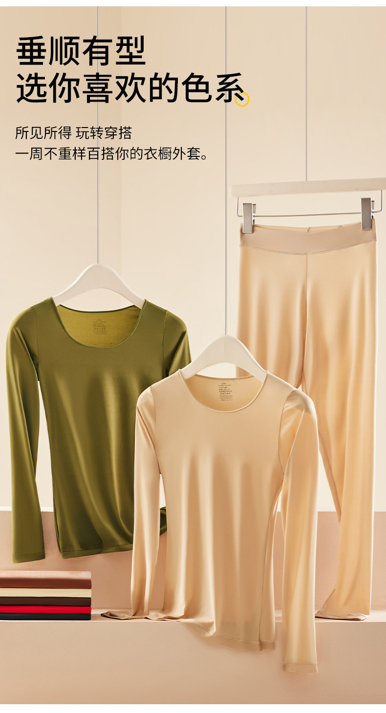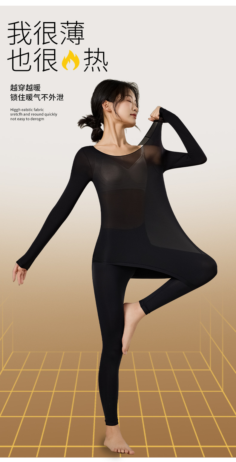 히알루론산 보습 따뜻한 긴팔 바지 열 피부 뷰티 마스크 가을 옷 긴 존스 높은 탄성베이스 따뜻한 세트 여성