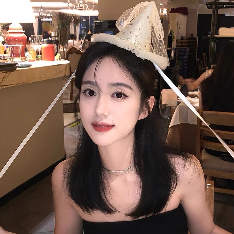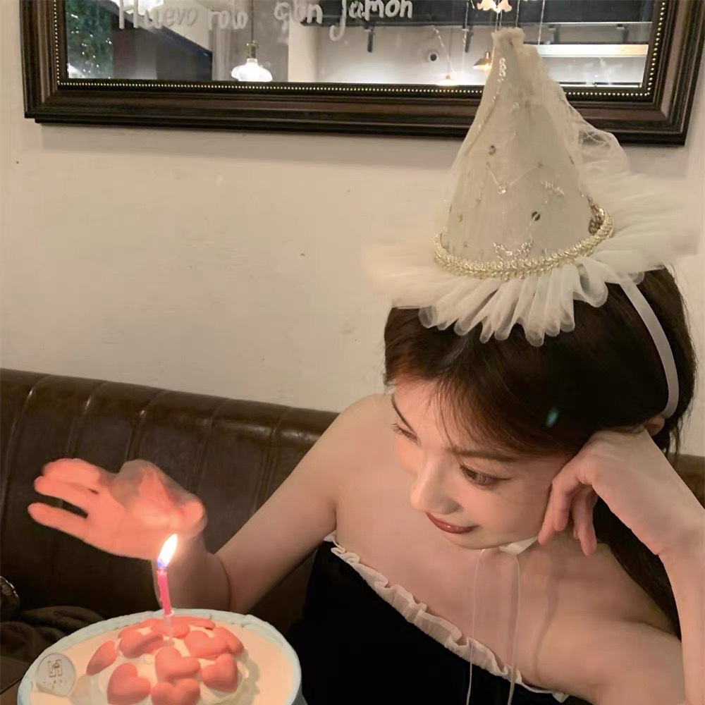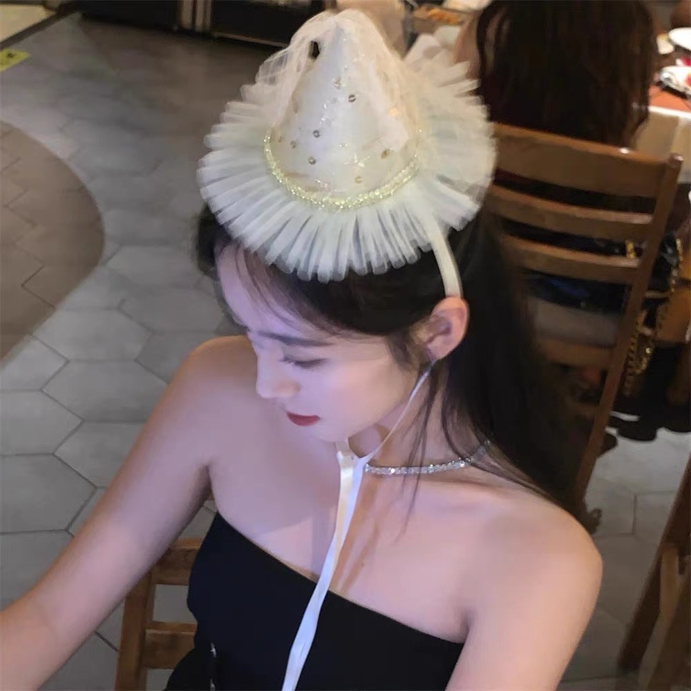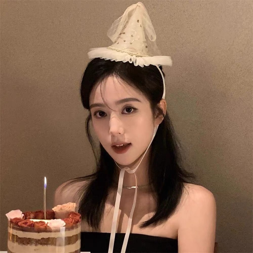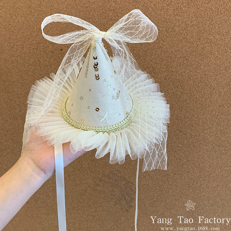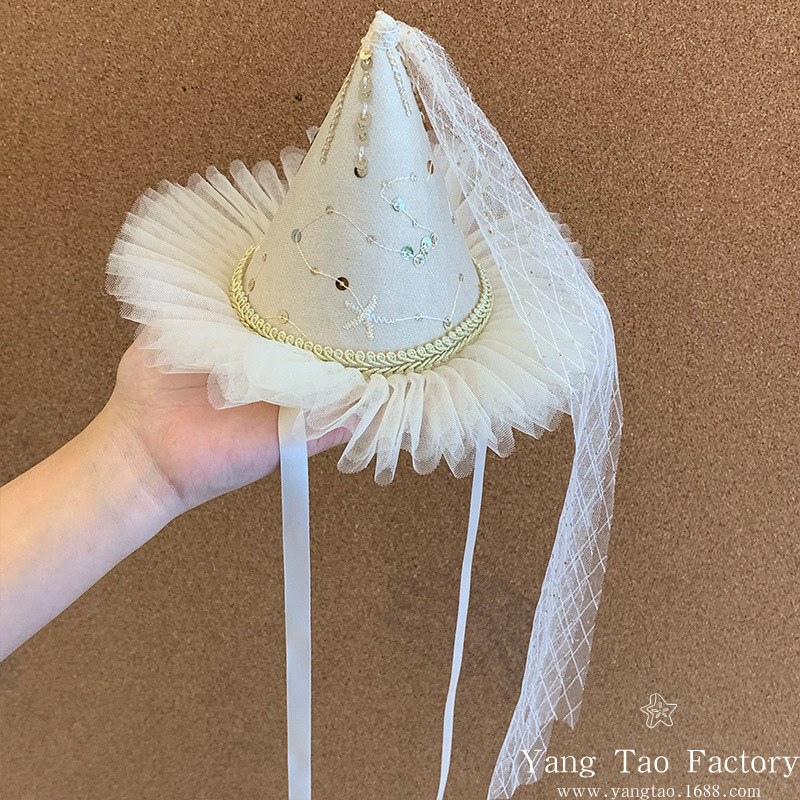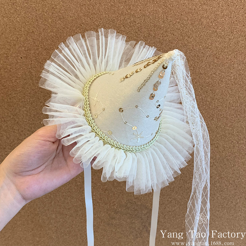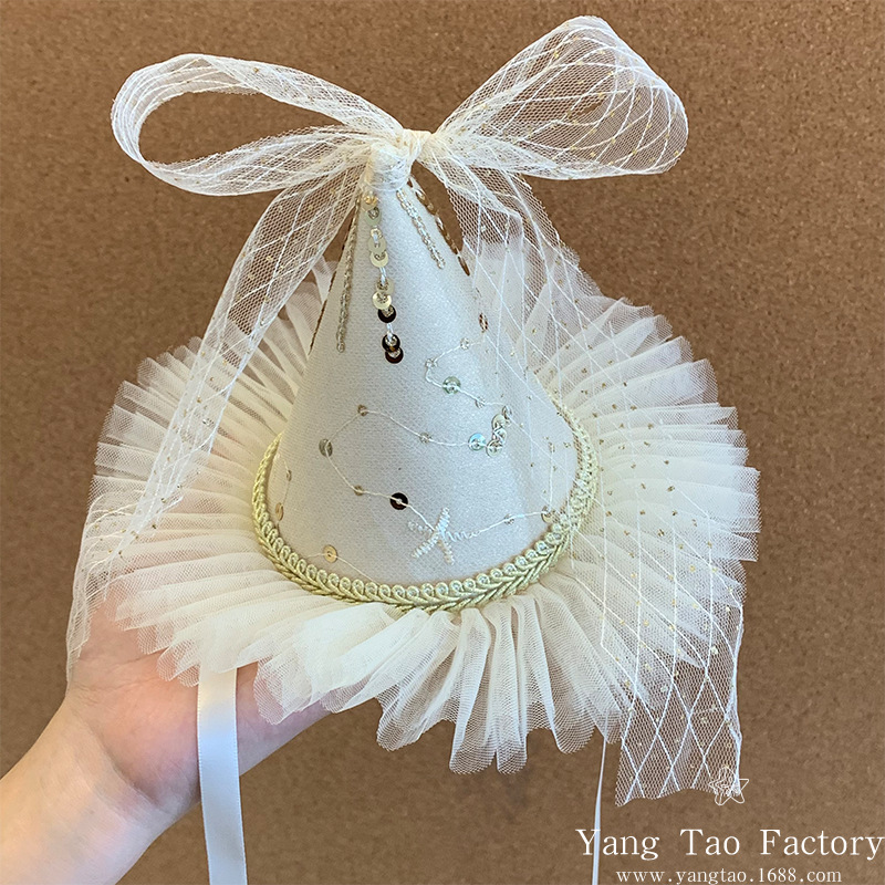 프랑스 귀여운 파티 자수 Sequins 레이스 업 생일 모자 활 메쉬 모자 헤어핀 헤어 액세서리 헤드웨어