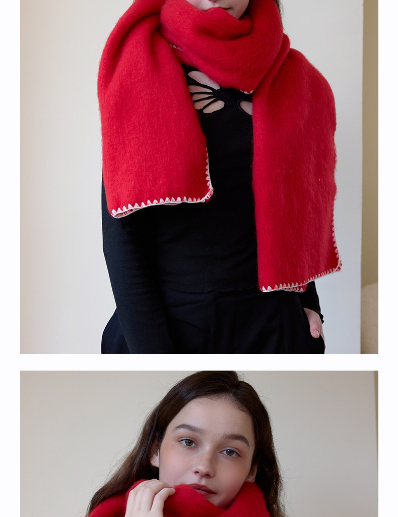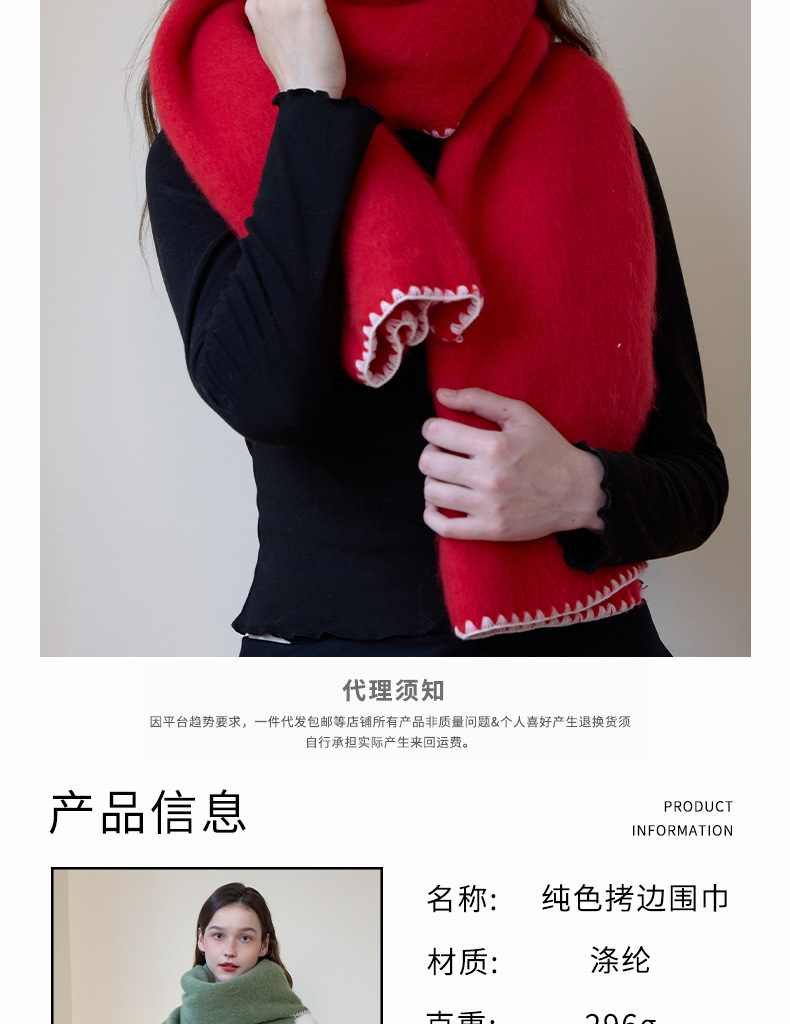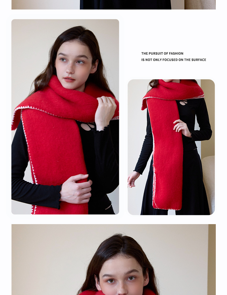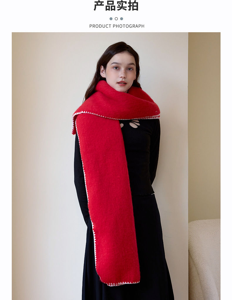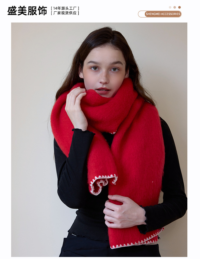 대외 무역 한국 스타일 고급 분위기 소프트 왁스 모방 캐시미어 엣지 디자인 두꺼운 따뜻한 솔리드 컬러 스카프 여성 레드스토어 가기