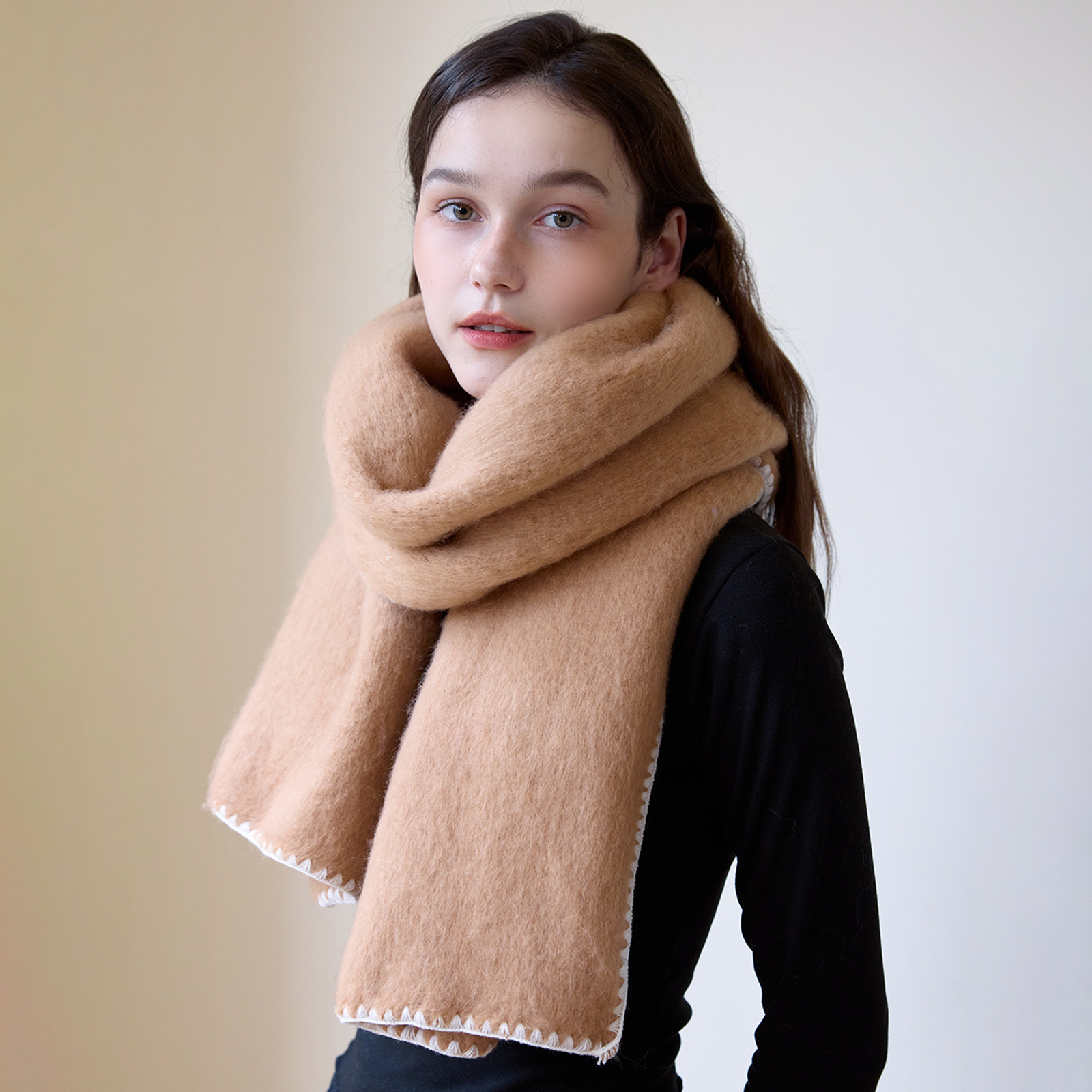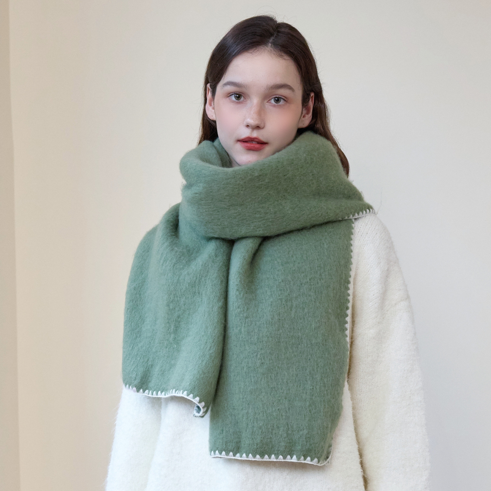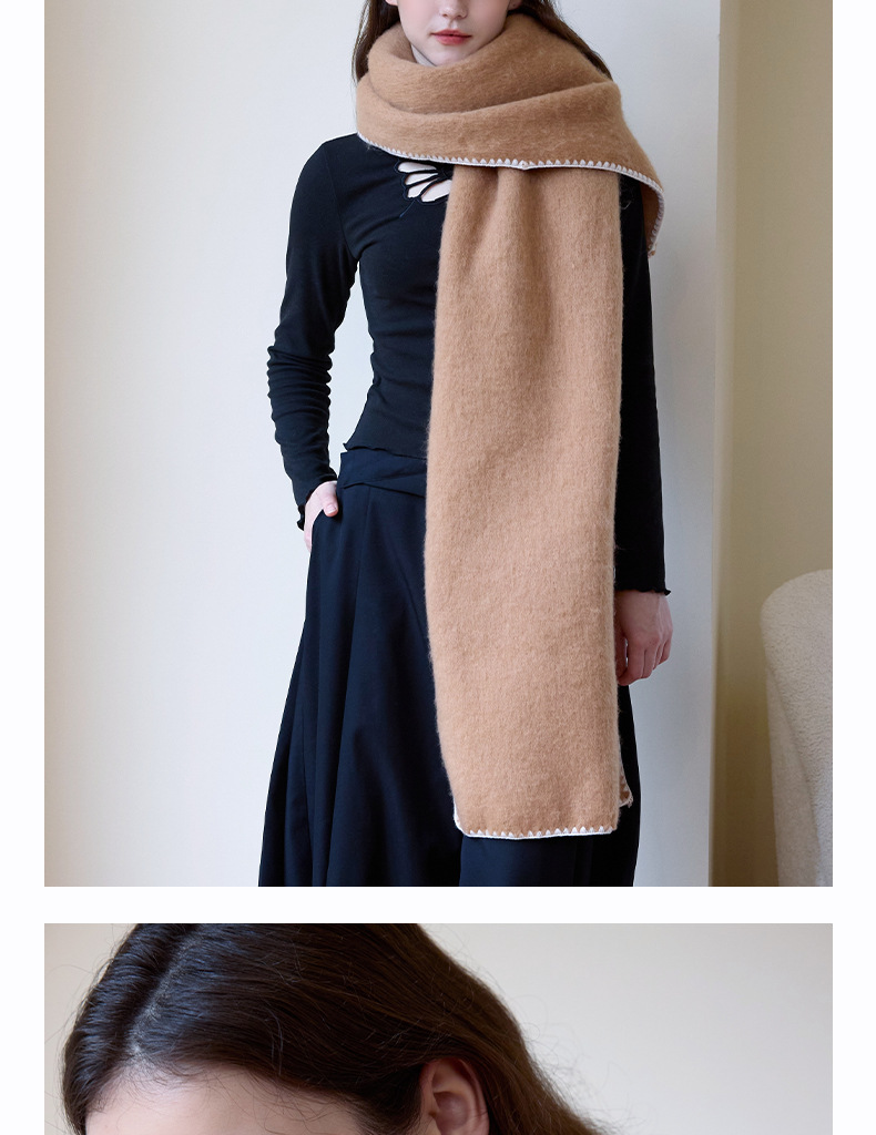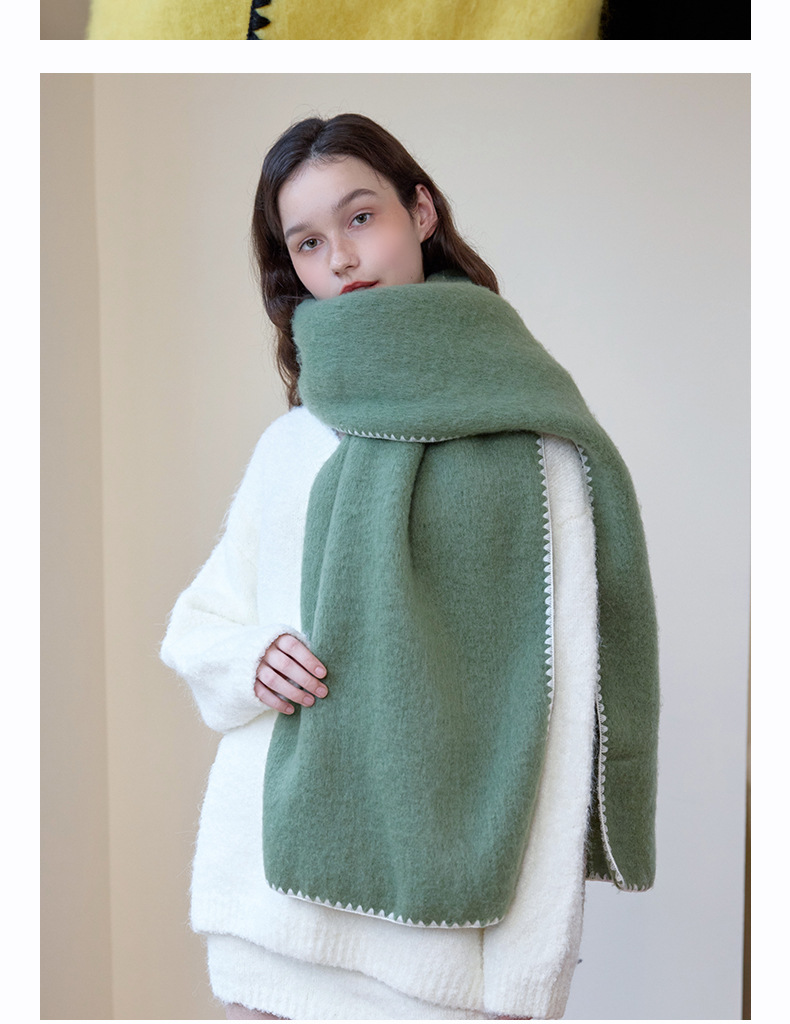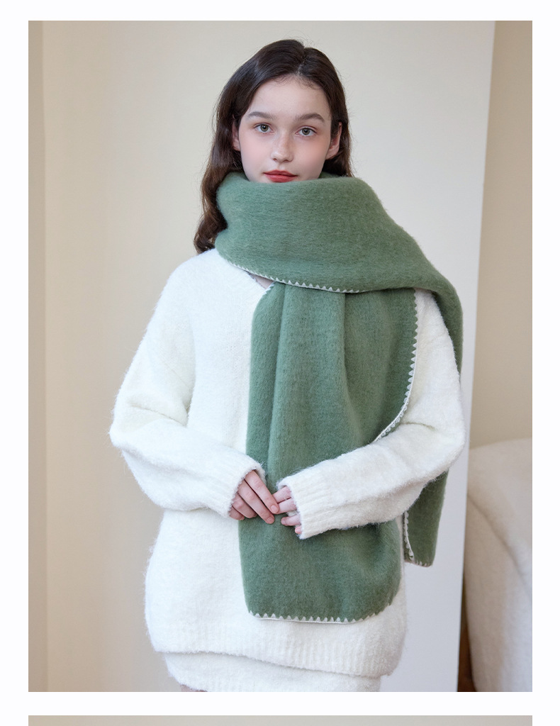 대외 무역 한국 스타일 고급 분위기 소프트 왁스 모방 캐시미어 엣지 디자인 두꺼운 따뜻한 솔리드 컬러 스카프 여성 레드스토어 가기