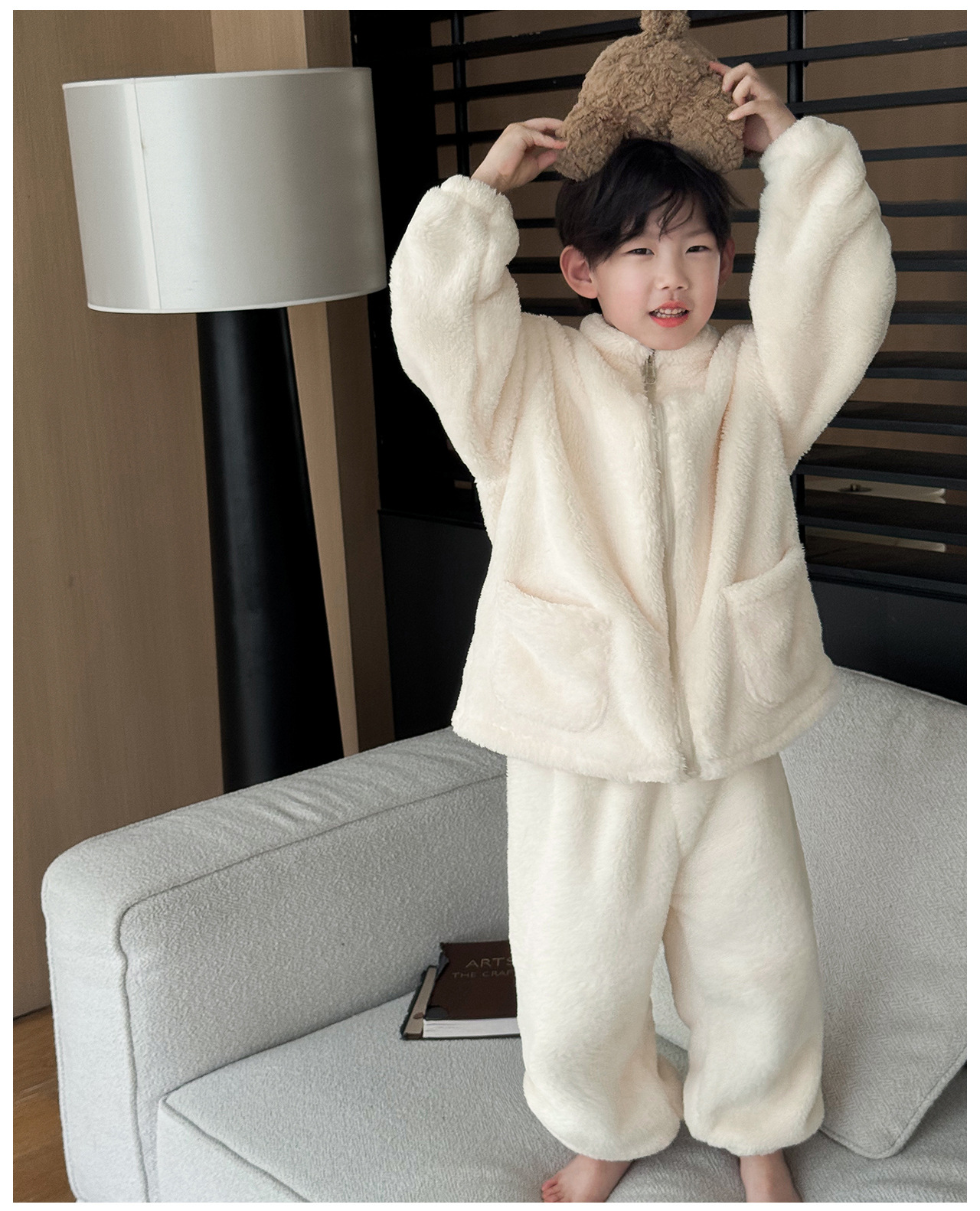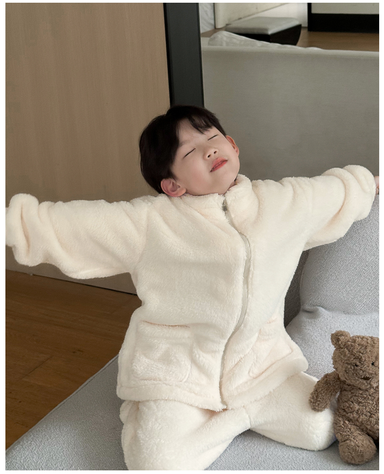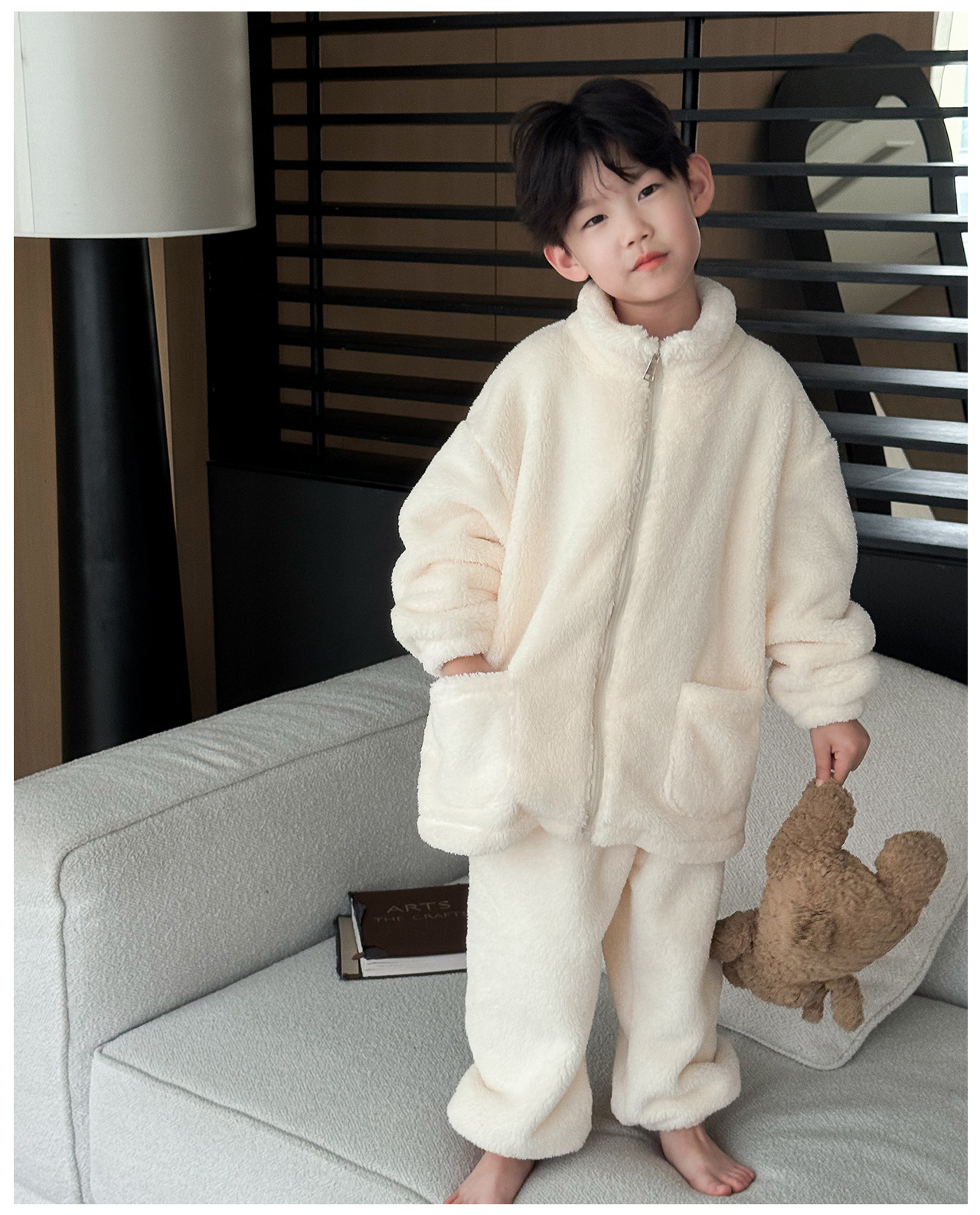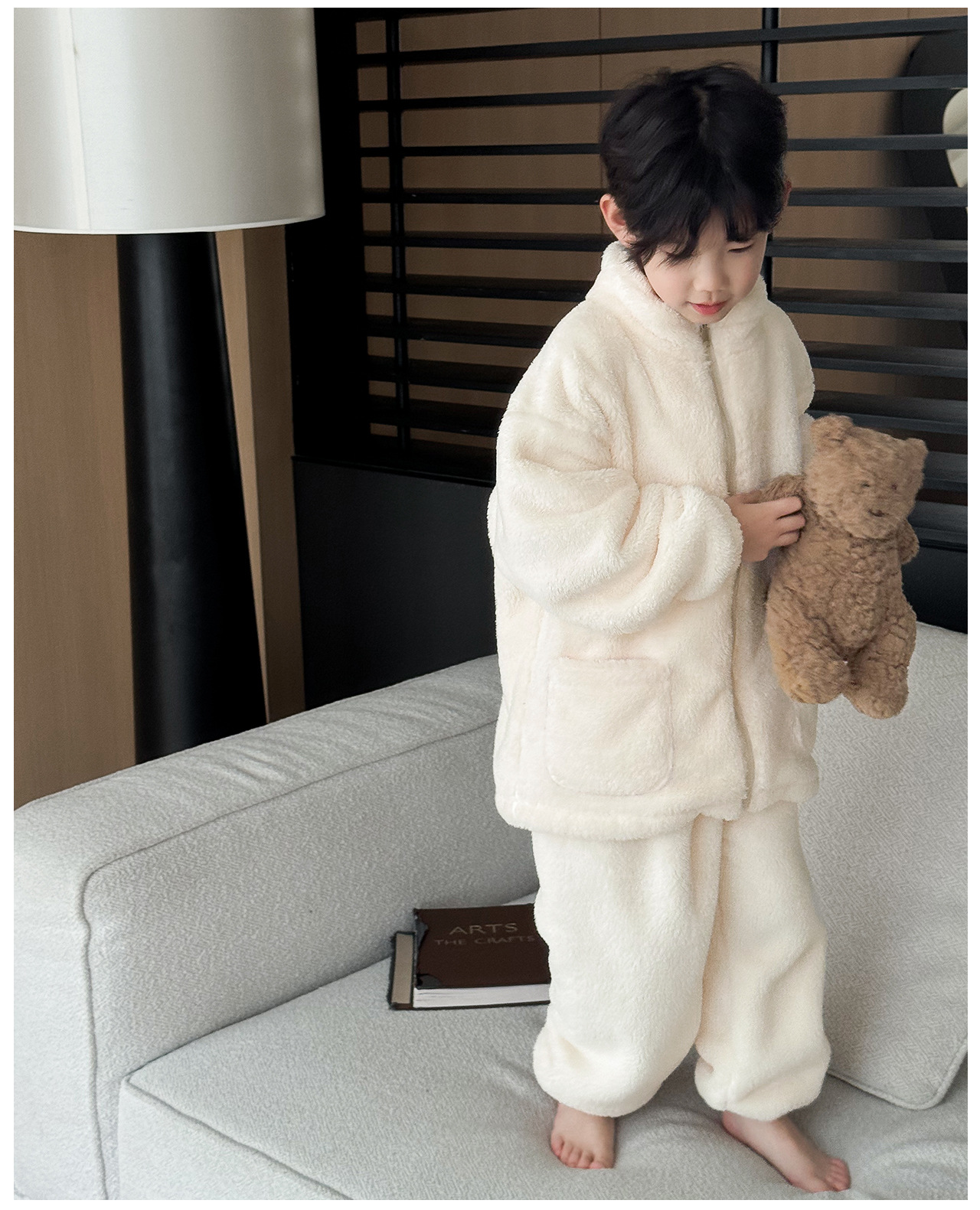 【겨울 특가 클리어런스】완투 어린이 겨울용 단색 양면 빗질된 면 벨벳 홈웨어 남아용 잠옷 세트스토어 가기