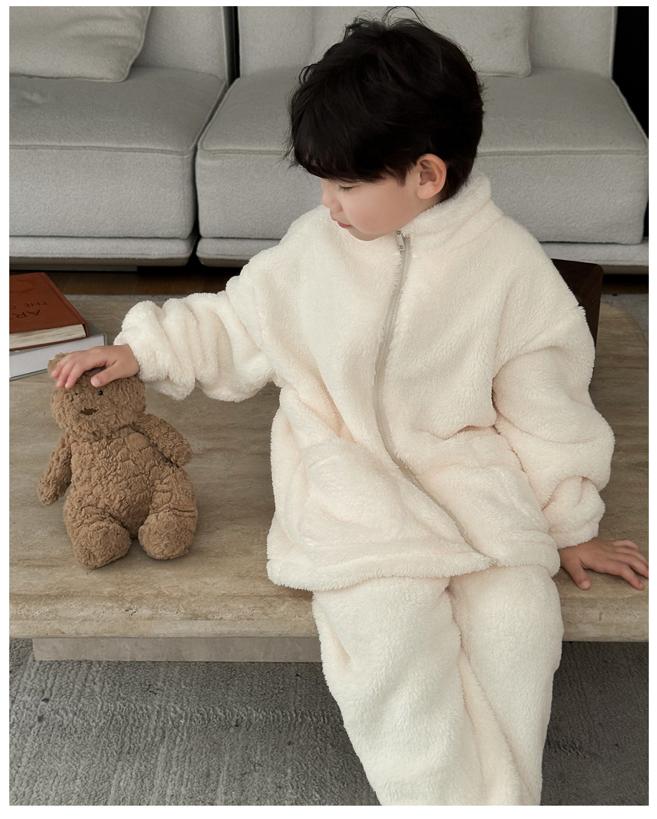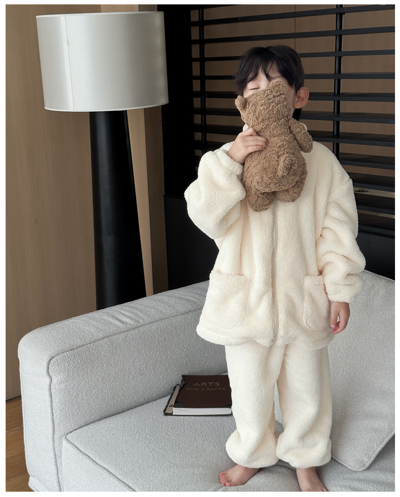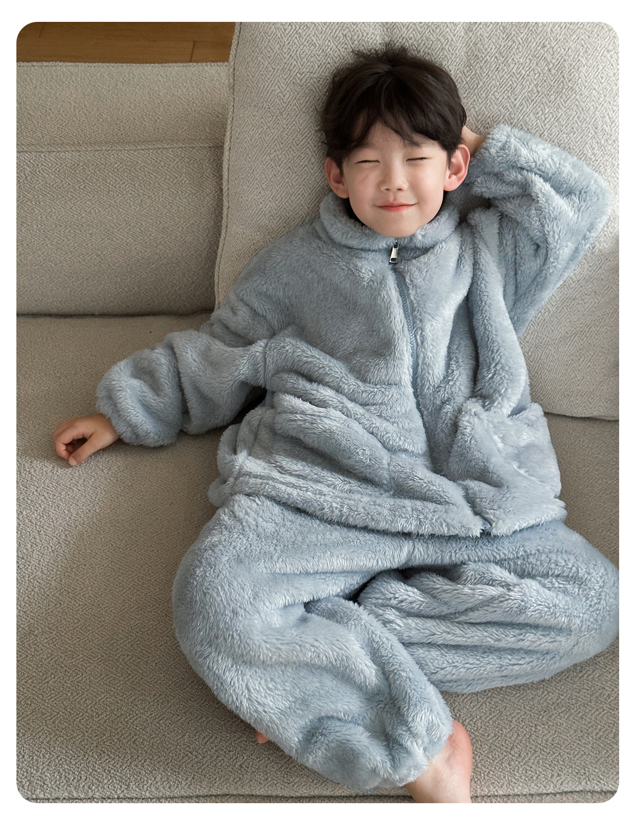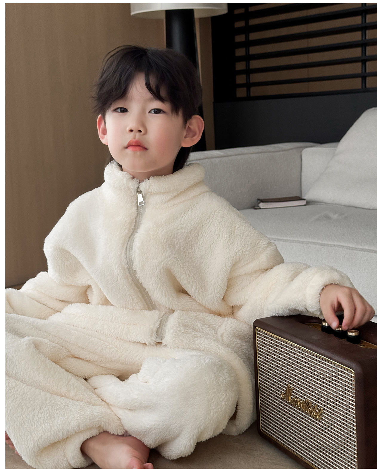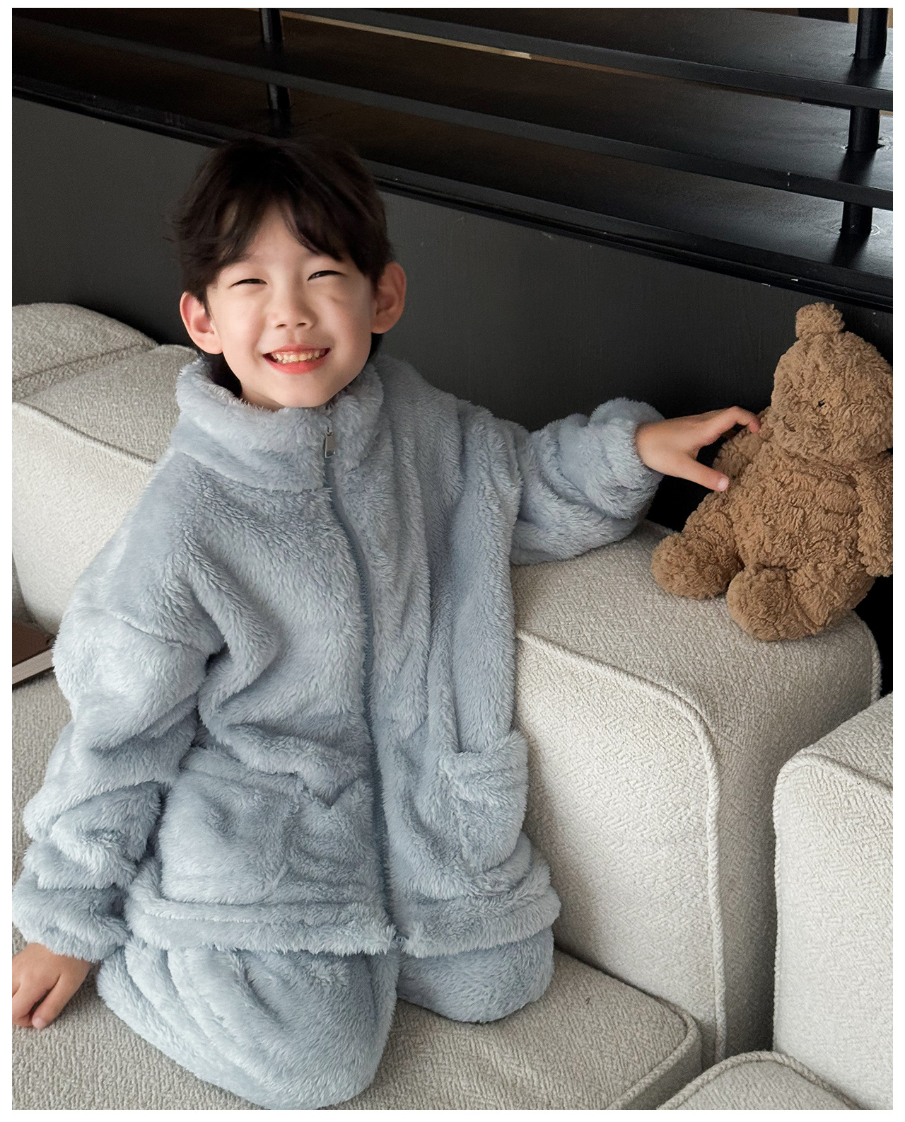 【겨울 특가 클리어런스】완투 어린이 겨울용 단색 양면 빗질된 면 벨벳 홈웨어 남아용 잠옷 세트스토어 가기