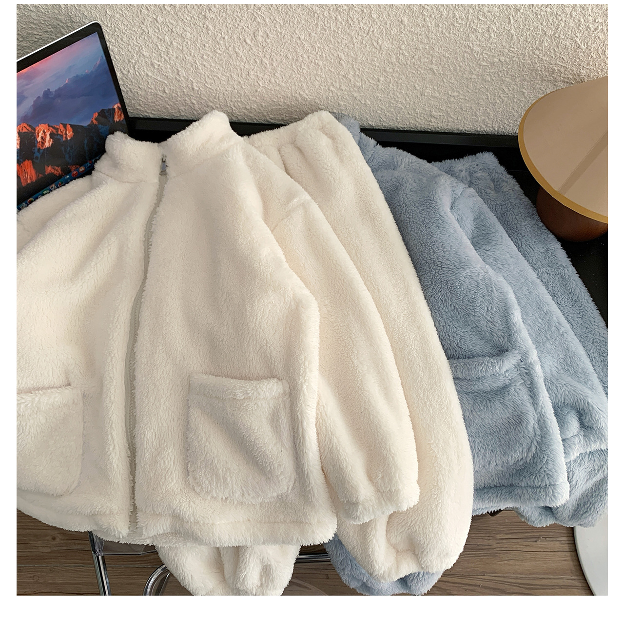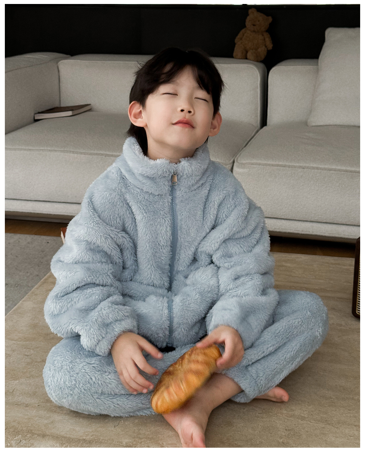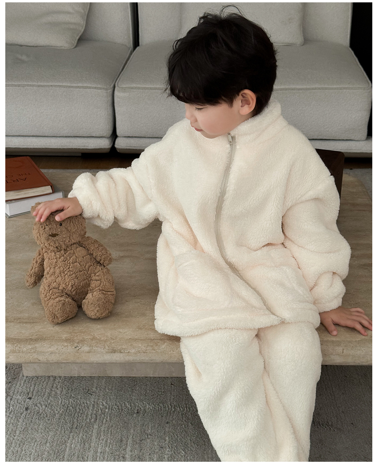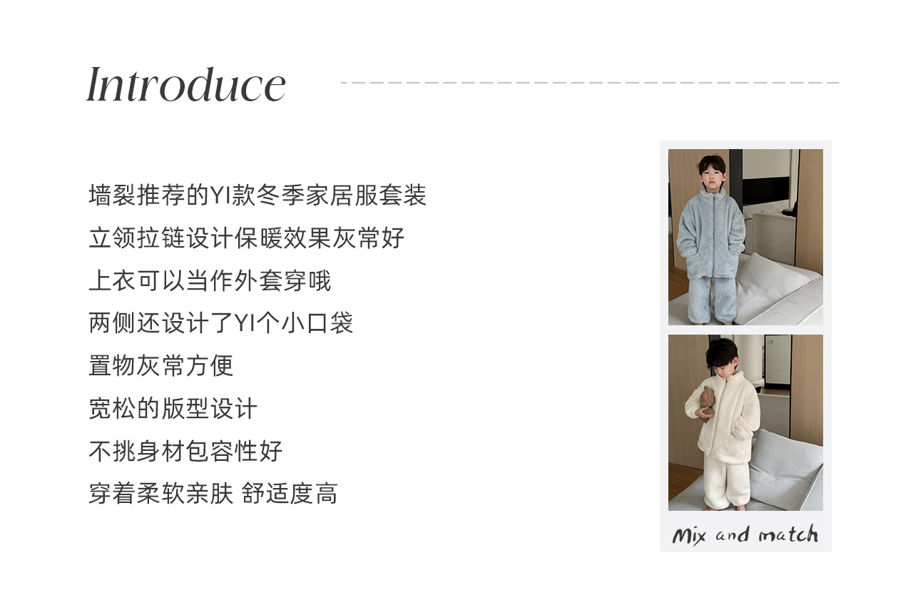 【겨울 특가 클리어런스】완투 어린이 겨울용 단색 양면 빗질된 면 벨벳 홈웨어 남아용 잠옷 세트스토어 가기