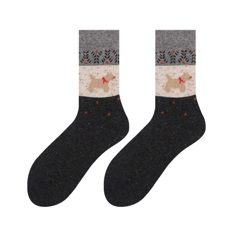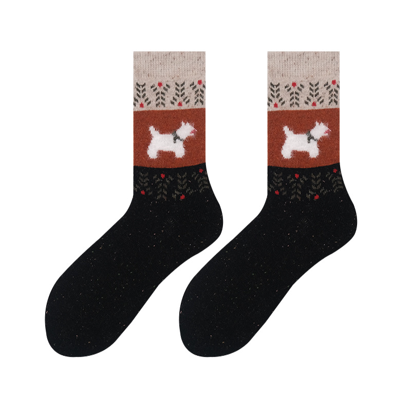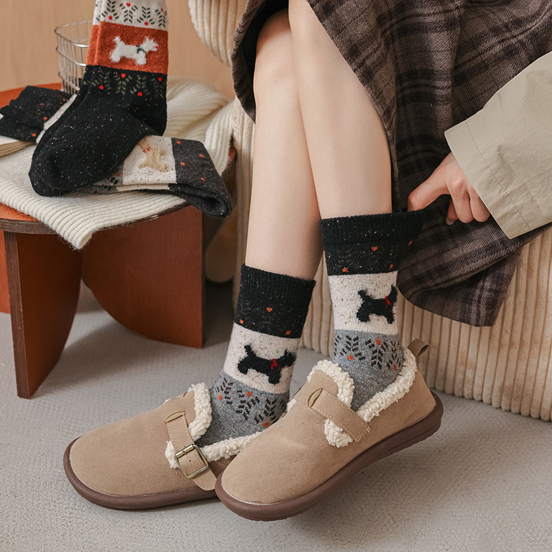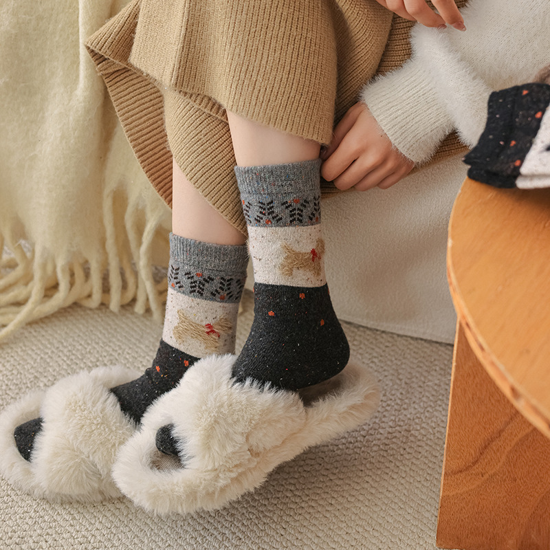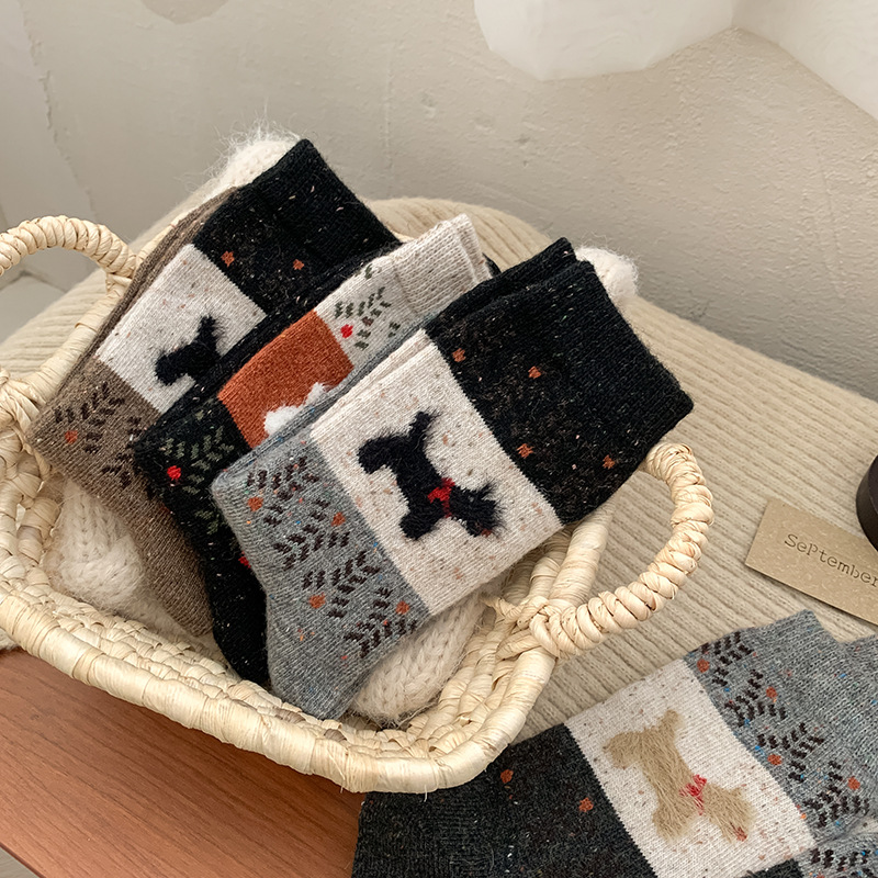 도튼 강아지 양모 양말 여성 중추와 겨울 두꺼운 따뜻한 빈티지 컬러 접합 페어 랜드 캐시미어 양말스토어 가기