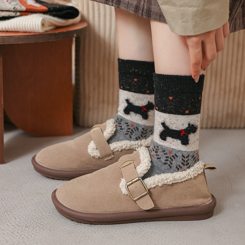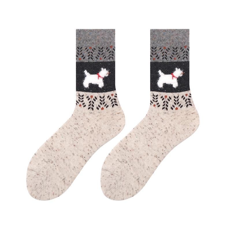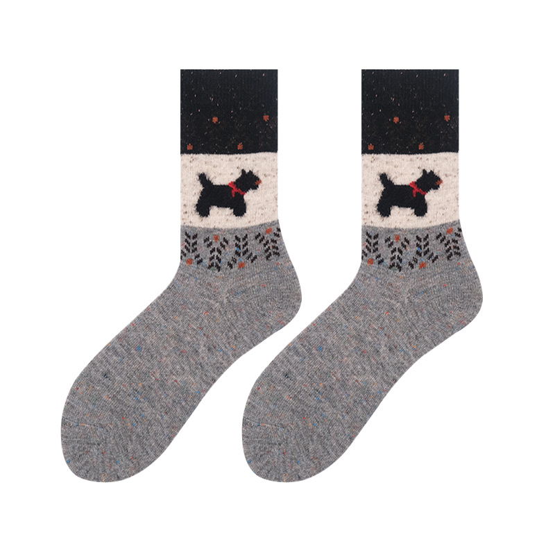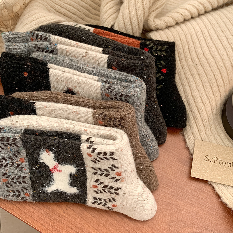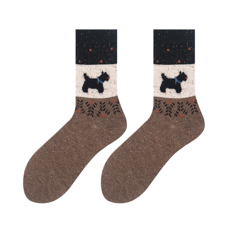 도튼 강아지 양모 양말 여성 중추와 겨울 두꺼운 따뜻한 빈티지 컬러 접합 페어 랜드 캐시미어 양말스토어 가기