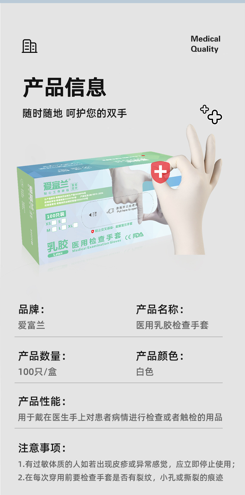 Afulan 일회용 의료 장갑 의료 및 건강 실험실 검사 살균 유화 장갑 의료 등급