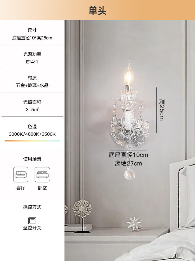 고급 감각 프랑스 침실 침대 머리 빛 고급 크리스탈 벽 램프 현대 2024 고급 감각 거실 배경 벽 램프스토어 가기