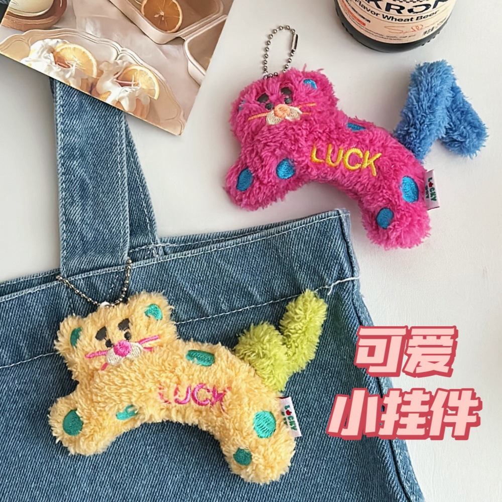 정품 공동 창조적 인 만화 LUCK 폴카 고양이 인형 펜던트 트위스트 스틱 테일 인형 소녀 배낭 펜던트스토어 가기