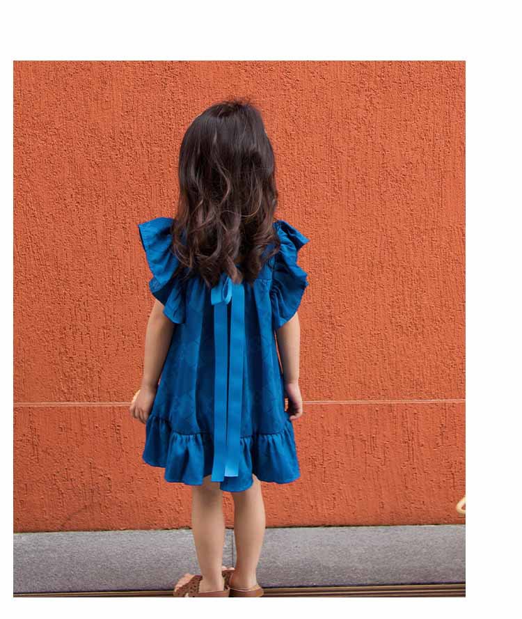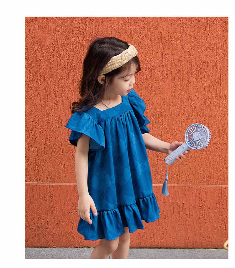 소녀 원피스 여름 새로운 한국 인쇄 사각형 칼라 플라이 슬리브 주름 공주 스커트 어린이 머리카락 세대스토어 가기