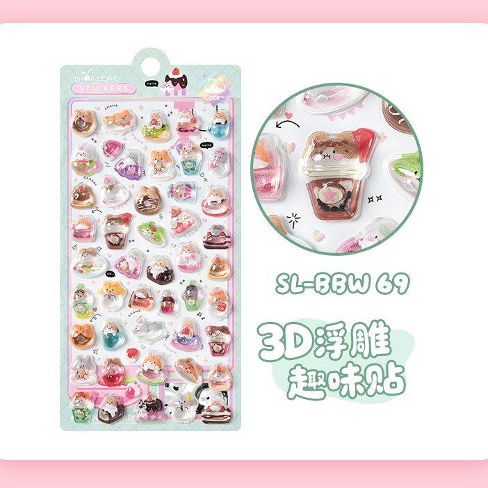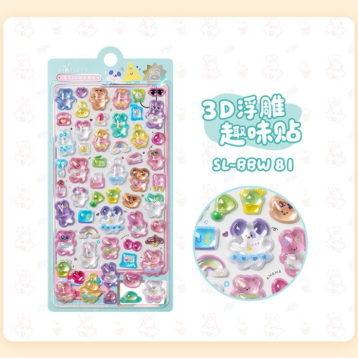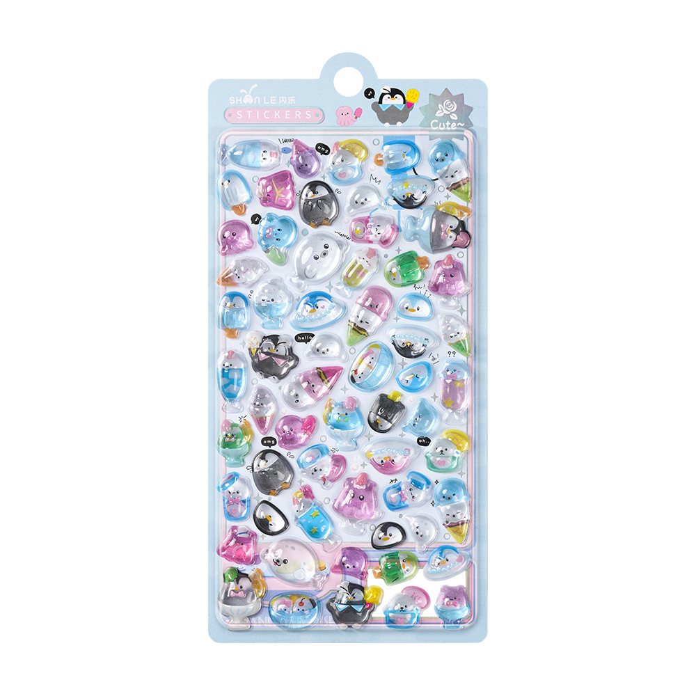 뜨거운 판매 플래시 스티커 3D 입체 양각 스티커 솔리드 어린이 만화 동물 크리스탈 휴대 전화 케이스 Guka 장식 스티커스토어 가기