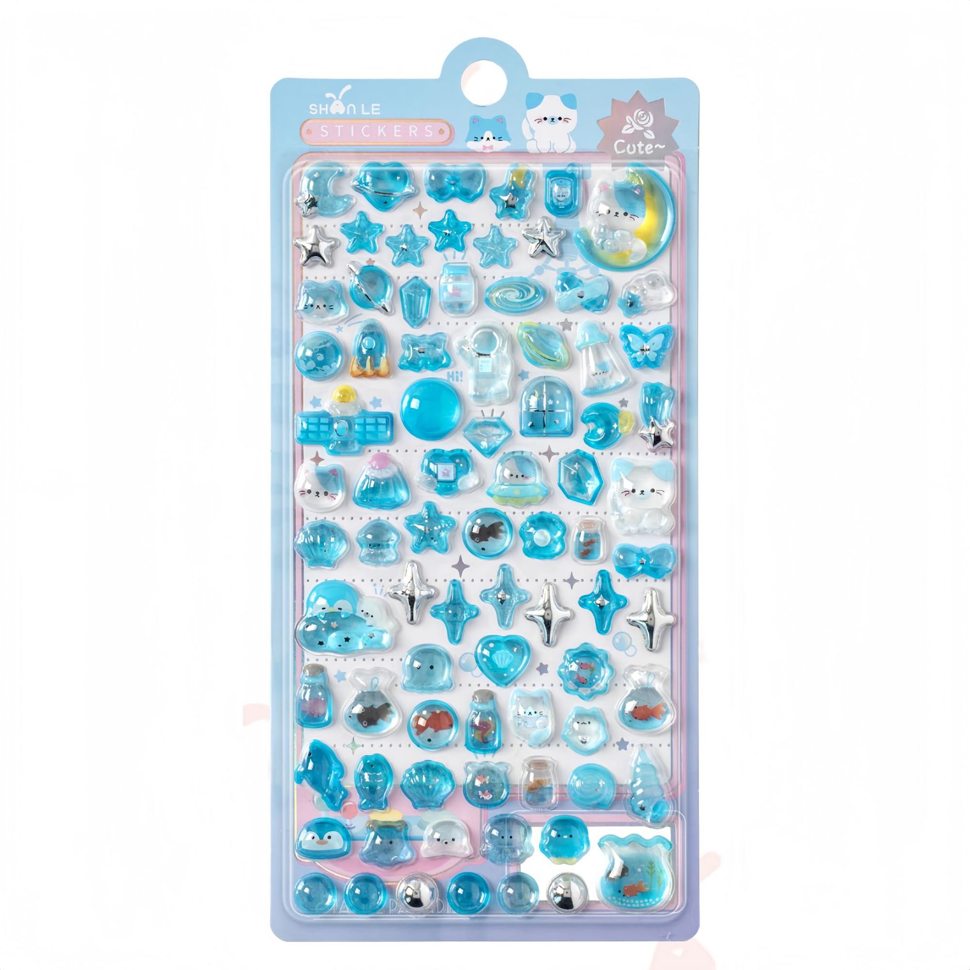 • 도감 엠보싱 스티커 SL-BUH-01 - 블루 스타 앤 문