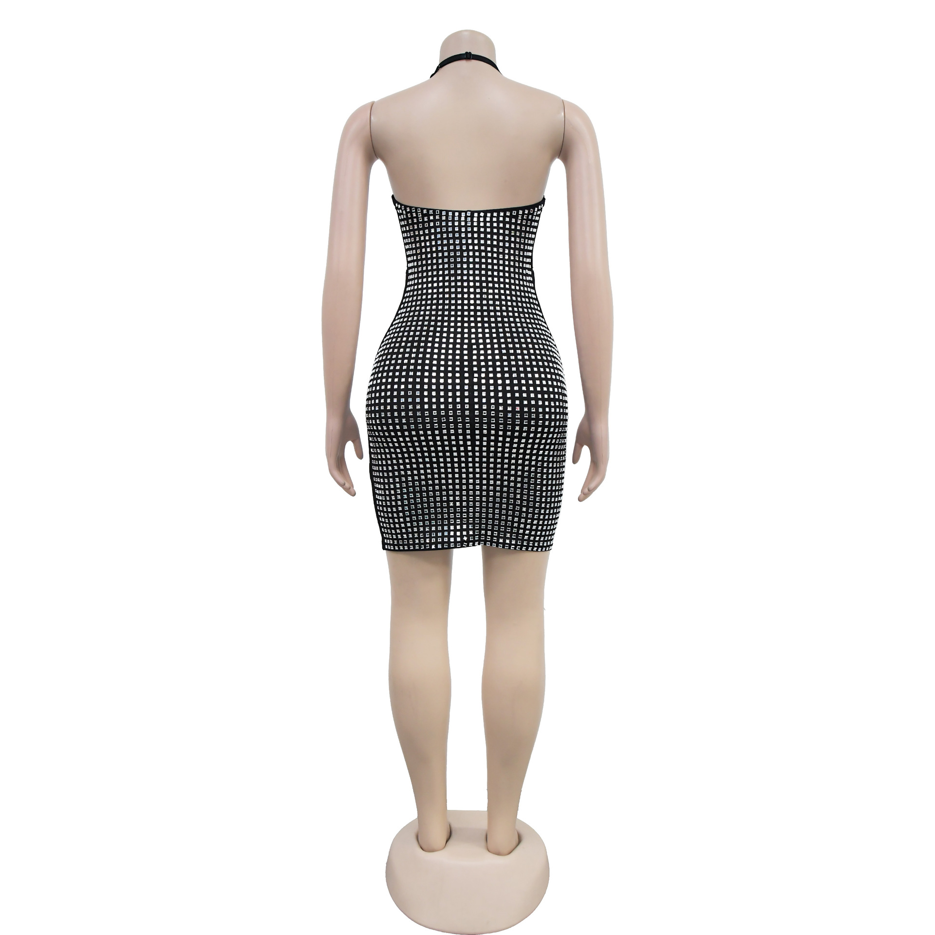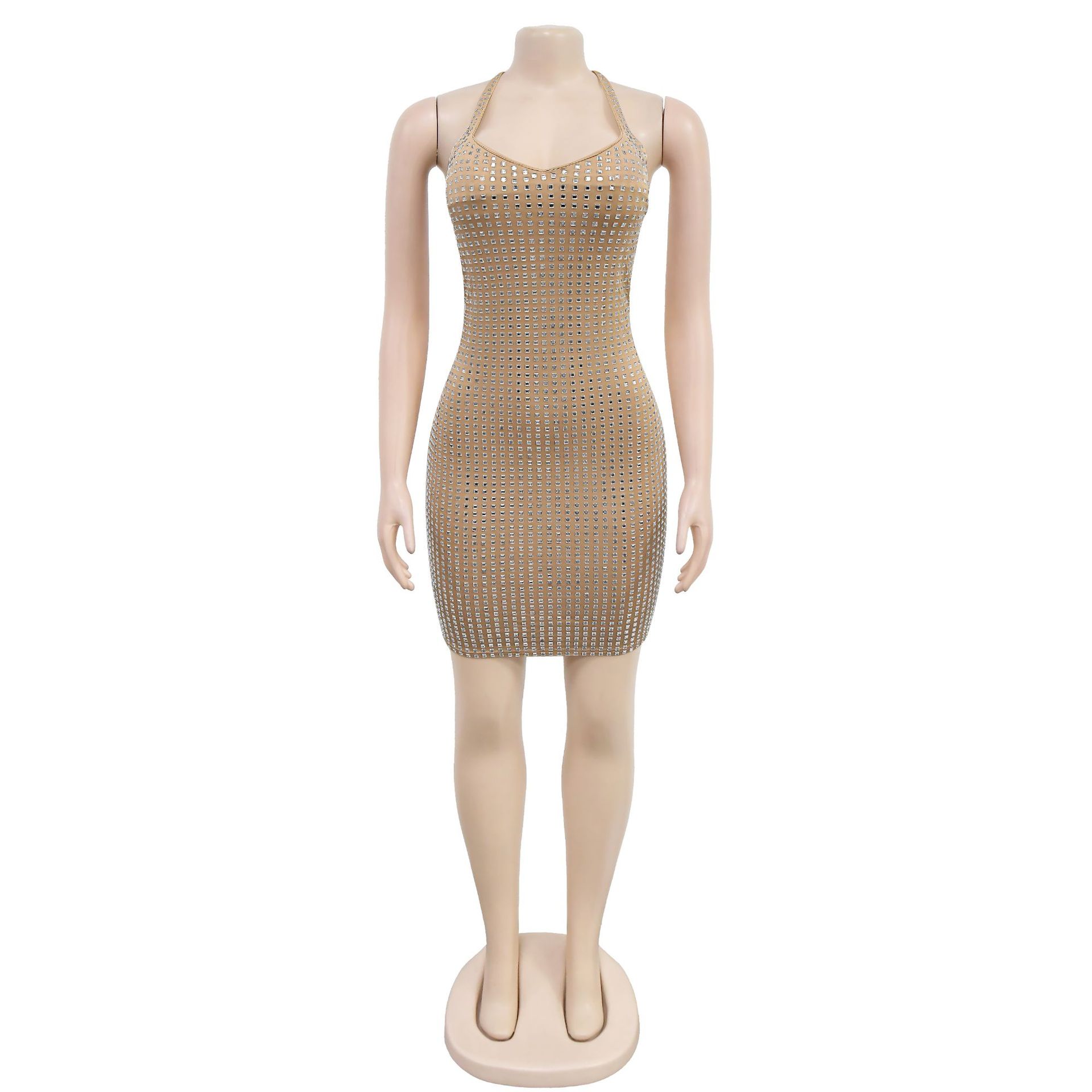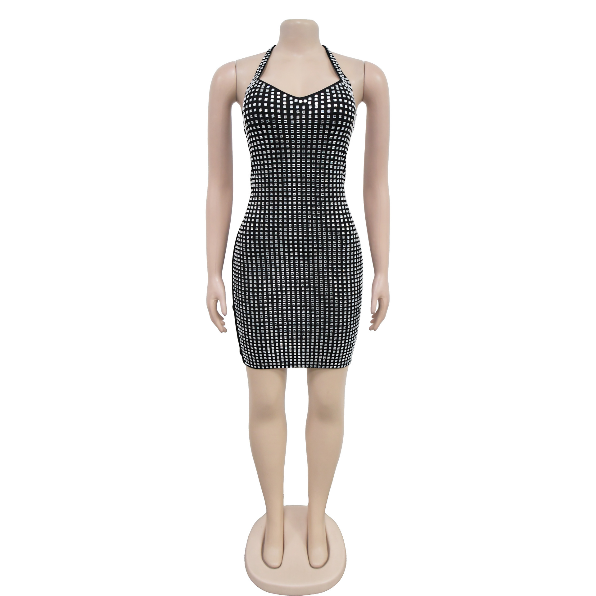 C7179 국경 간 AliExpress 아마존 유럽과 미국의 패션 여성의 섹시한 목 라인스톤 슬림 핏 힙합 원피스스토어 가기