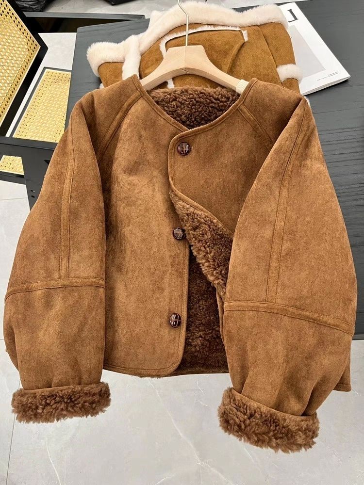 모피 원피스 두꺼운 Lambswool 스웨이드 다크 브라운 재킷 코트 여성용 겨울 짧은 한국식 의류 탑스토어 가기