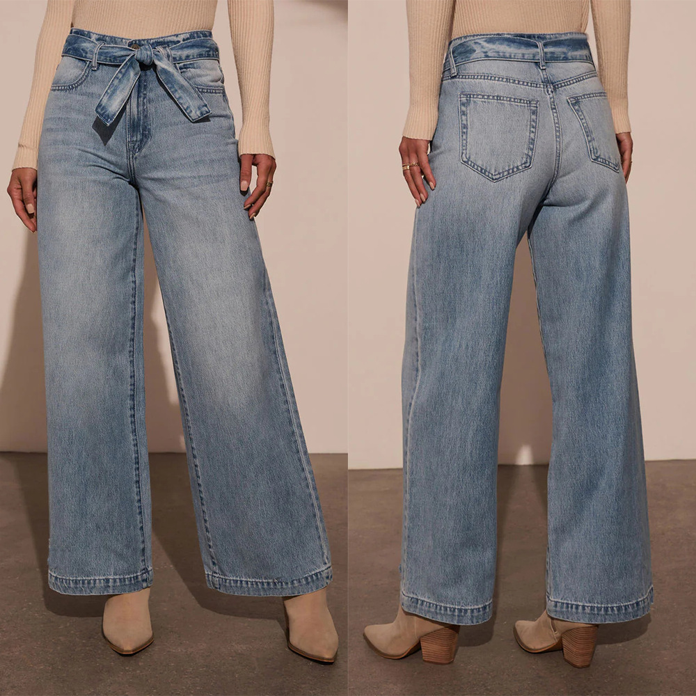 2025 유럽과 미국 국경 아마존 대외 무역 여성 하이 허리 스트랩 스트레이트 튜브 와이드 레그 청바지 8935