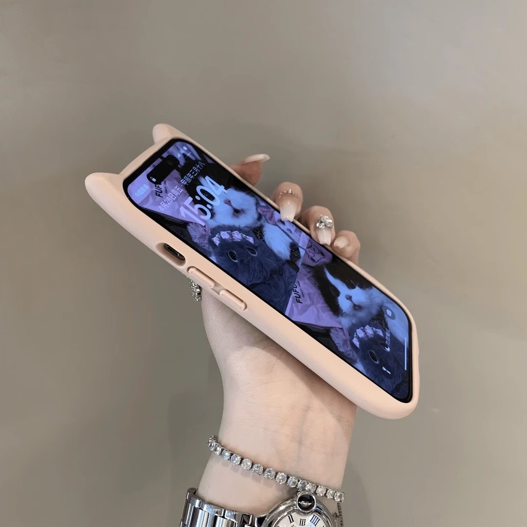 Iphone16ProMax 3 차원 고양이 귀 휴대 전화 케이스 애플 15 투명한 간단한 드롭 방지 보호 케이스 14스토어 가기