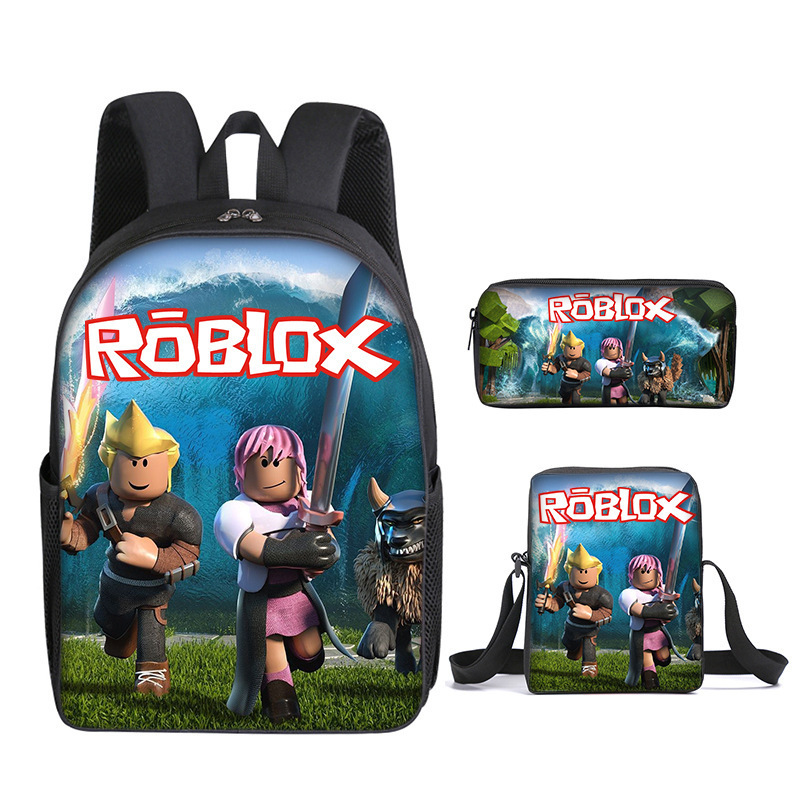 국경을 넘는 Roblox 학생 Schoolbag 초등 및 중등 학생을위한 한국식 배낭 스타일 패션 트렌디 한 배낭 3 종 세트