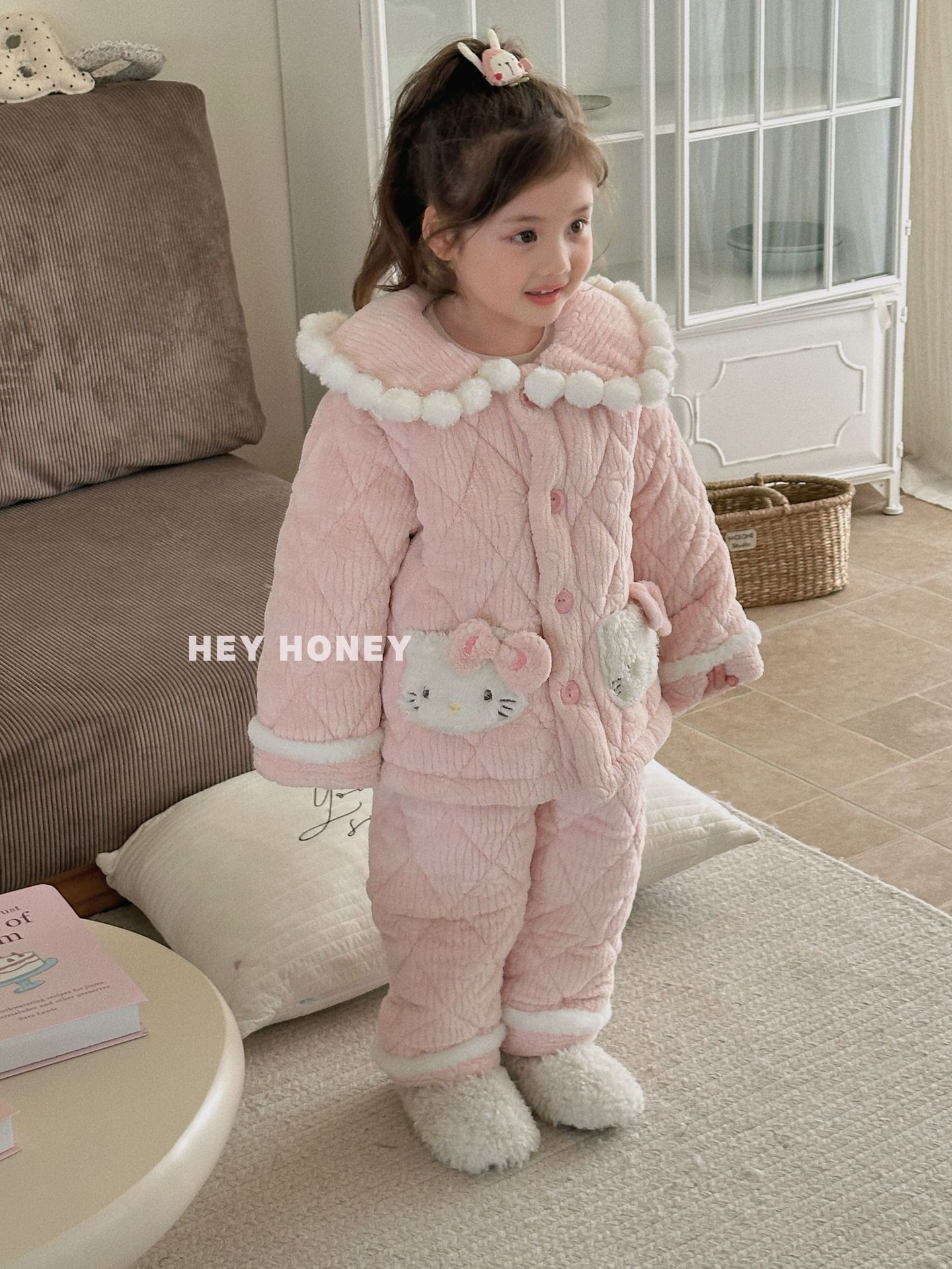 사이즈 롤 헤이 연인 겨울 소녀 잠옷 3 층 두꺼운 퀼트 공주 스타일 홈 옷 어린이 따뜻한 세트