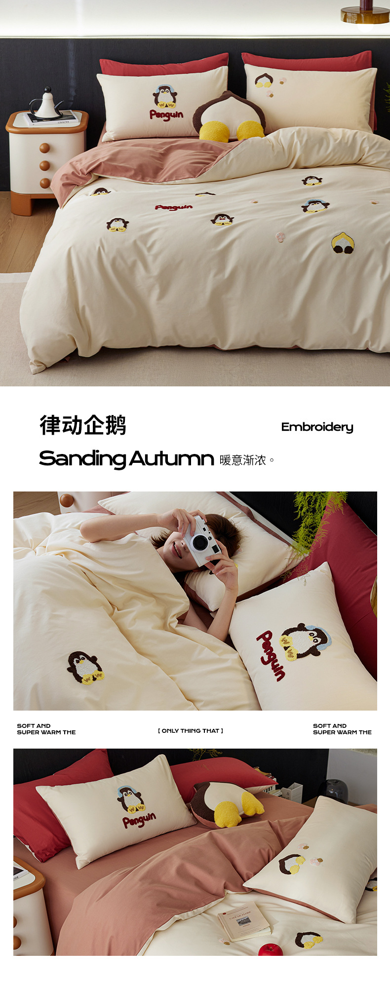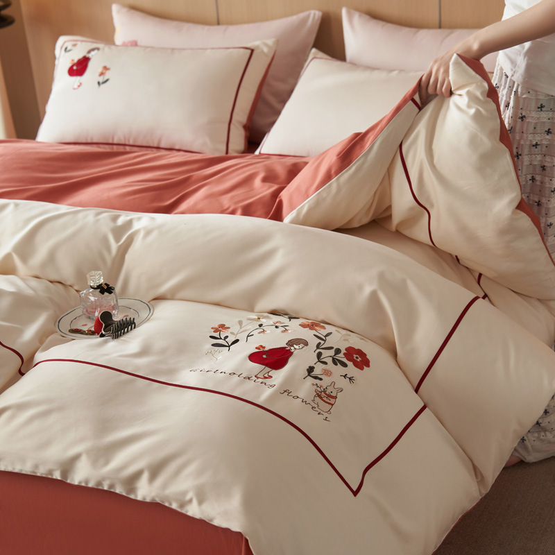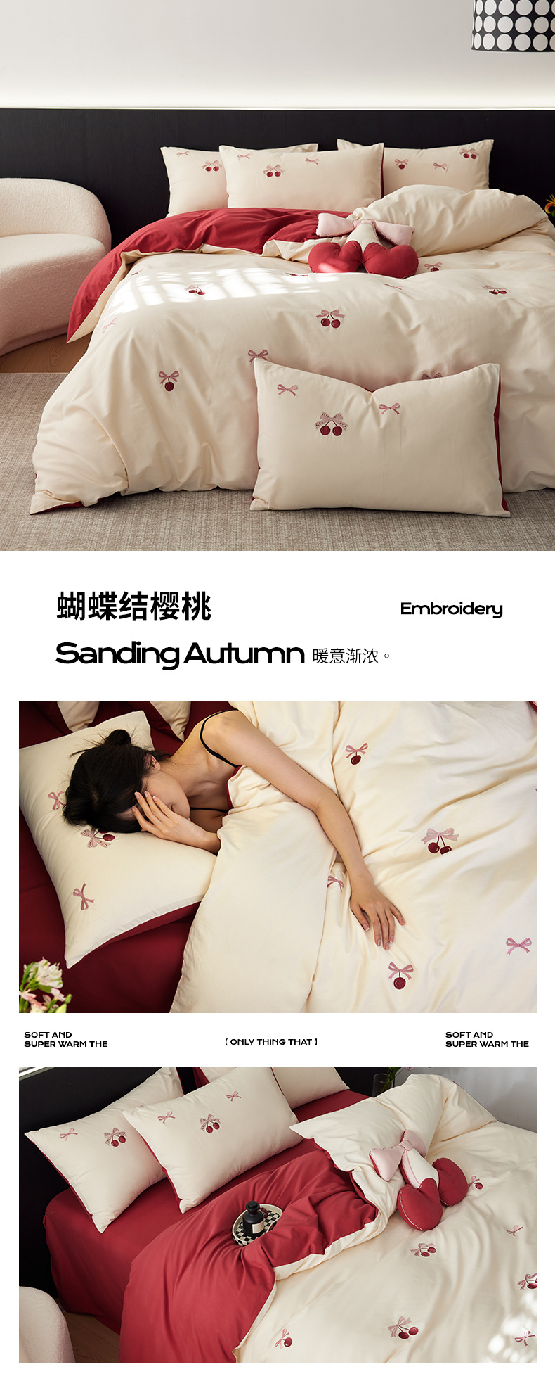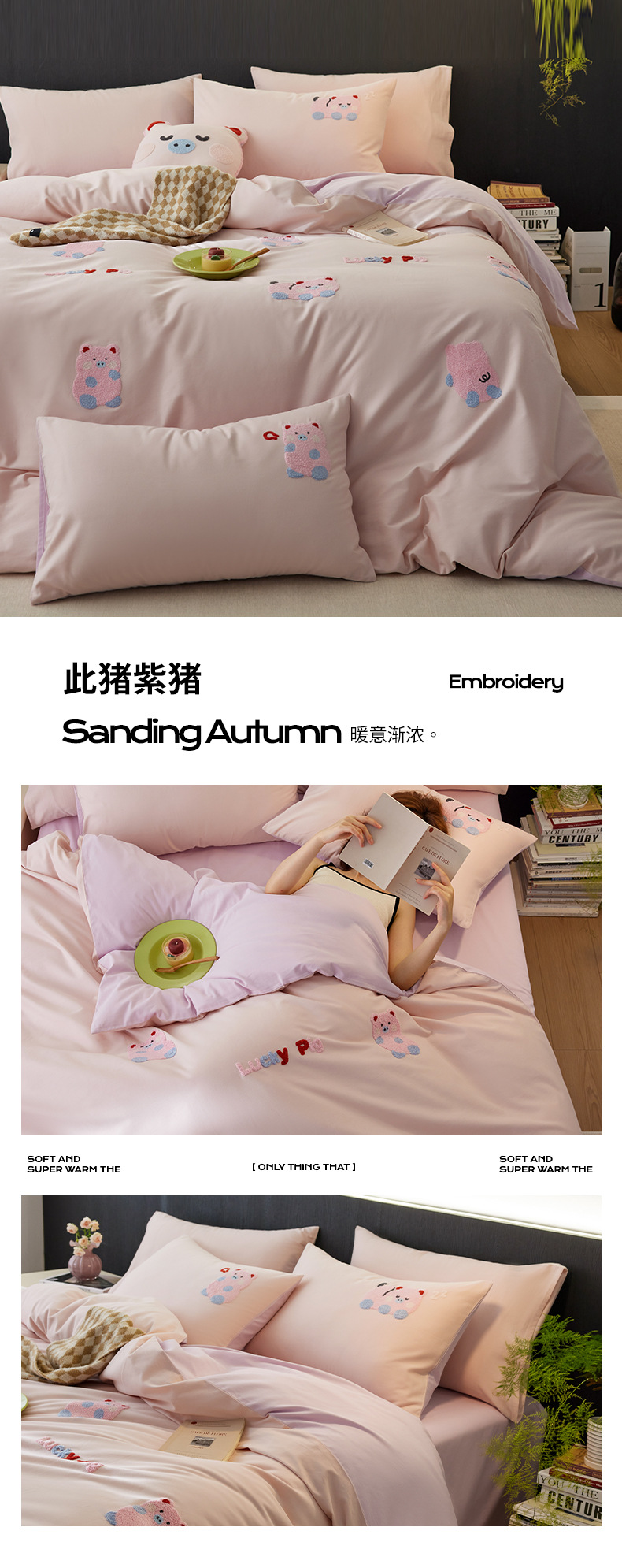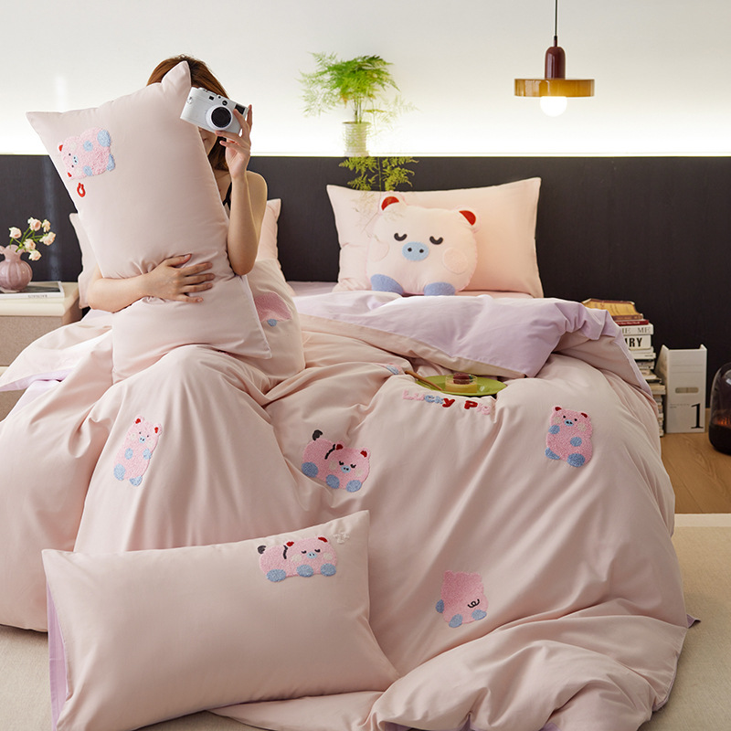 가을과 겨울 100 면 샌딩 4 피스 세트 바람면 패딩 퀼트 커버 시트 귀여운 자수 침구