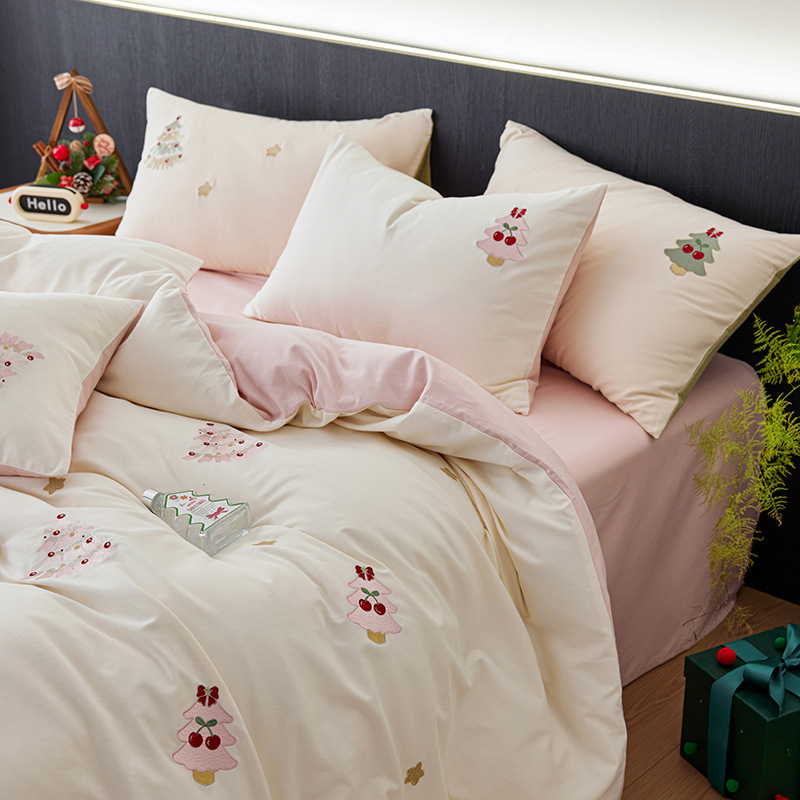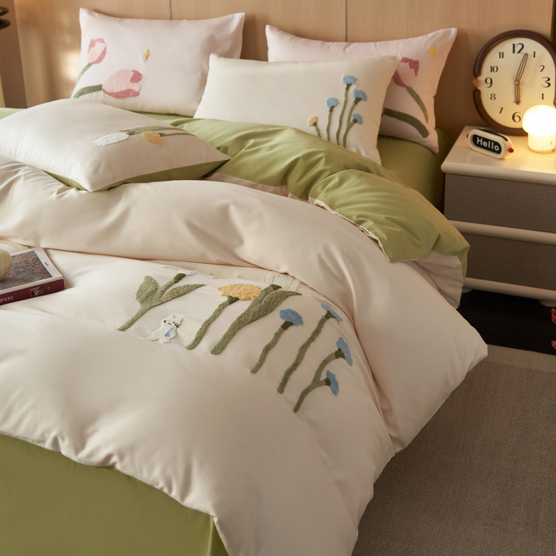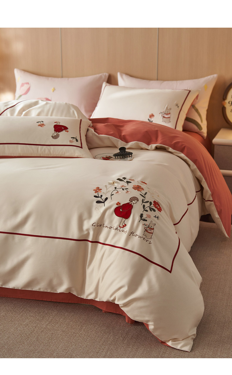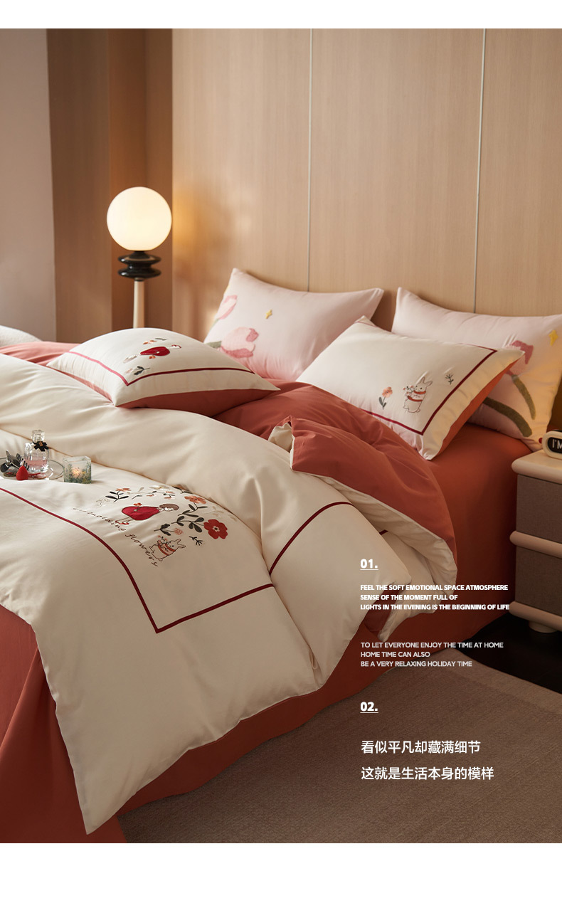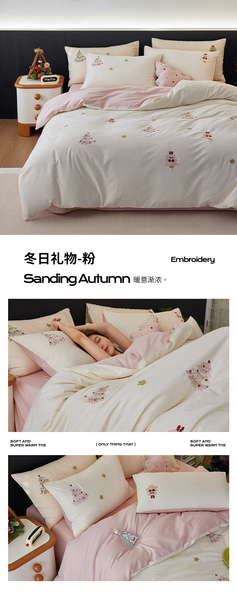가을과 겨울 100 면 샌딩 4 피스 세트 바람면 패딩 퀼트 커버 시트 귀여운 자수 침구