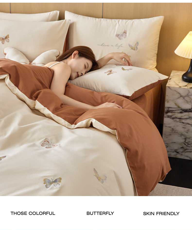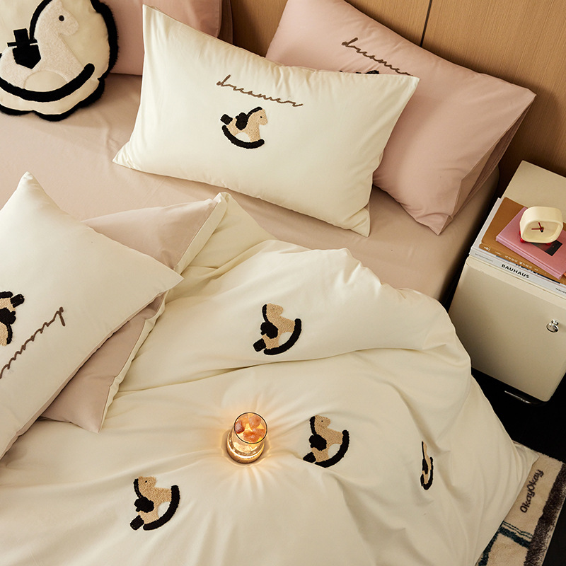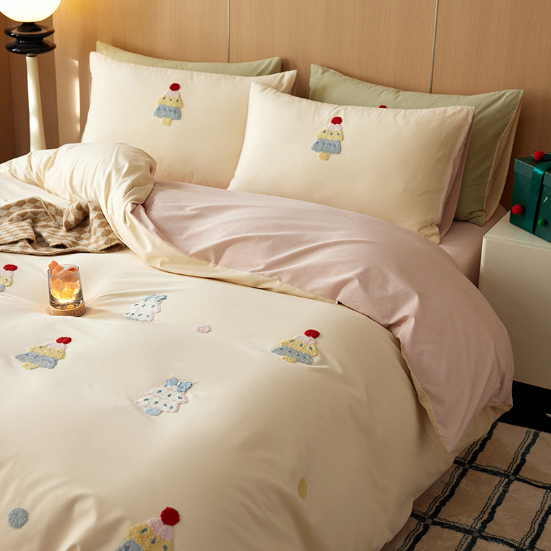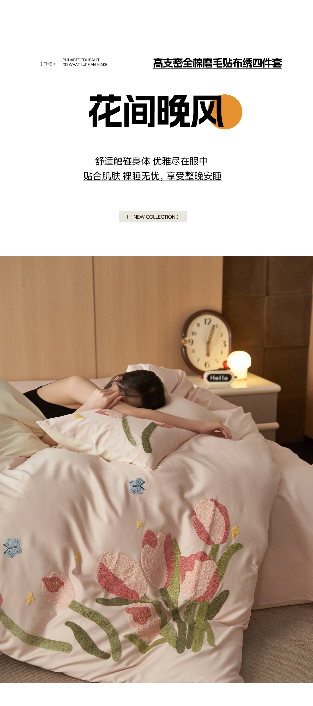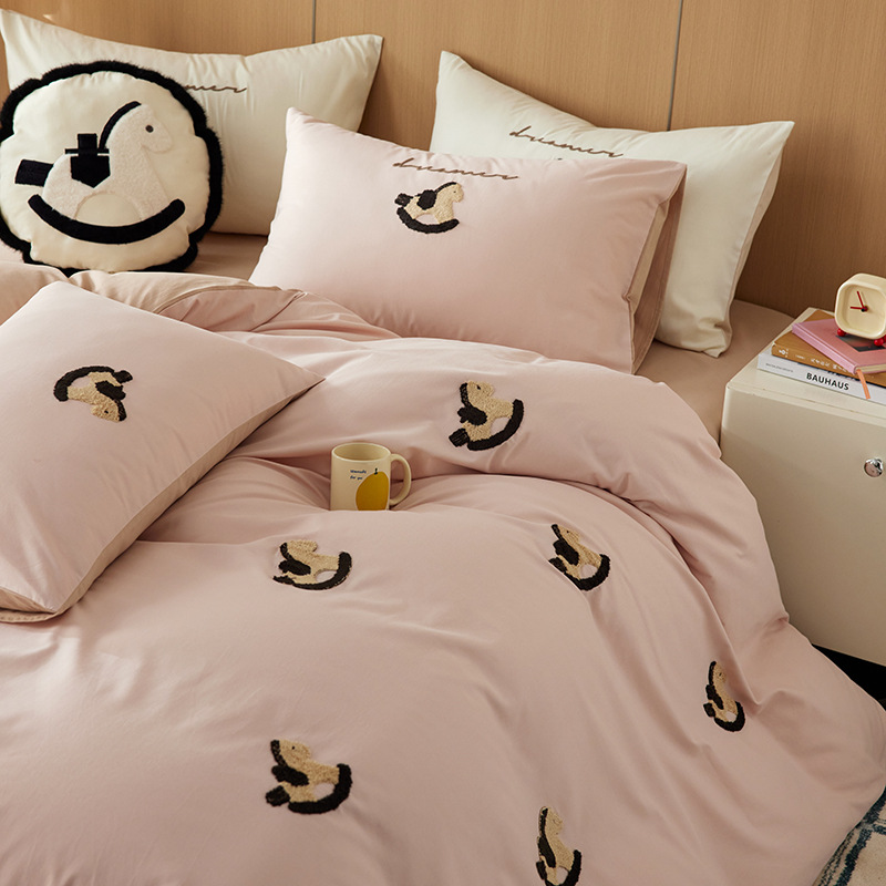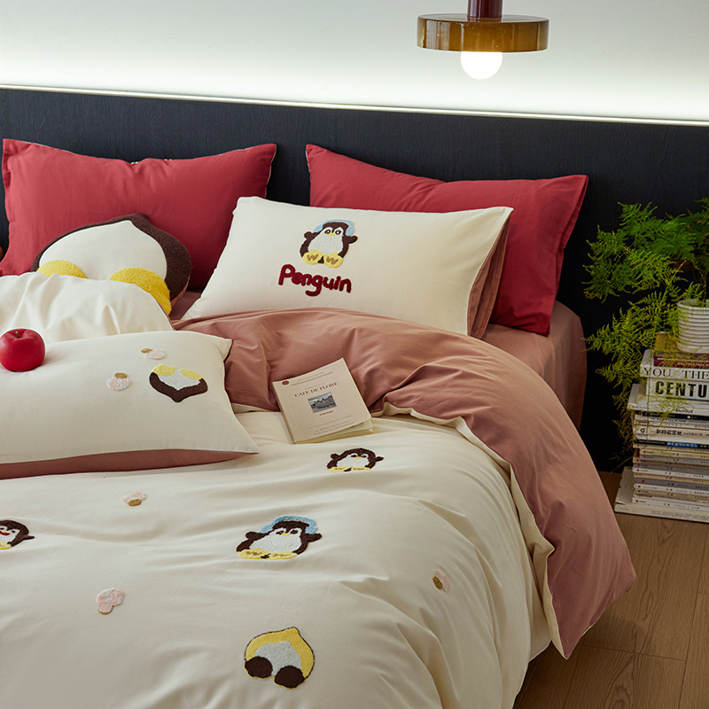 가을과 겨울 100 면 샌딩 4 피스 세트 바람면 패딩 퀼트 커버 시트 귀여운 자수 침구