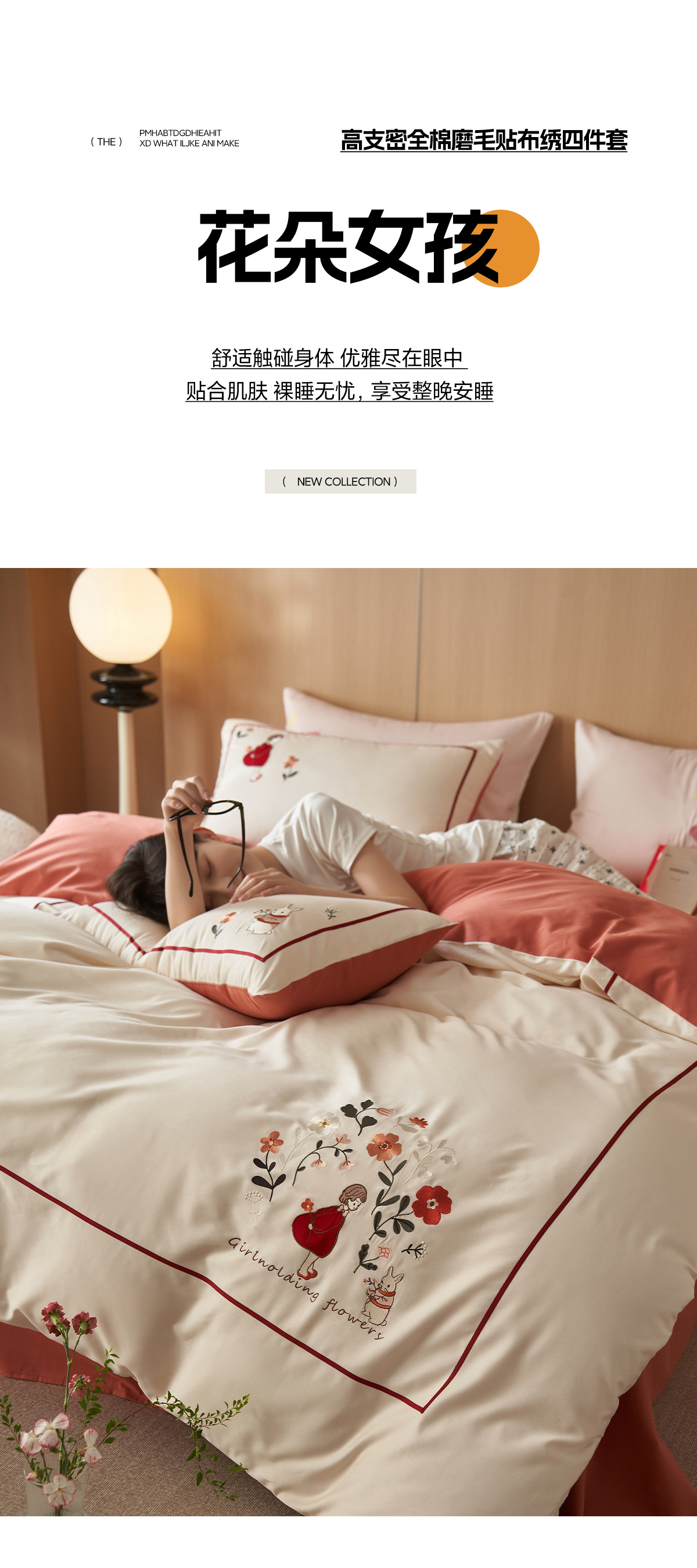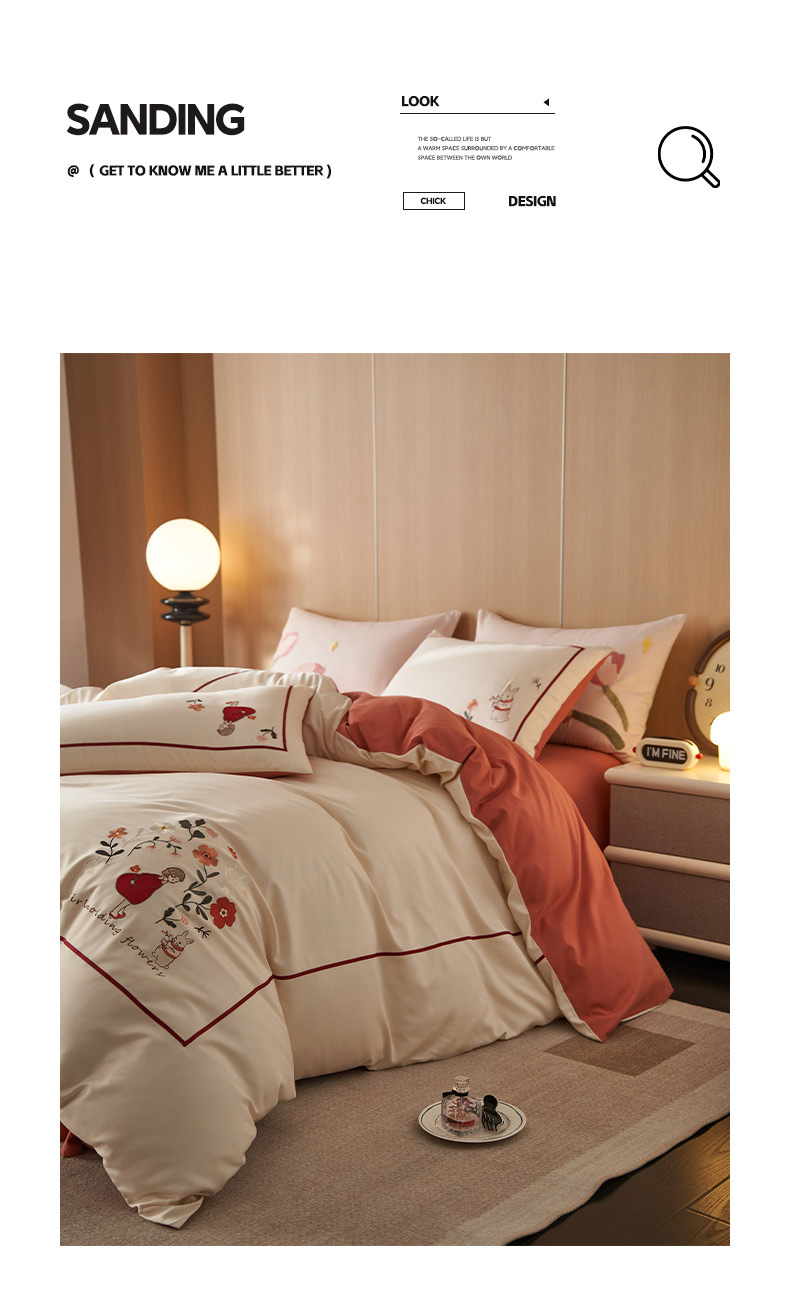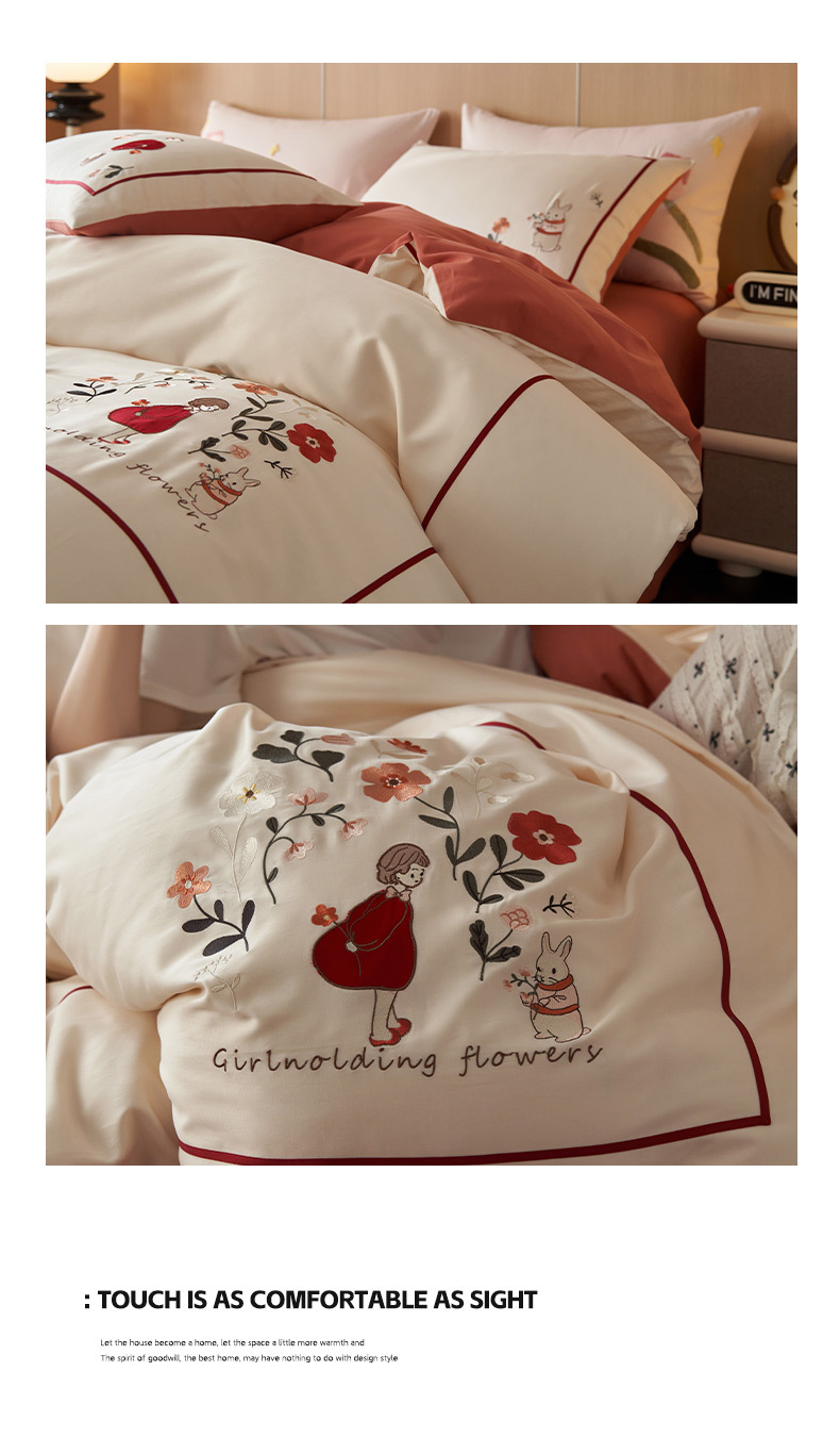가을과 겨울 100 면 샌딩 4 피스 세트 바람면 패딩 퀼트 커버 시트 귀여운 자수 침구스토어 가기