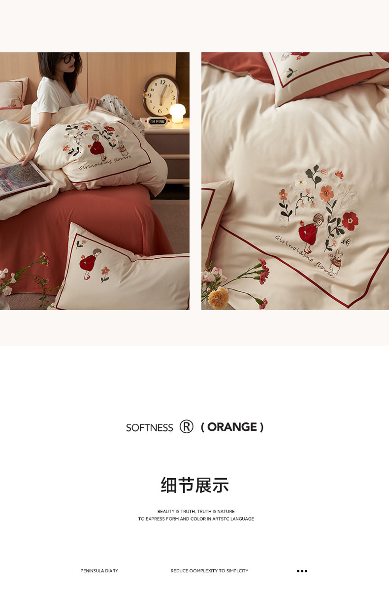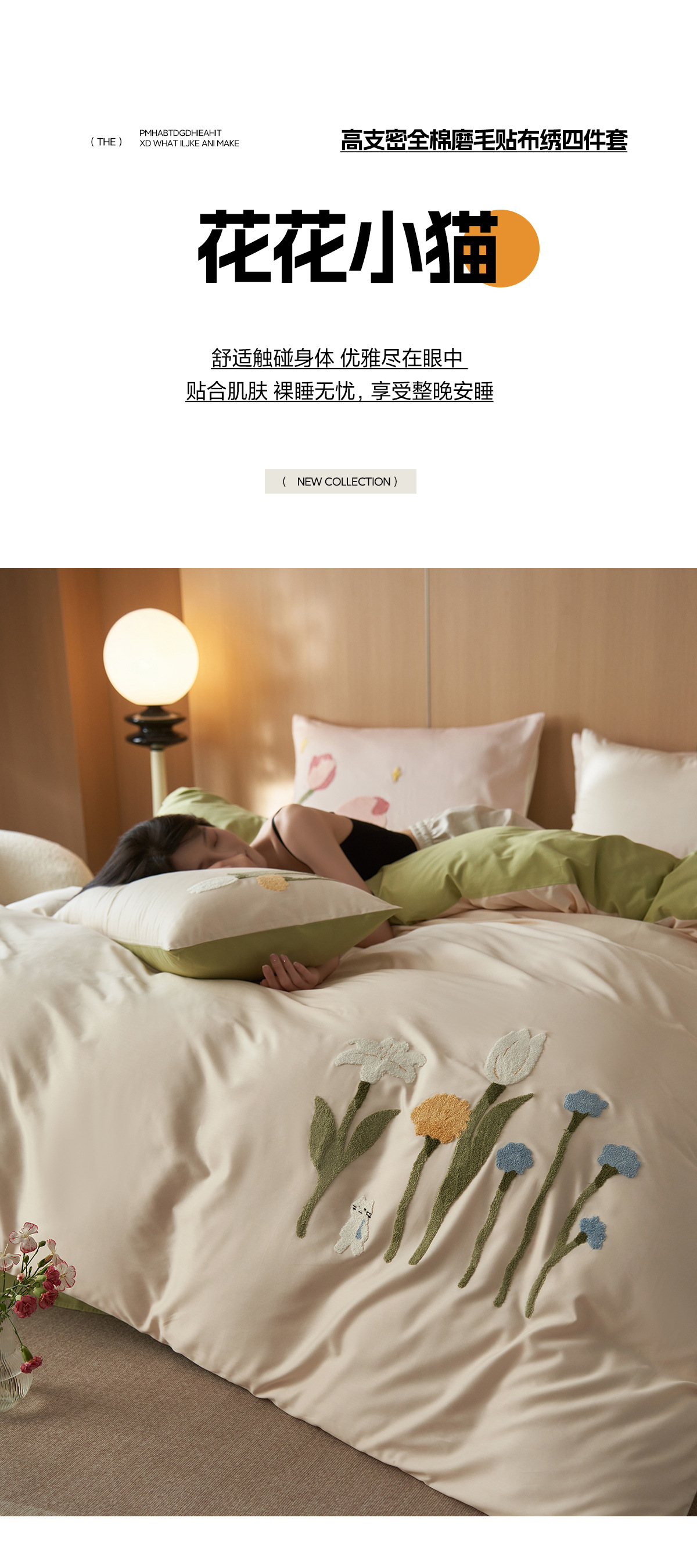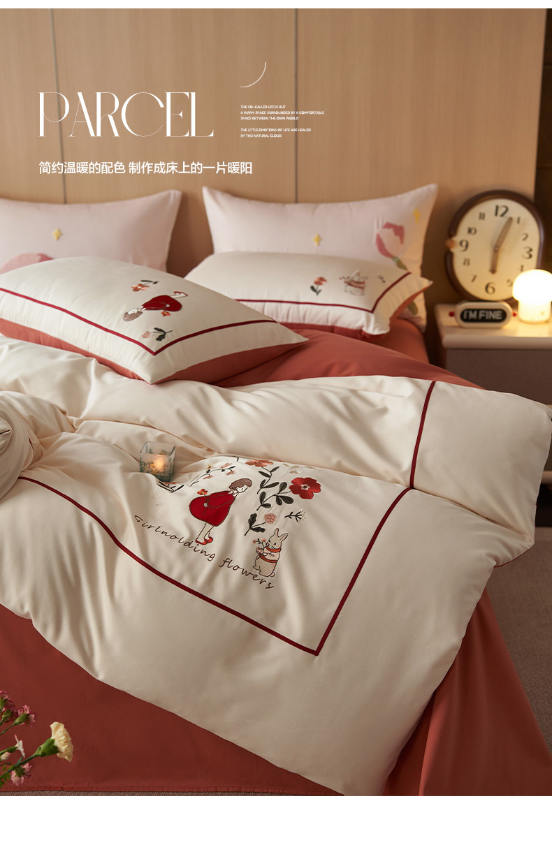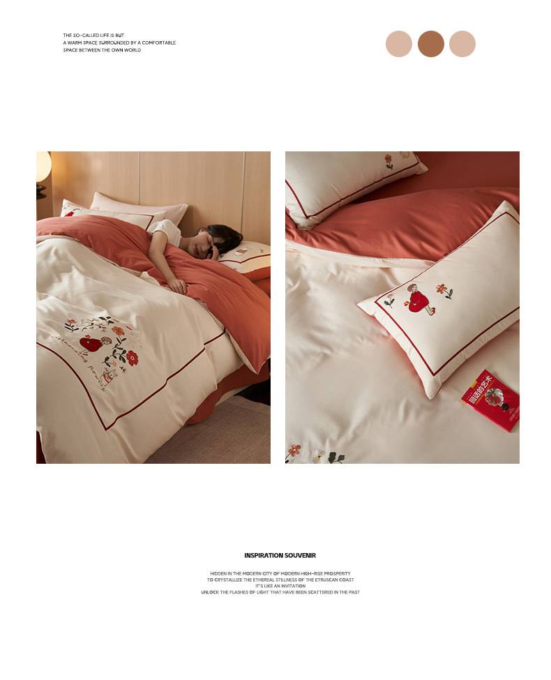 가을과 겨울 100 면 샌딩 4 피스 세트 바람면 패딩 퀼트 커버 시트 귀여운 자수 침구스토어 가기