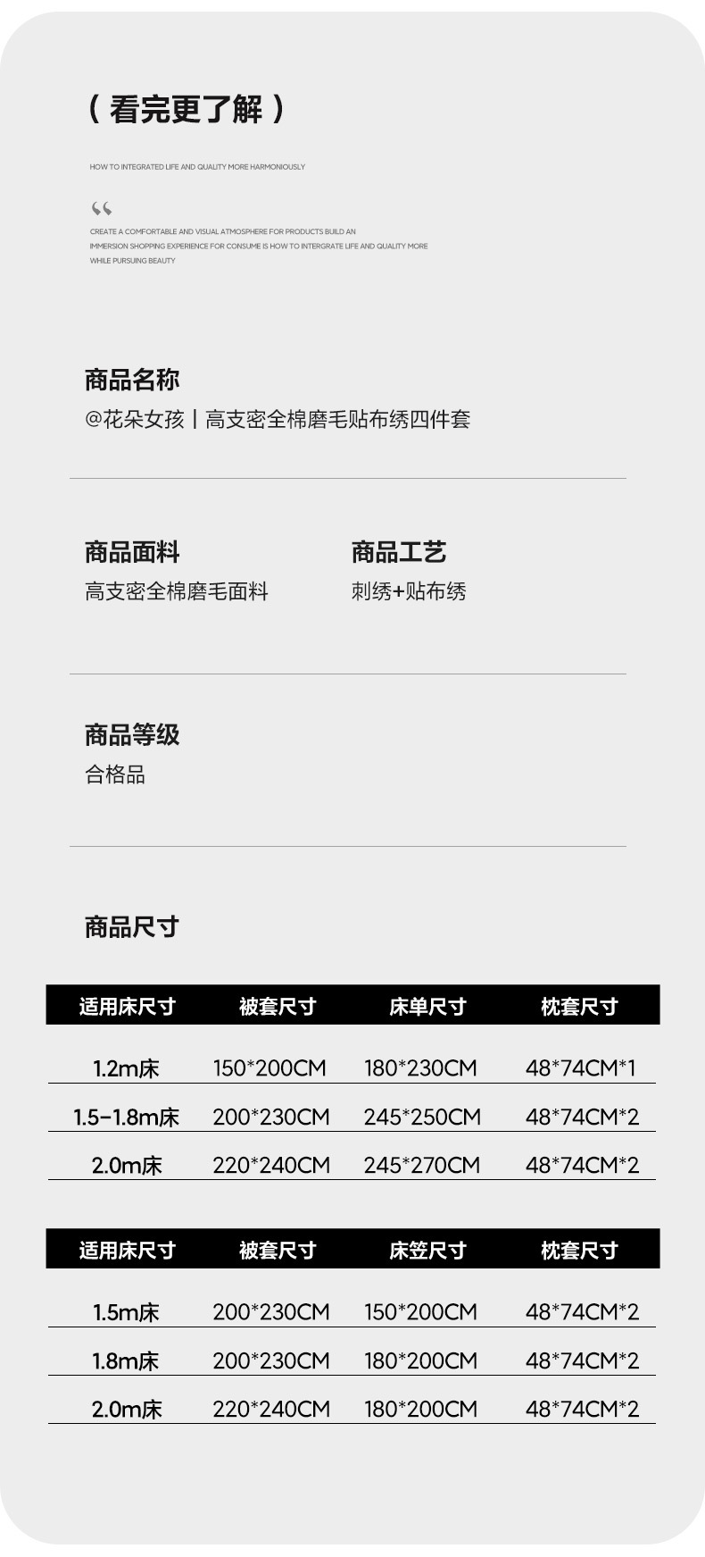 温馨提醒:由于家纺床上用品成本较高,一经水洗不管什么原因,不予退换,收到货后请先检查仔细再使用!介意的亲们一定要慎重考虑后再拍哦!!!深色床品第一次洗涤时会有少许浮色,属于正常现象。经过一两次洗涤后,此情况会消,可放心使用。床品为手工剪裁会存在正负5cm的误差,属于正常情况,非质量问题。