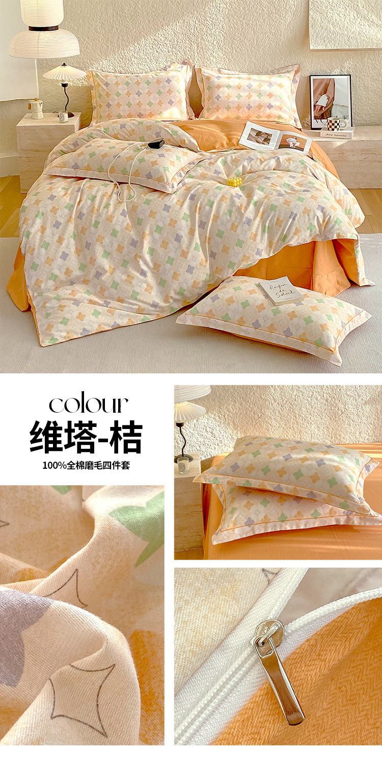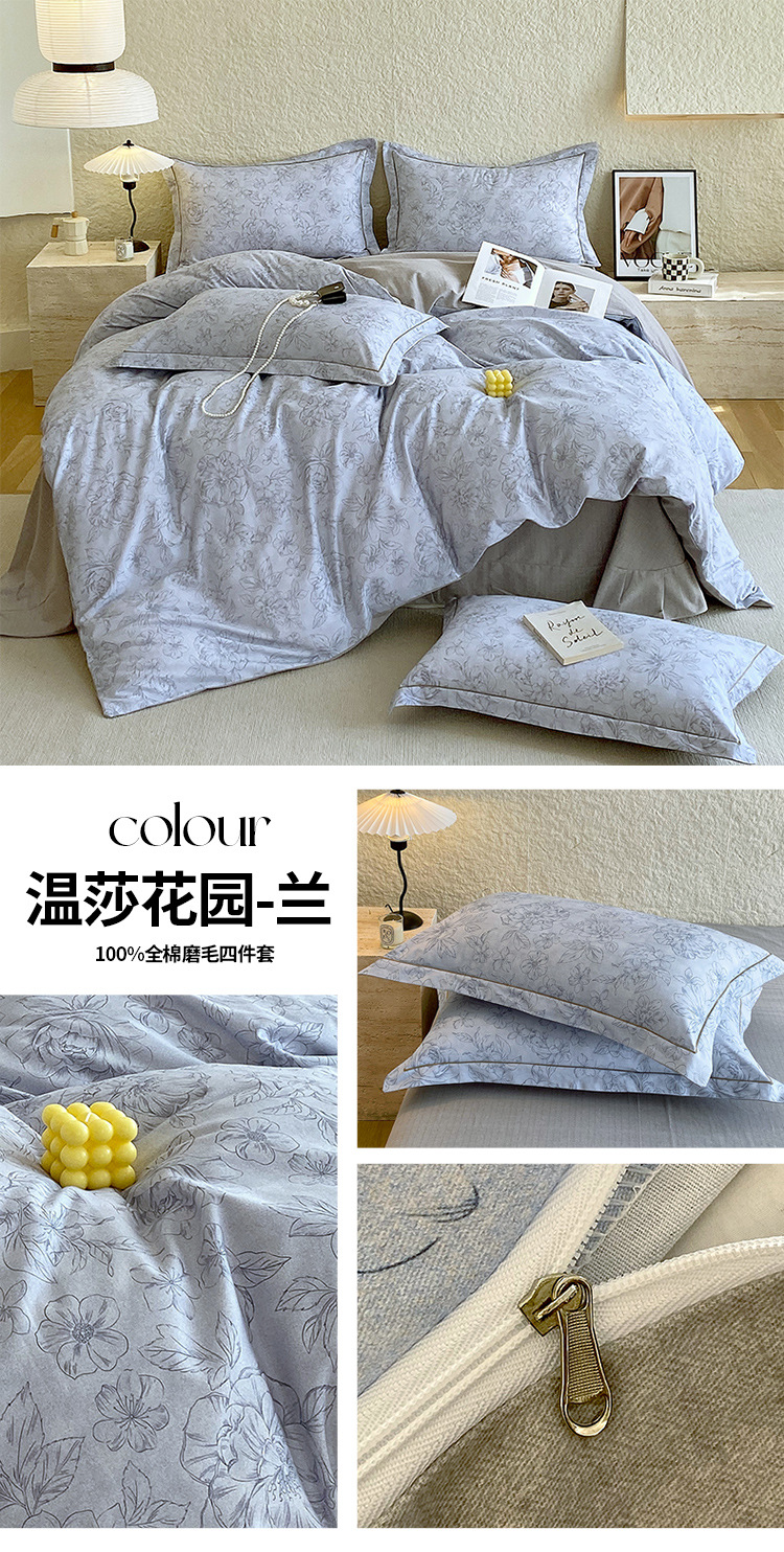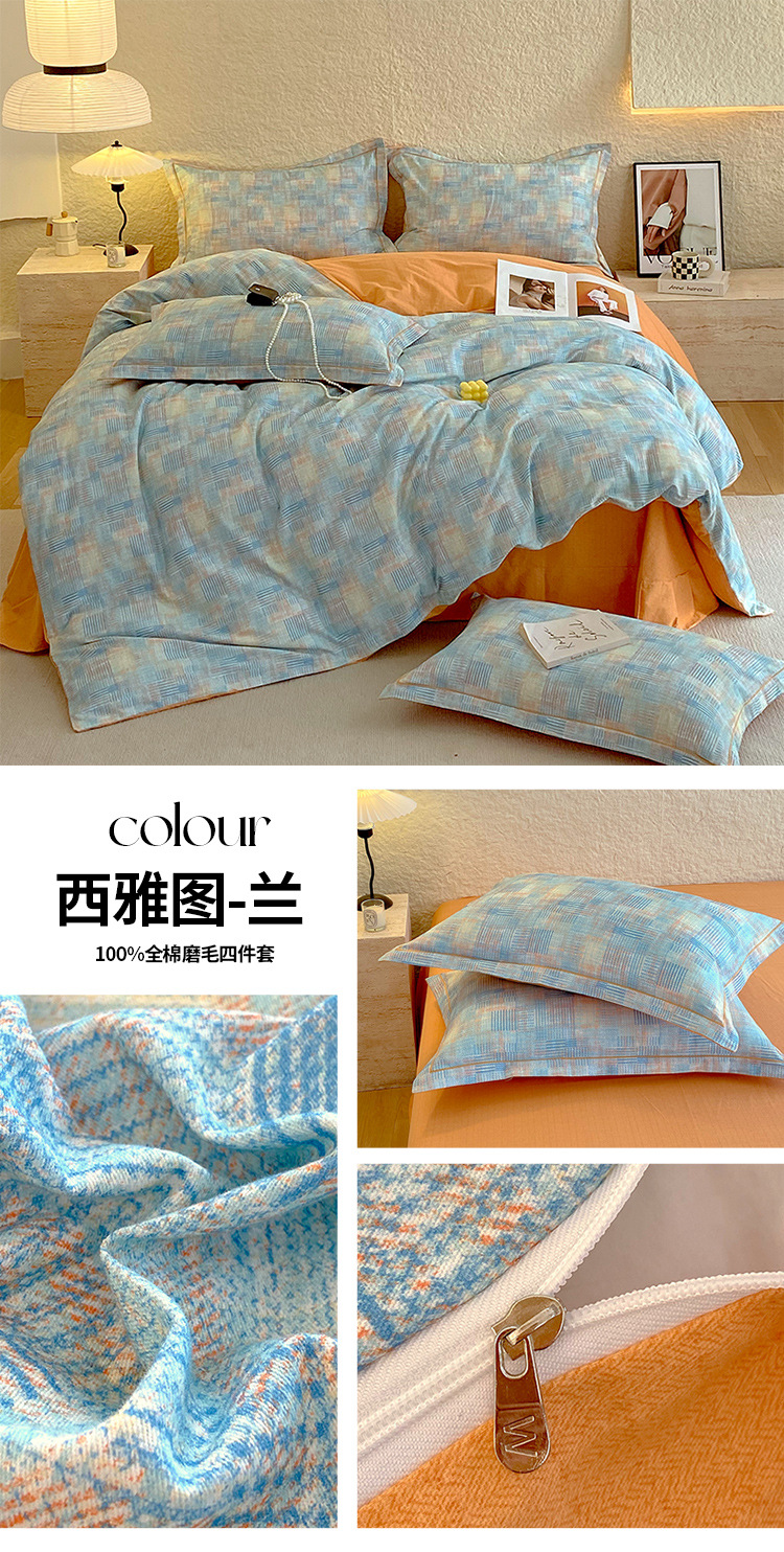 • 1.5m 침대 시트 [이불 커버 200*230cm + 침대 시트 245*250cm + 베개 커버 2개] 4종 세트
