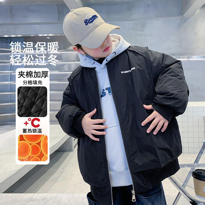 소년 퀼트 재킷 2024 년 가을과 겨울 새로운 큰 아이들 두꺼운 겨울 소년 잘 생긴 아이들의 서양식 야구 세트