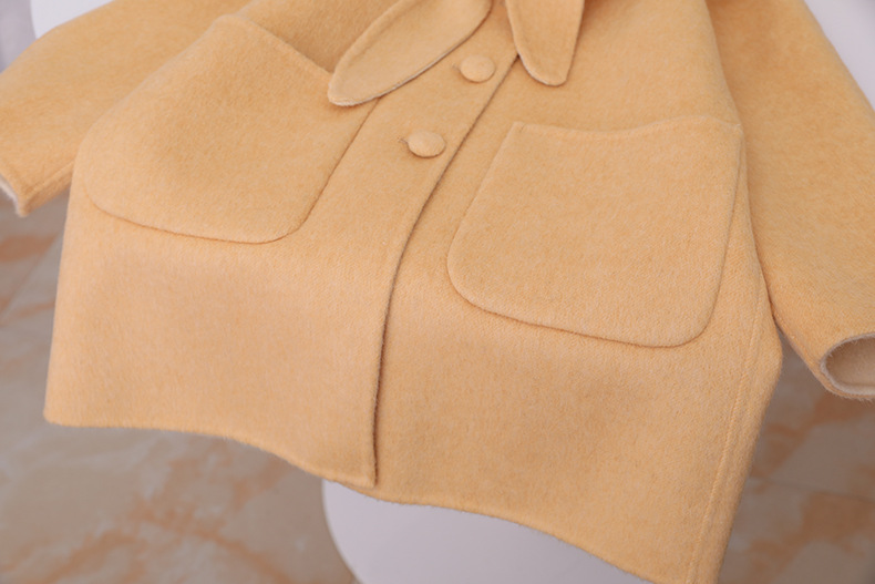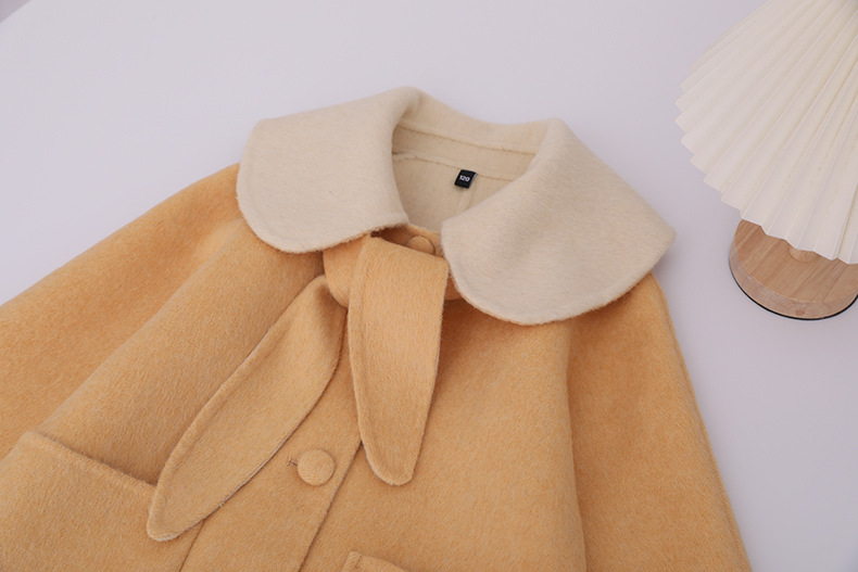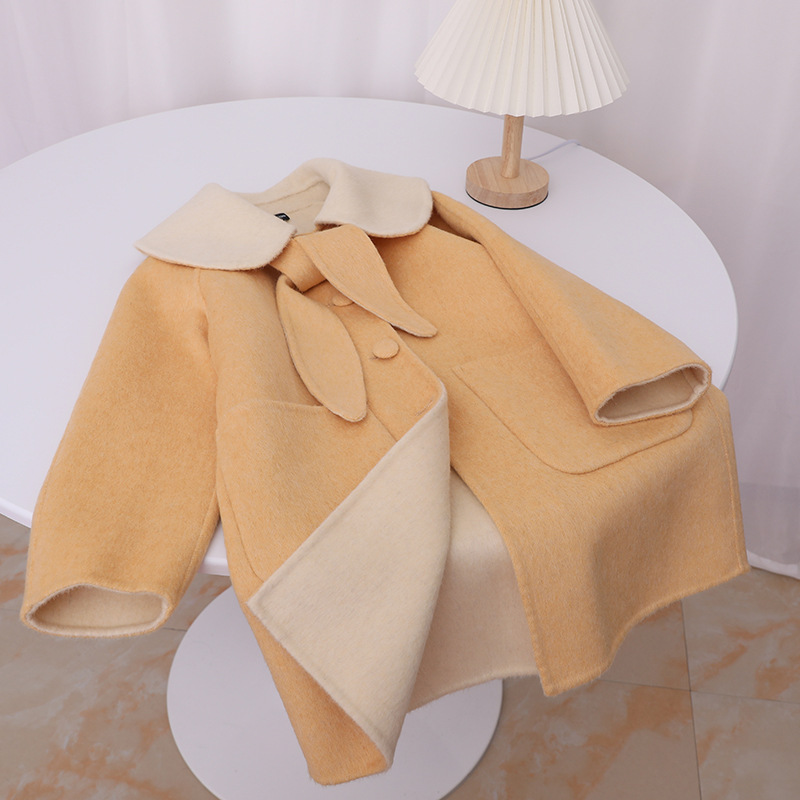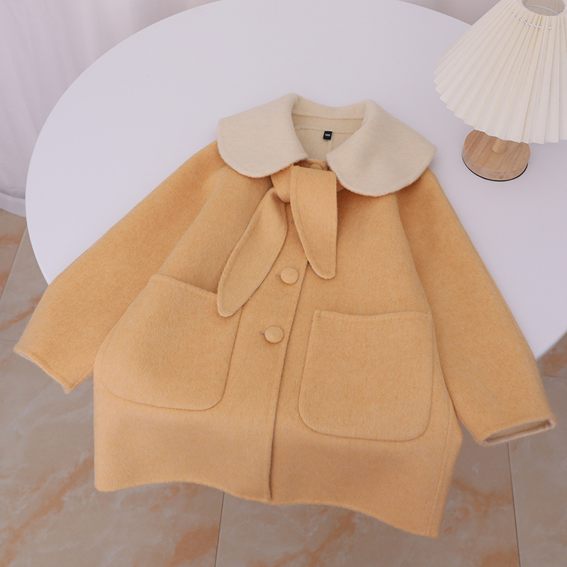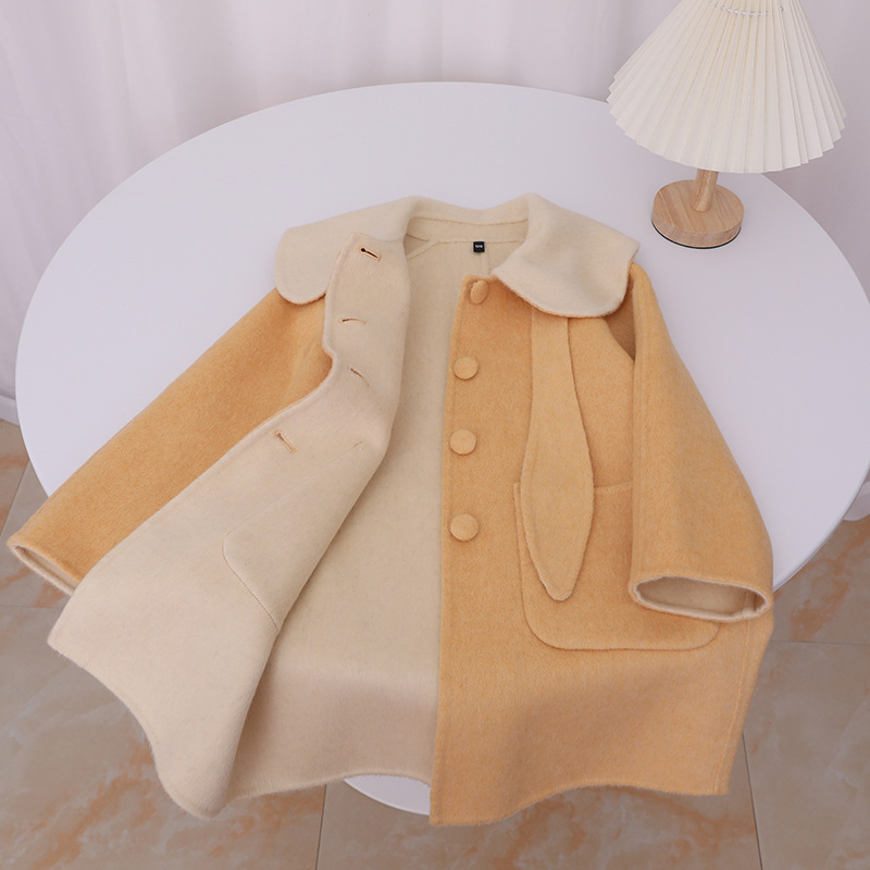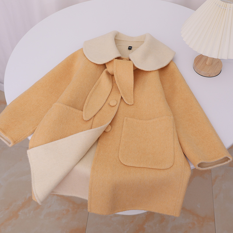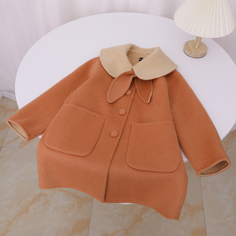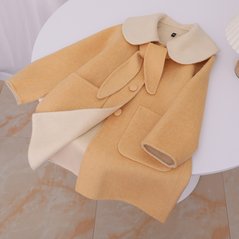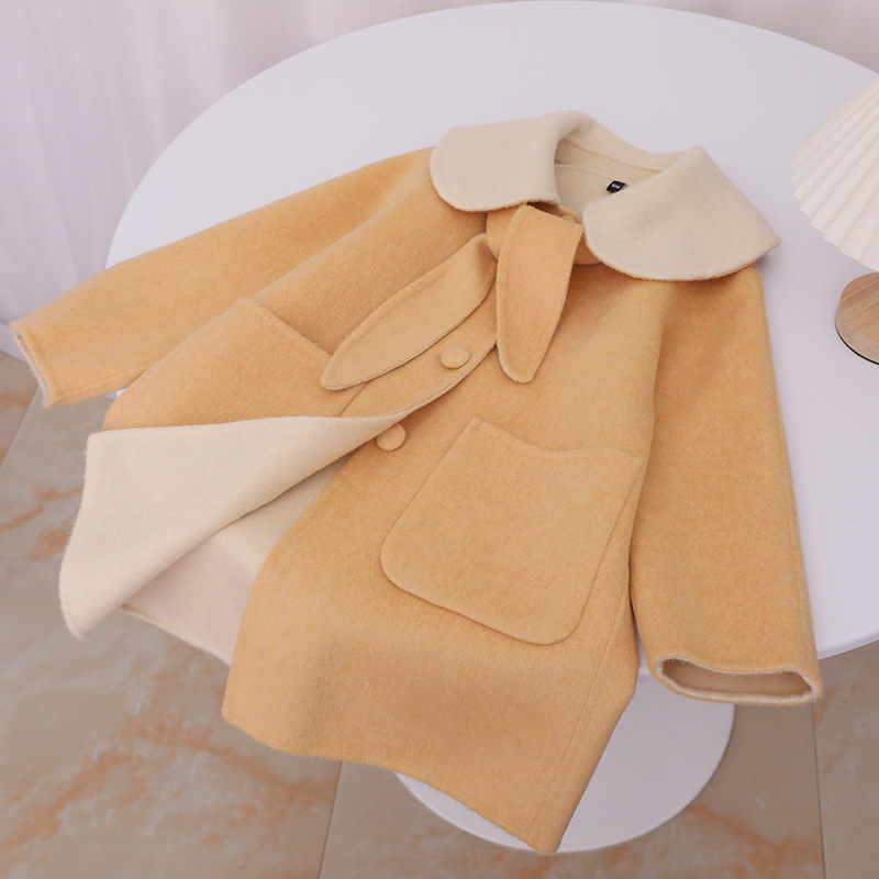 한국 스타일 2025 가을 겨울 신상 여아용 귀여운 토끼귀 라펠 양면 캐시미어 울 코트