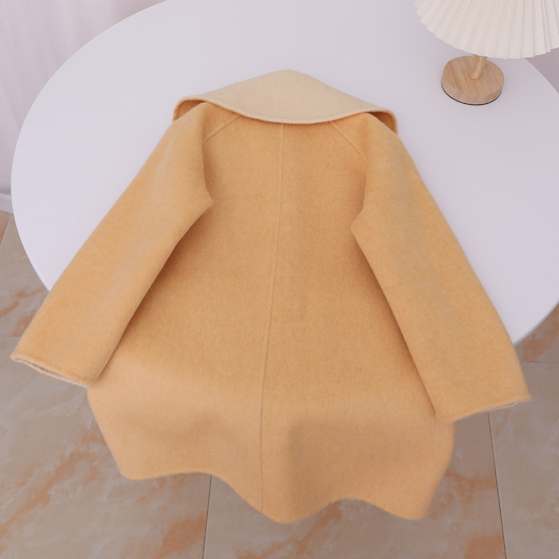 한국 스타일 2025 가을 겨울 신상 여아용 귀여운 토끼귀 라펠 양면 캐시미어 울 코트스토어 가기