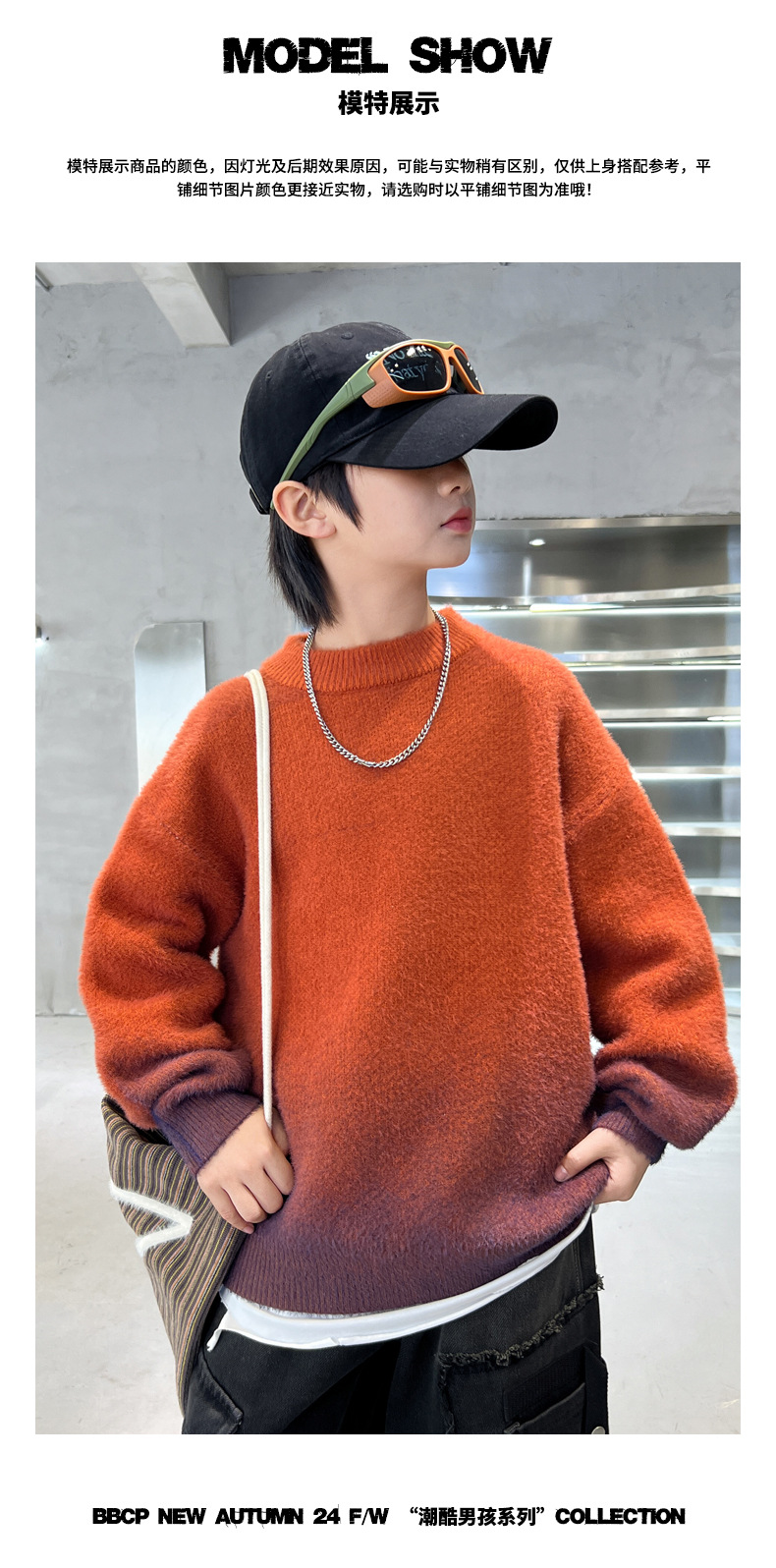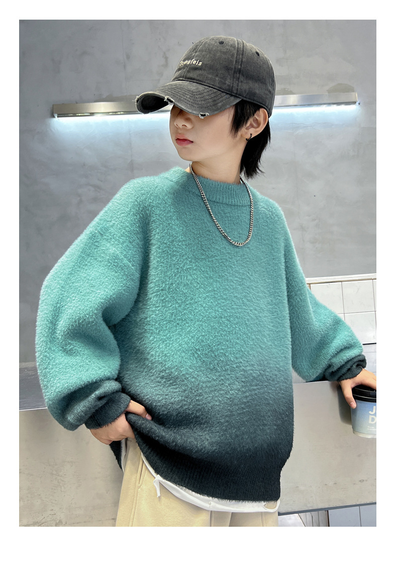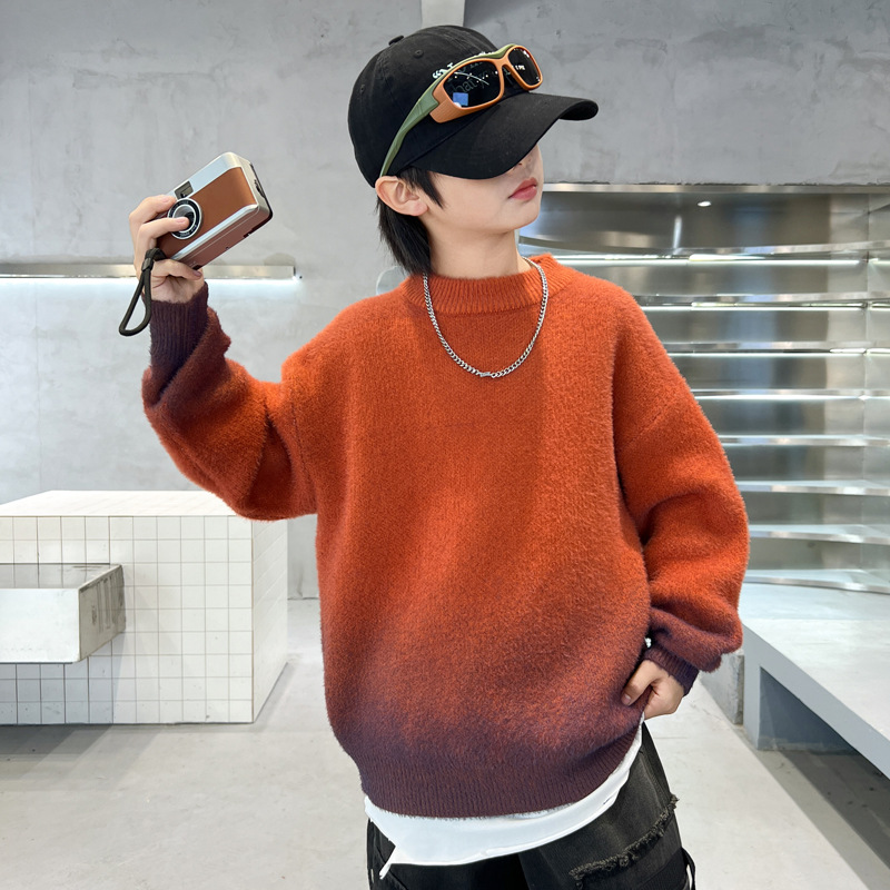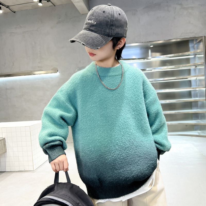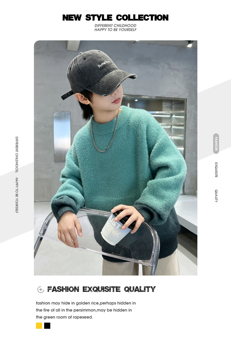 남학생 밍크 양털 스웨터 가을과 겨울 2024 새로운 Cuhk 어린이 니트웨어 두꺼운 겨울베이스 셔츠 트렌디