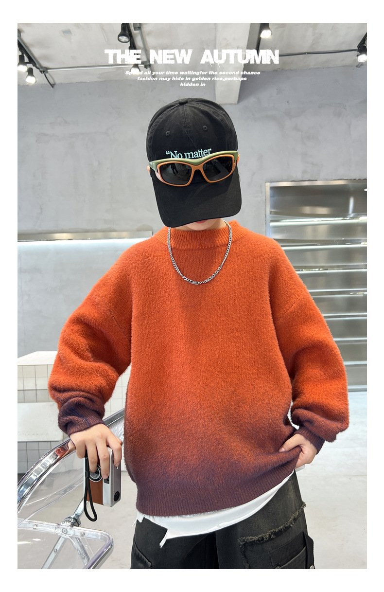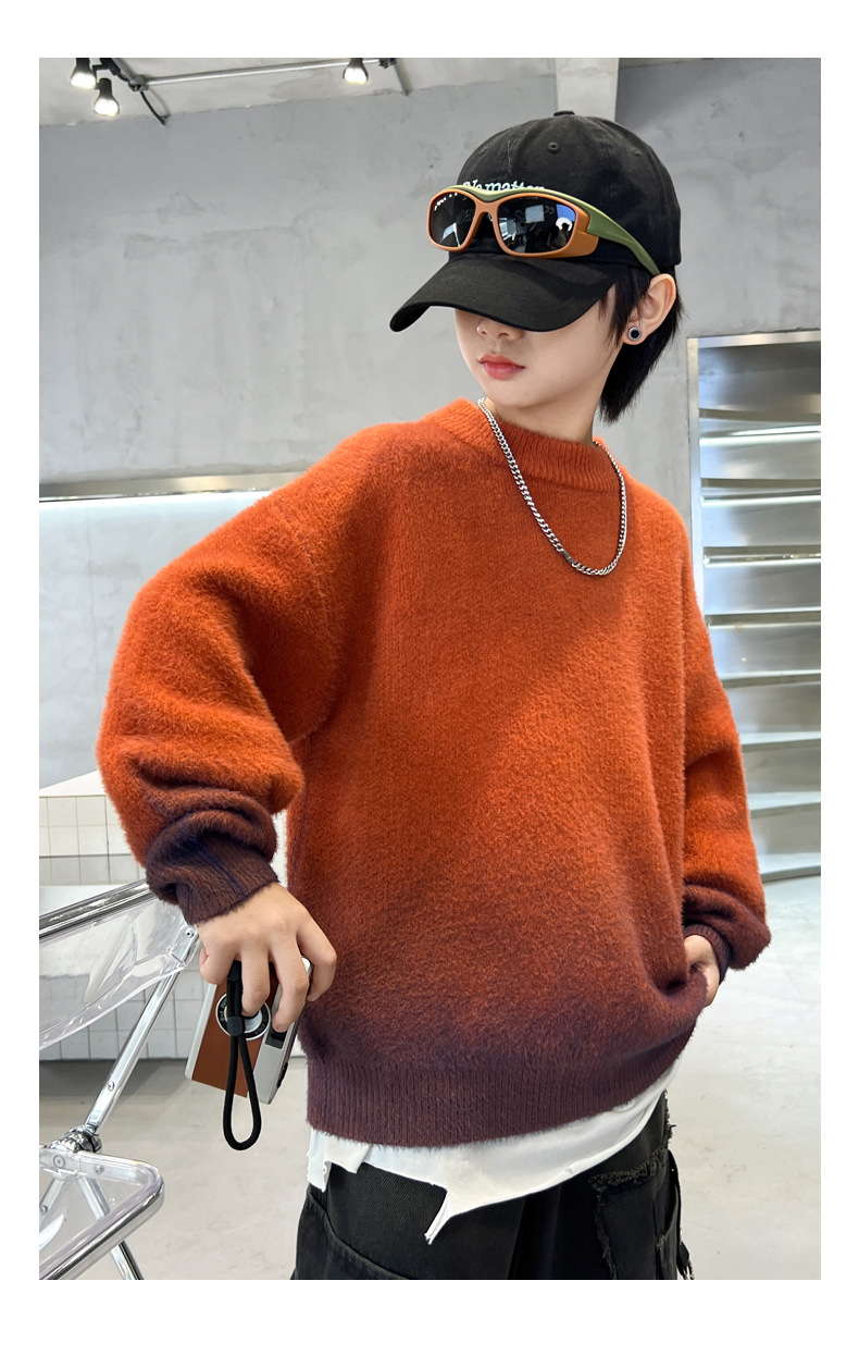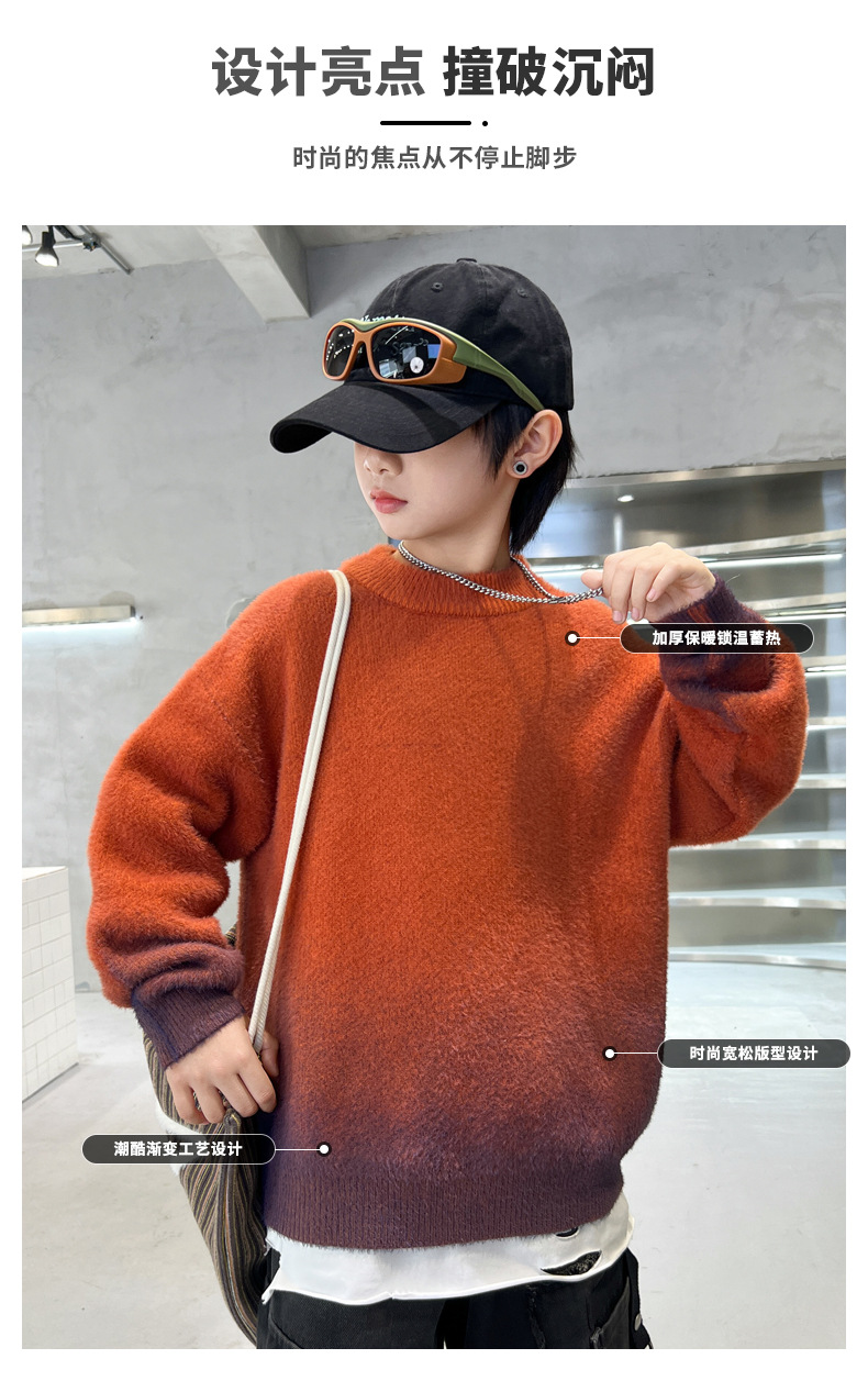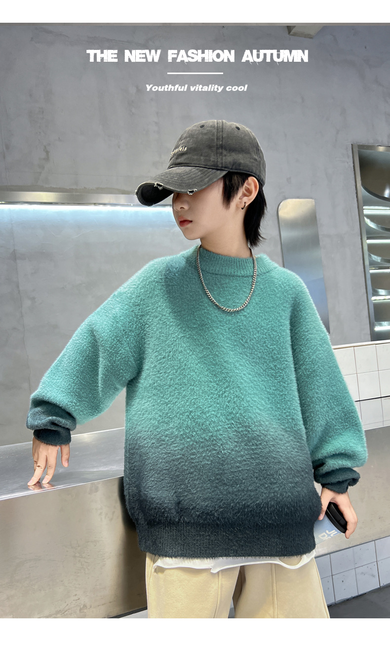 남학생 밍크 양털 스웨터 가을과 겨울 2024 새로운 Cuhk 어린이 니트웨어 두꺼운 겨울베이스 셔츠 트렌디