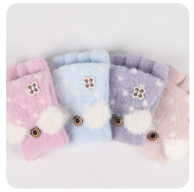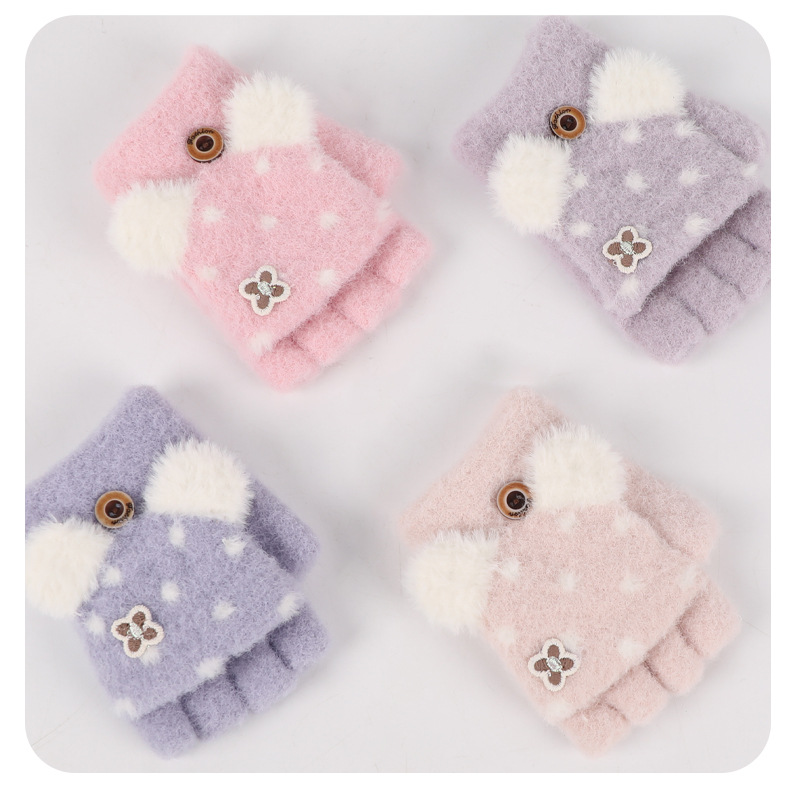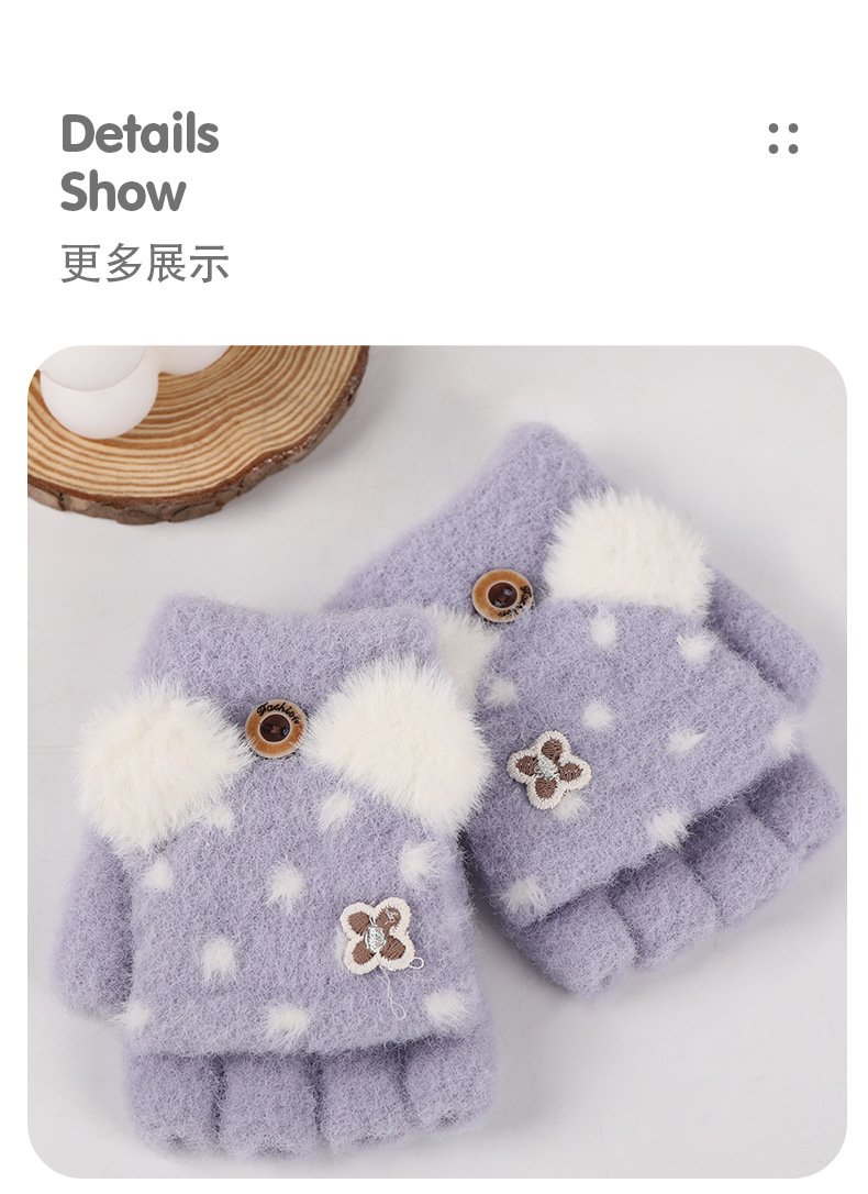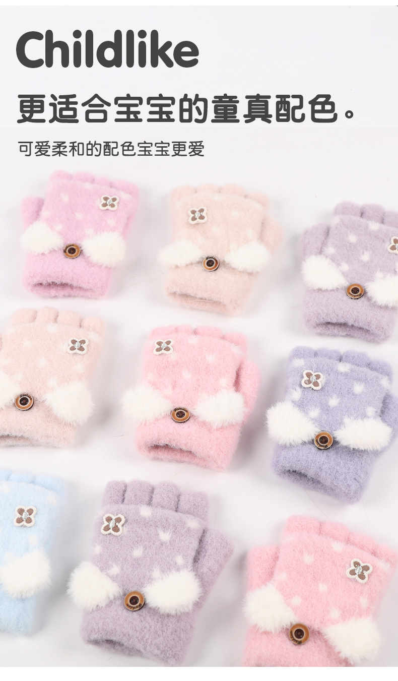 가을 겨울 어린이 반 손가락 장갑 기모 아기 소년 소녀 따뜻한 귀여운 구름 플립 장갑