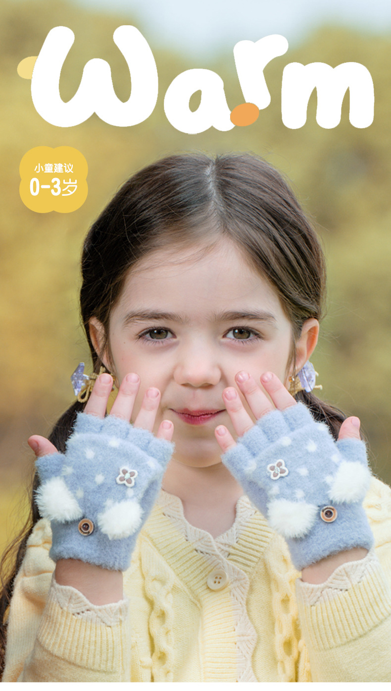 가을 겨울 어린이 반 손가락 장갑 기모 아기 소년 소녀 따뜻한 귀여운 구름 플립 장갑스토어 가기