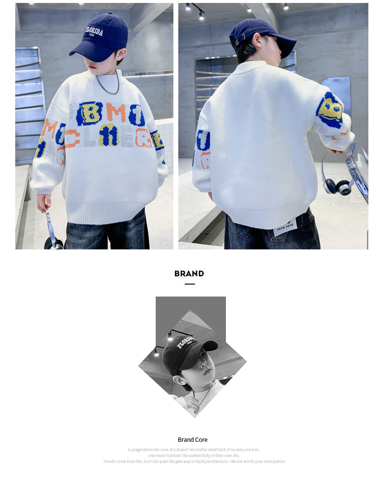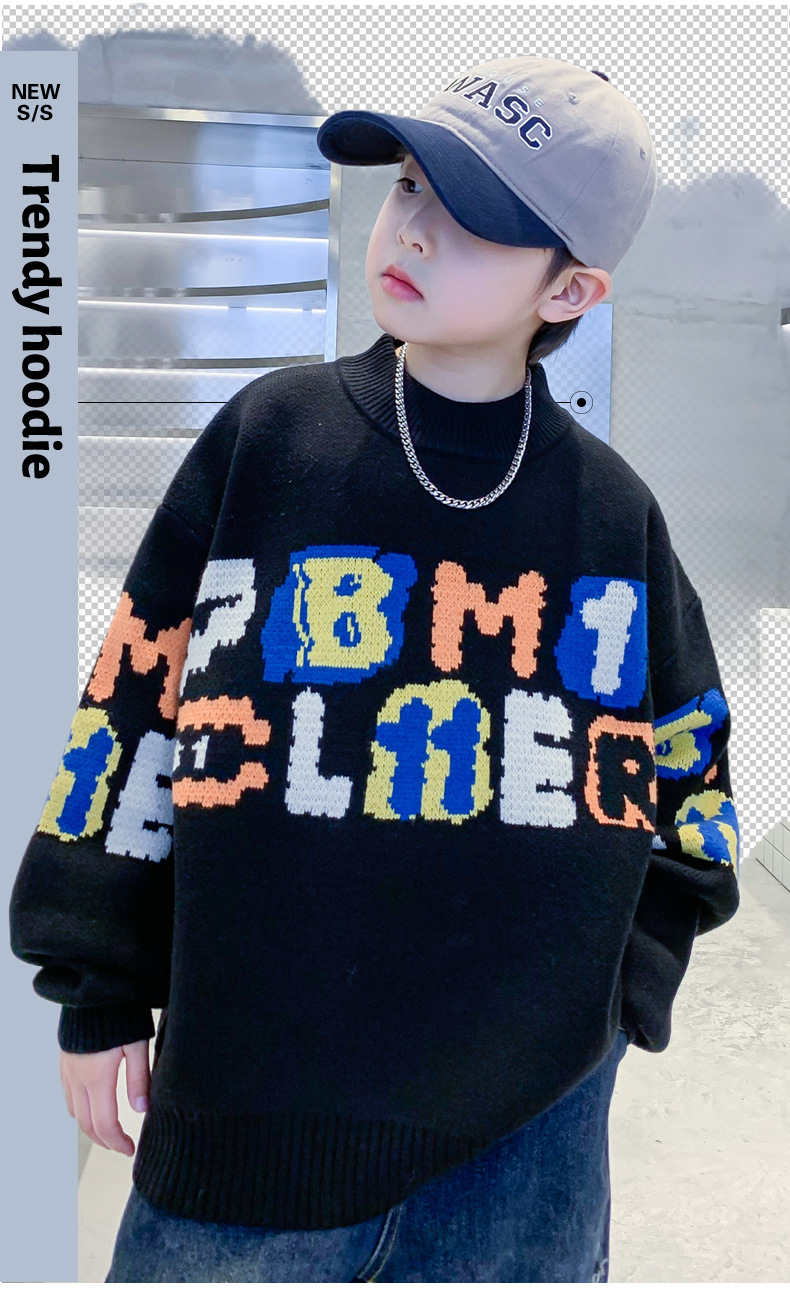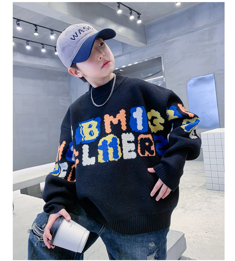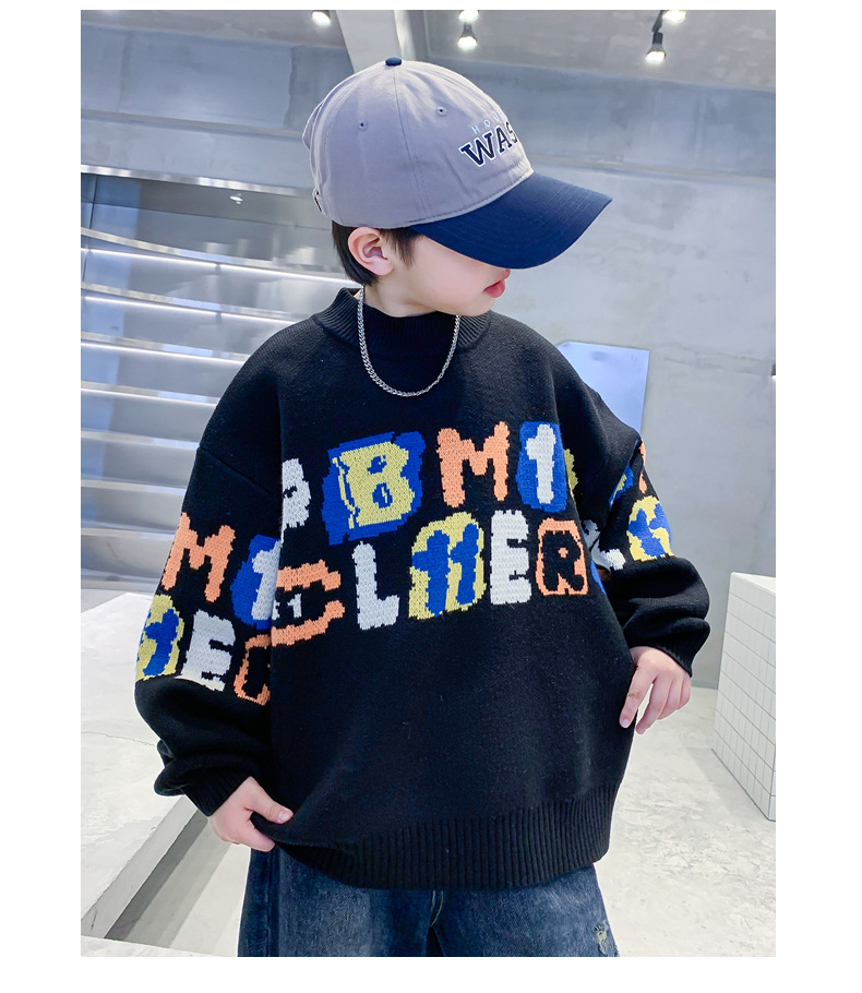 남학생의 가을과 겨울 두꺼운 스웨터 2024 미중 및 큰 소년을위한 새로운 어린이 겨울 스웨터스토어 가기