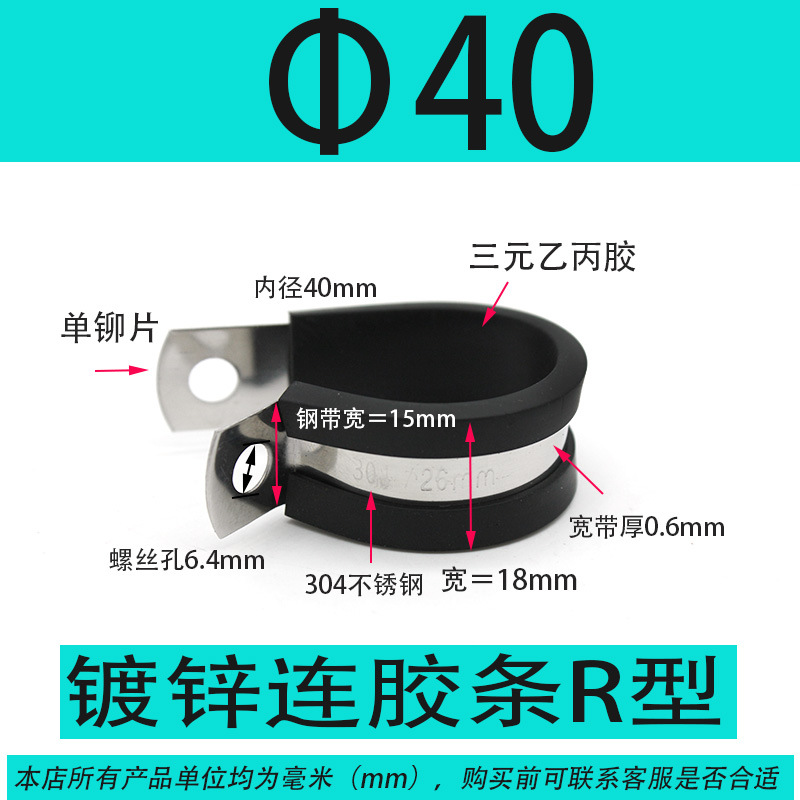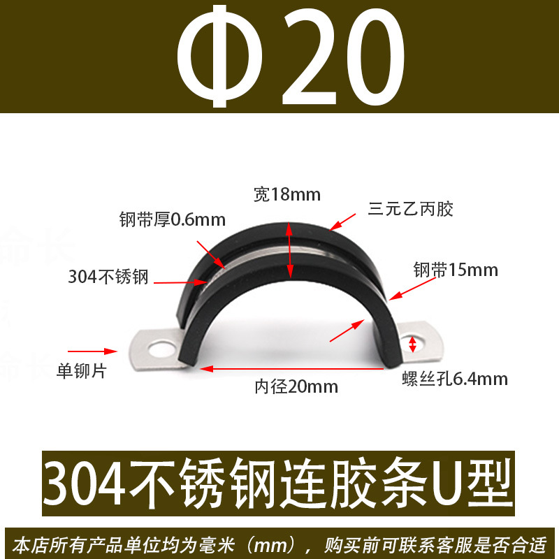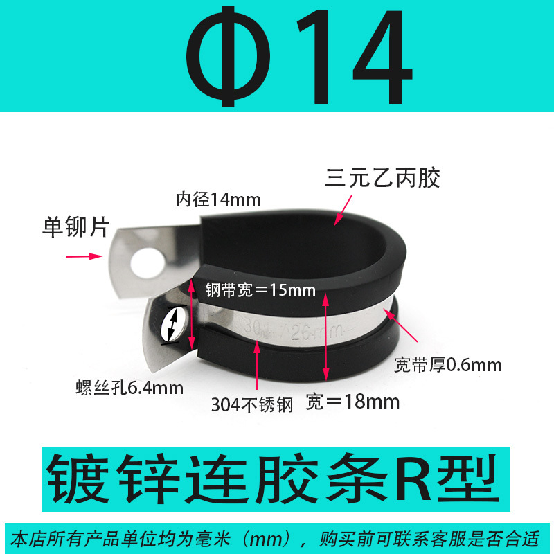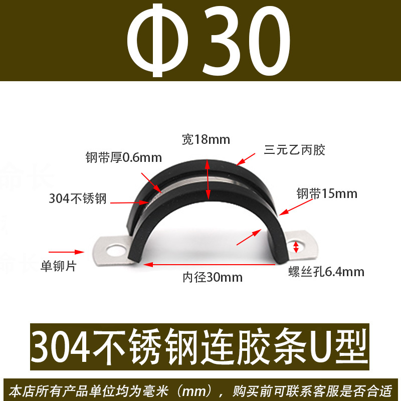 아연 도금/304 R 형 U 형 고무 스트립 호스 클램프 R 형 고무 스트립 충격 흡수 후프 와이어 후프 M6810스토어 가기