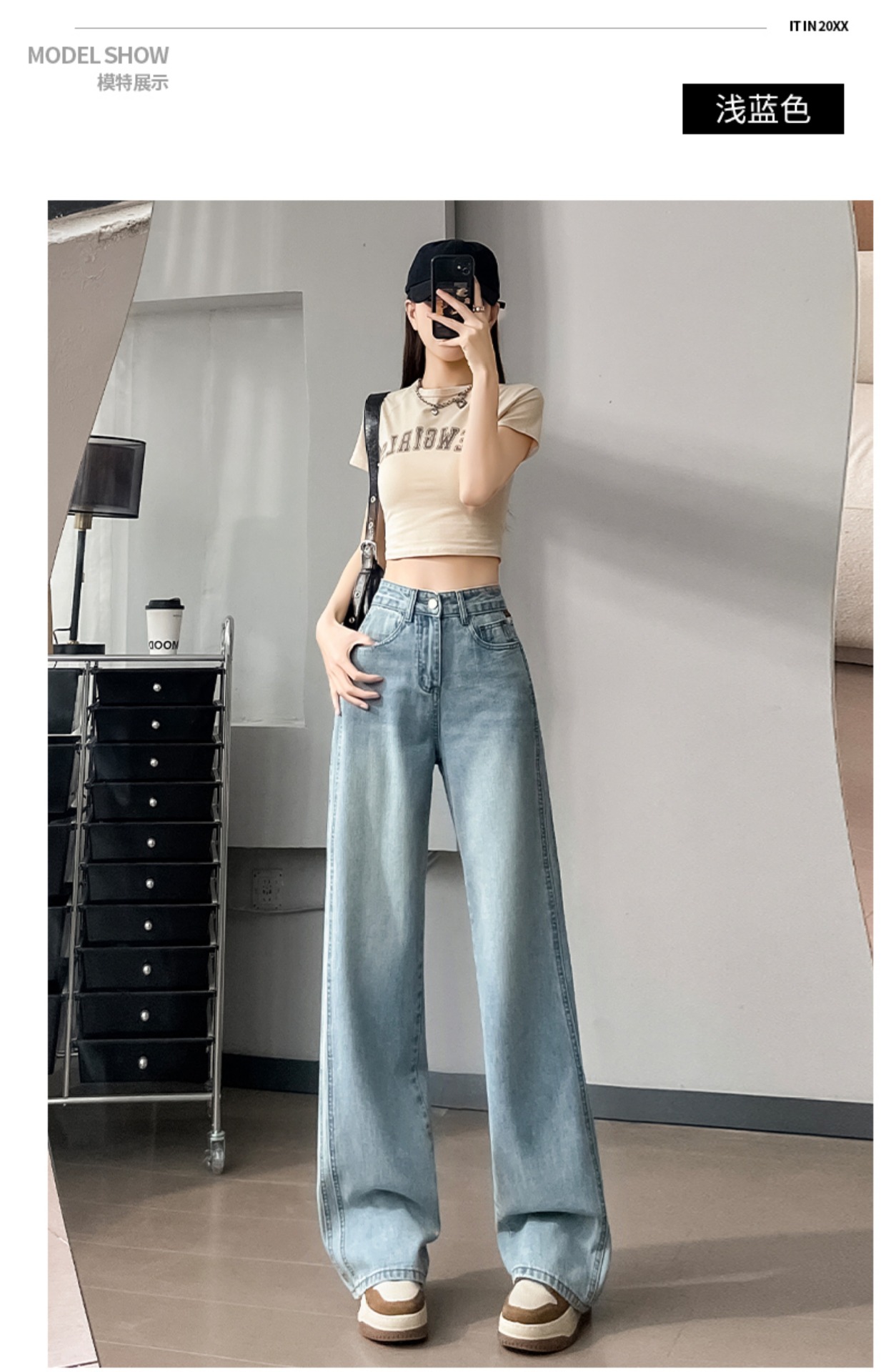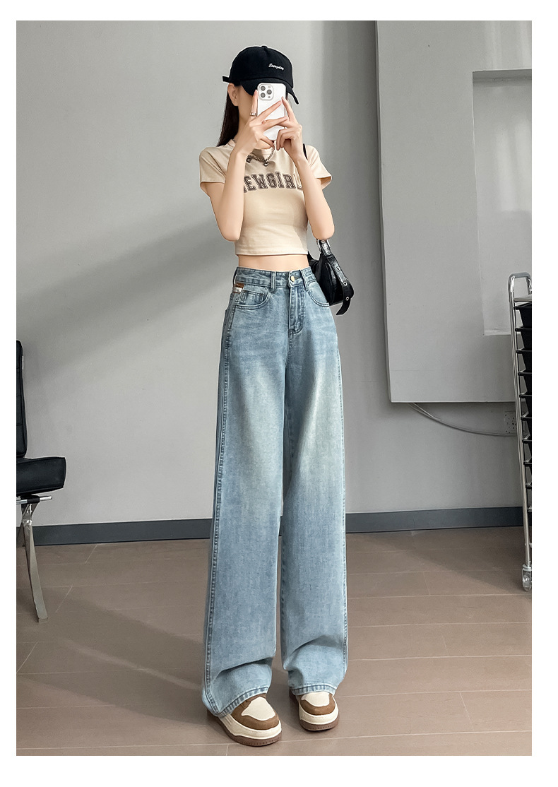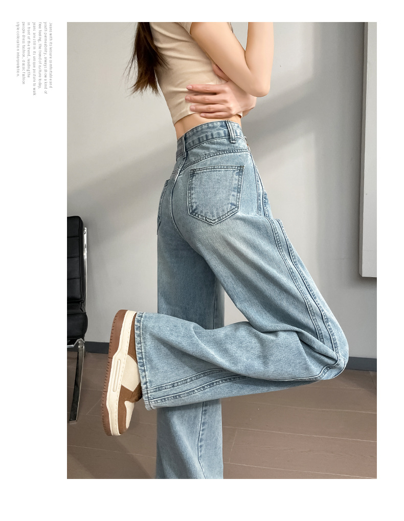 넓은 다리 청바지 여성의 가을과 겨울 2024 유행 올매치 새로운 봄과 가을 느슨한 작은 직선 바지스토어 가기