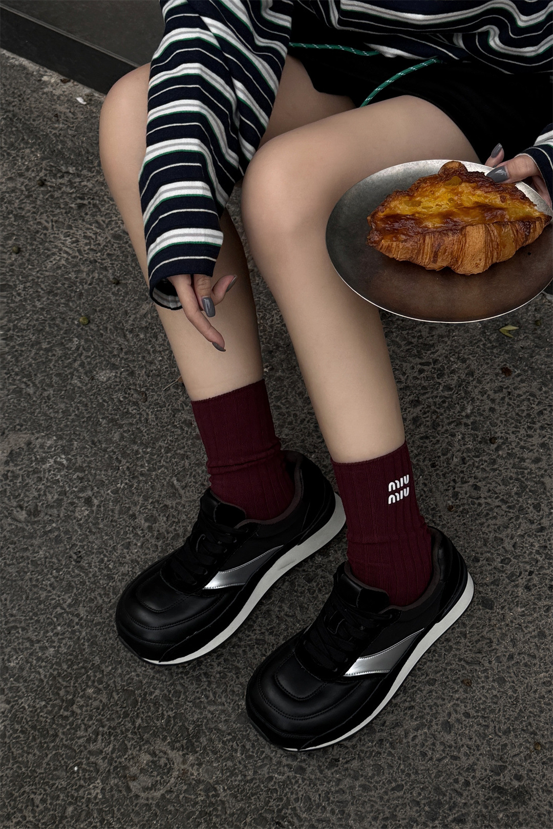 SGIRL TWTW 2025 봄 새로운 작은 높이 두꺼운 바닥 둥근 발가락 빵 신발 캐주얼 컬러 매칭 운동화스토어 가기
