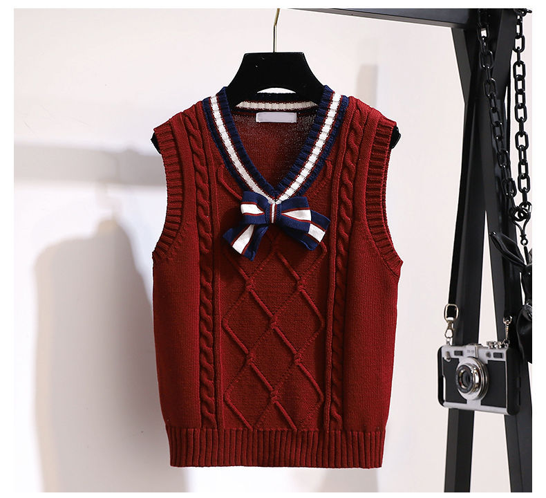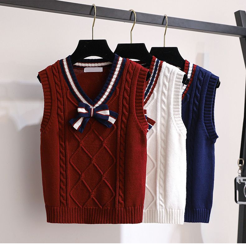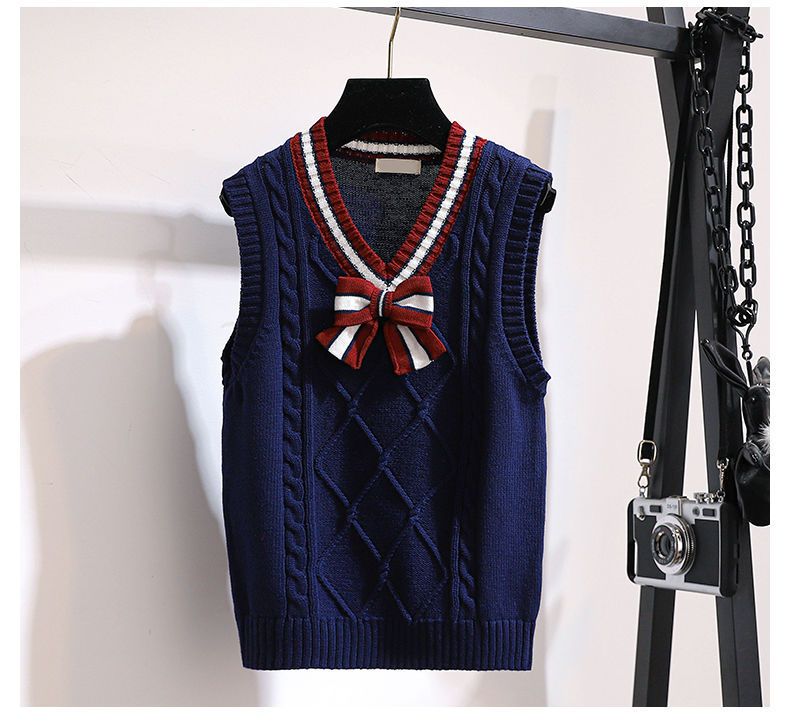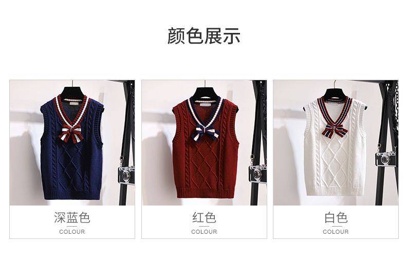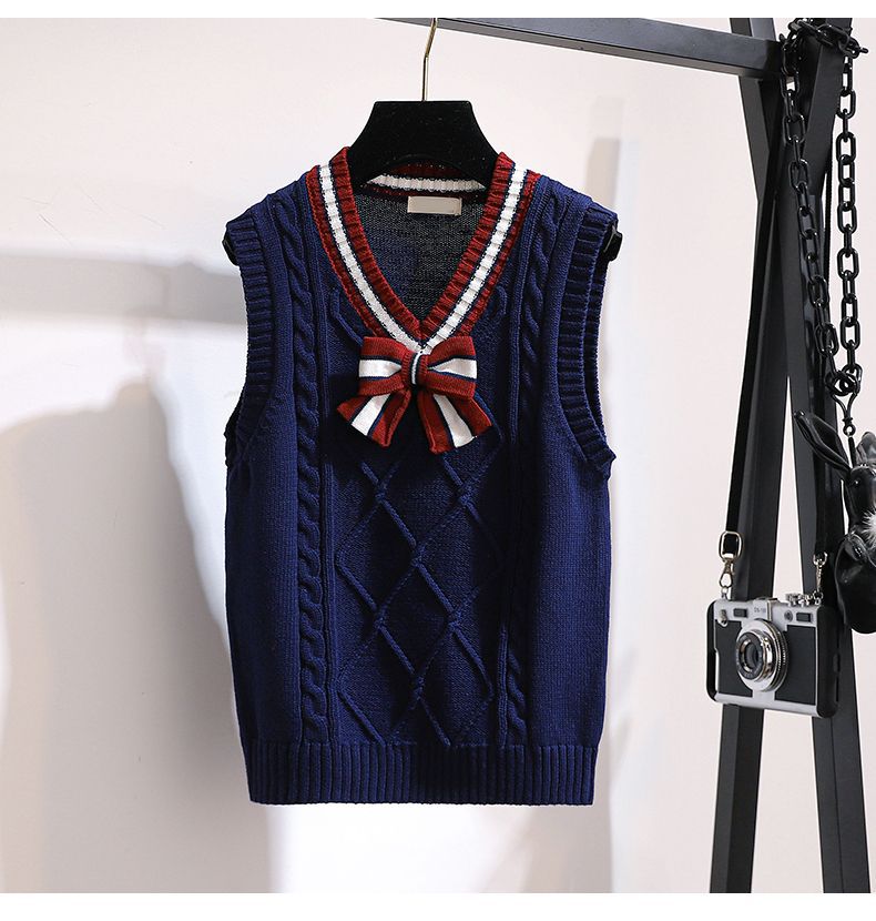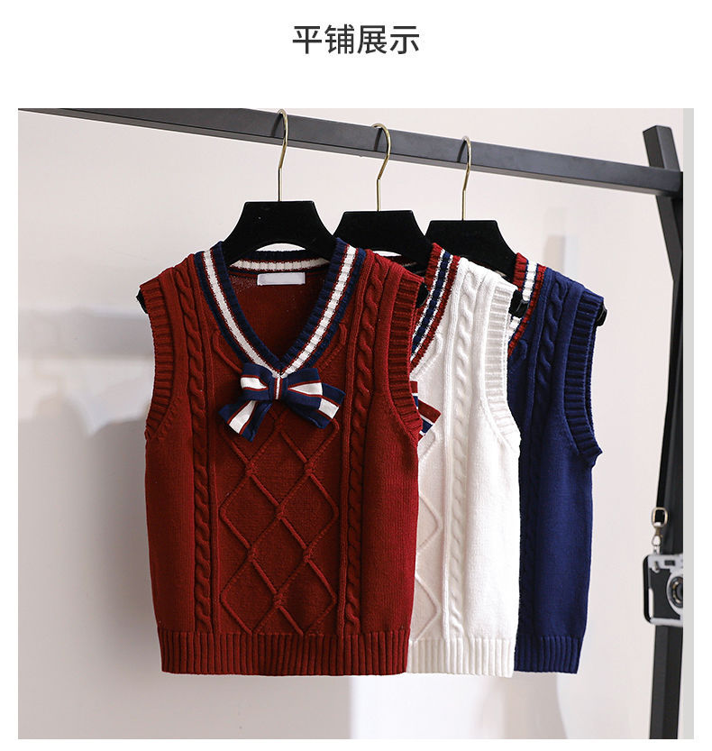 Cuhk 소녀 봄과 가을 새로운 패션 V 넥 풀오버 조끼 소녀 서양식 학술 스타일 니트 조끼스토어 가기