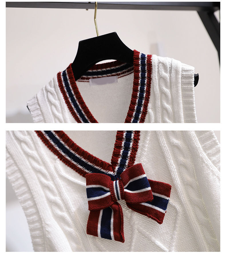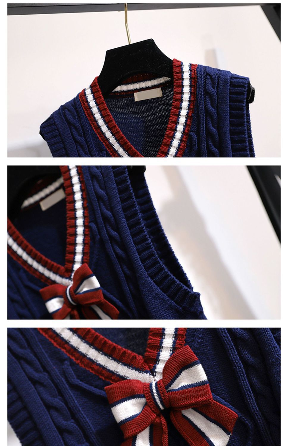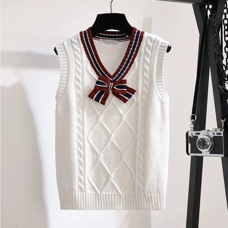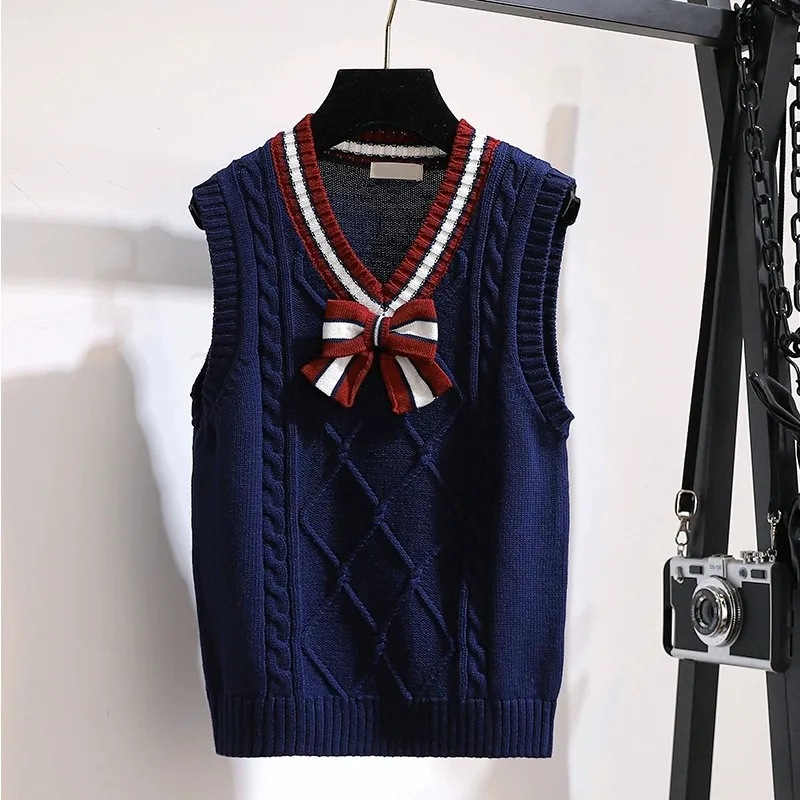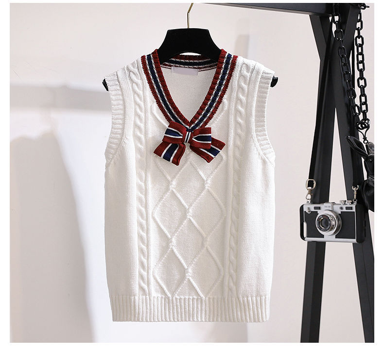 Cuhk 소녀 봄과 가을 새로운 패션 V 넥 풀오버 조끼 소녀 서양식 학술 스타일 니트 조끼스토어 가기