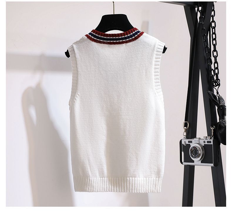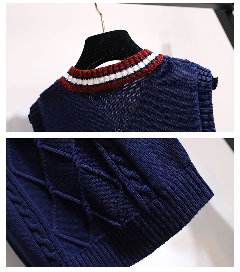 Cuhk 소녀 봄과 가을 새로운 패션 V 넥 풀오버 조끼 소녀 서양식 학술 스타일 니트 조끼
