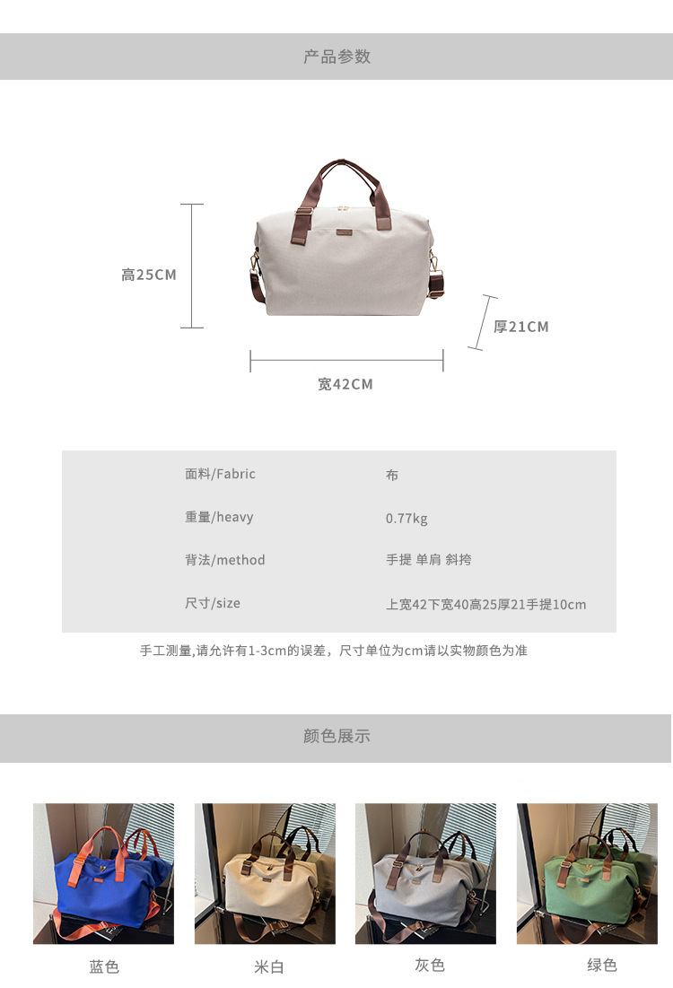 캔버스 가방 단거리 여행 가방 대용량 여성용 경량 수하물 가방 휴대용 가방 적시 보관 가방 스포츠 피트니스 가방