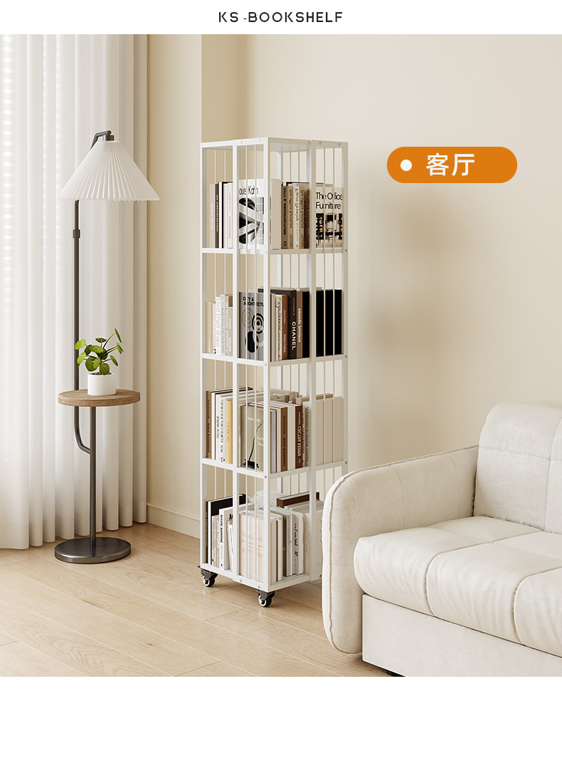 L * 회전 책꽂이 360 도 책장 보관 거실 책상 바닥 다층 이동식 철제 선반 바퀴스토어 가기