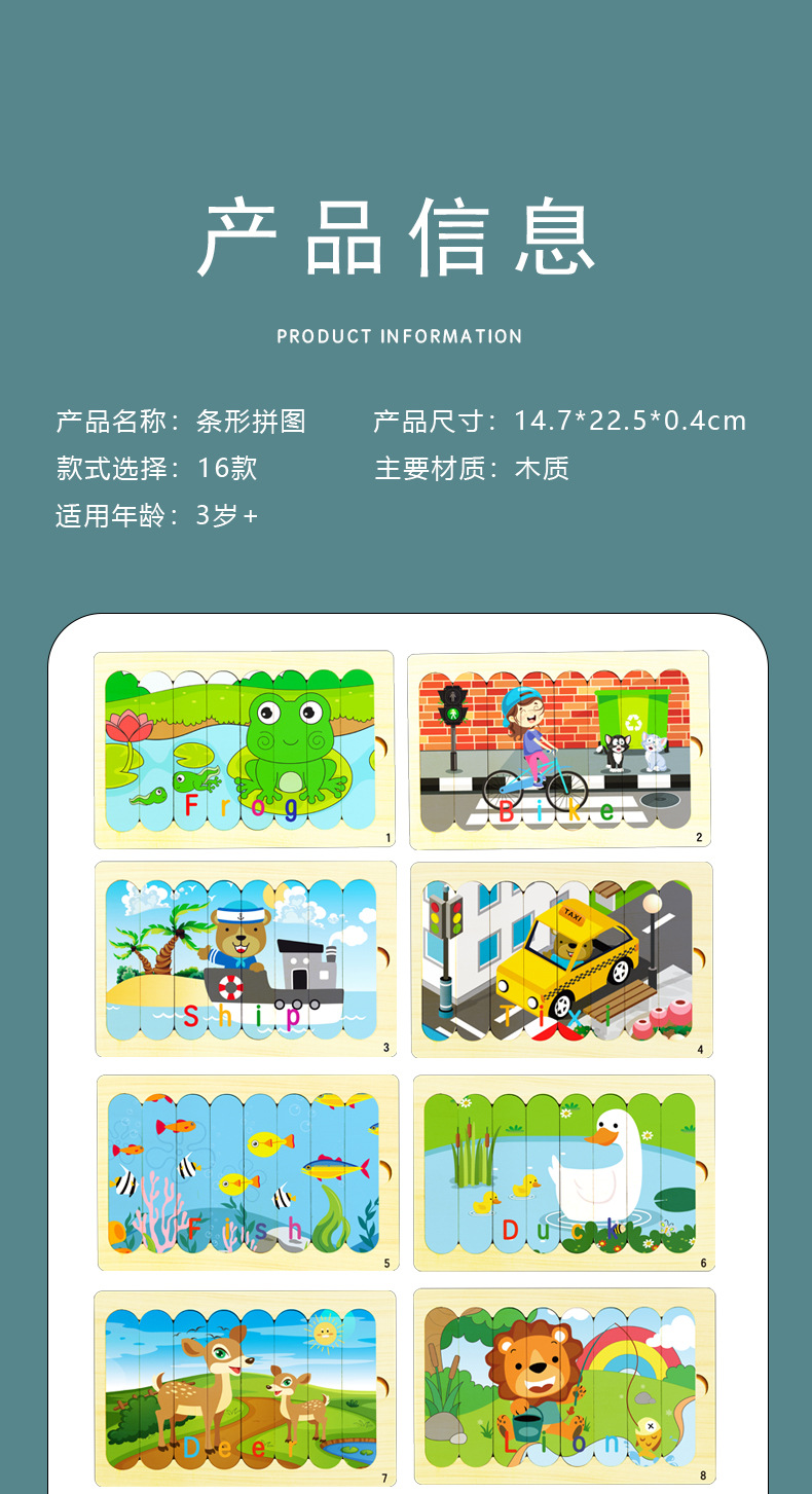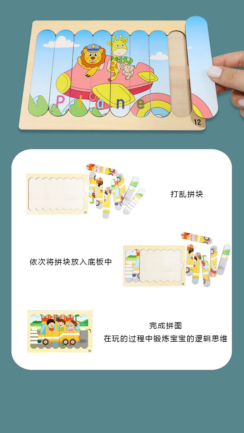 국경 간 나무 바 플러스 사이즈 퍼즐 어린이 조기 교육 퍼즐 아이스크림 스틱 만화 동물 퍼즐 장난감 도매스토어 가기