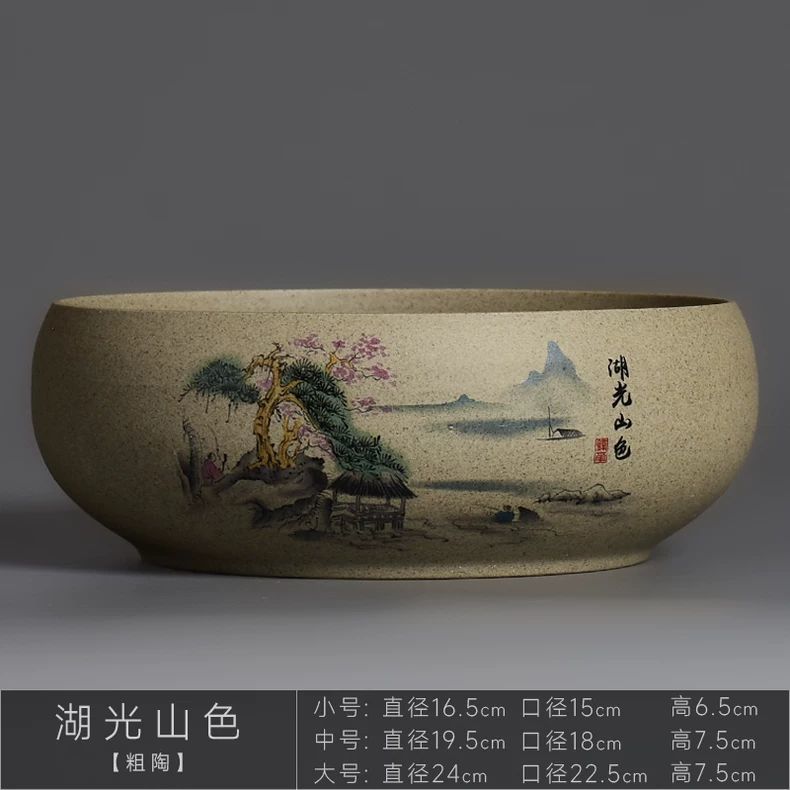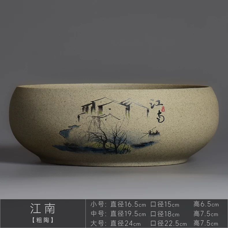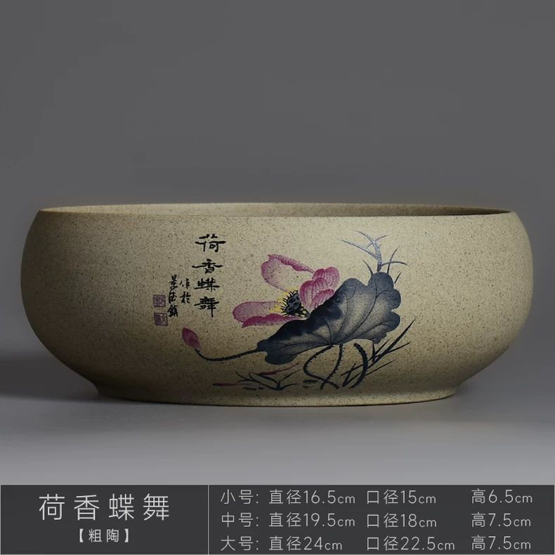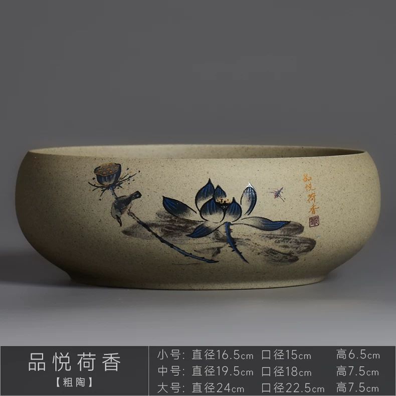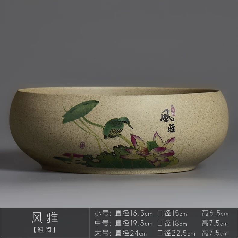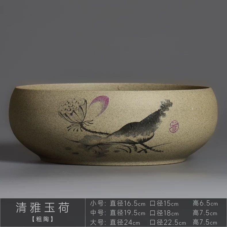 대구경 수련 화분, 창의적인 세라믹 원형 무공 수경재배 화분, 동전풀, 녹색 덩굴, 연꽃, 그릇형 연꽃 화분스토어 가기