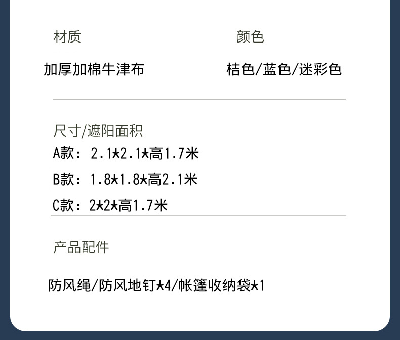 • 스퀘어 탑 코튼 텐트 위장 1.8*1.8*2.1